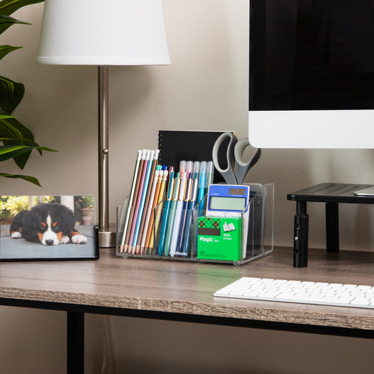 Mind Reader Desktop Organizer, 7-compartment, Office Essentials, Modern, Office, Acrylic, 8.5"L x 6.5"W x 4.75"H, Clear