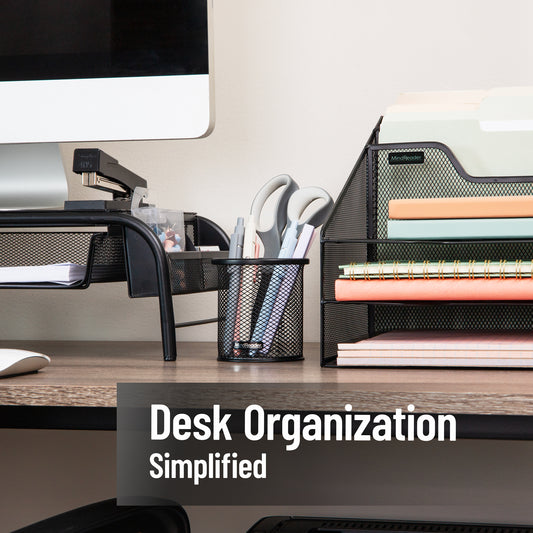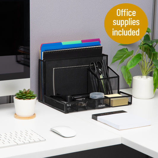 Mind Reader New Employee Starter Kit, Desktop Organizer and Office Supplies, Vertical File, Storage, Office, Metal Mesh, 12.5"L x 9"W x 7.25"H, Black