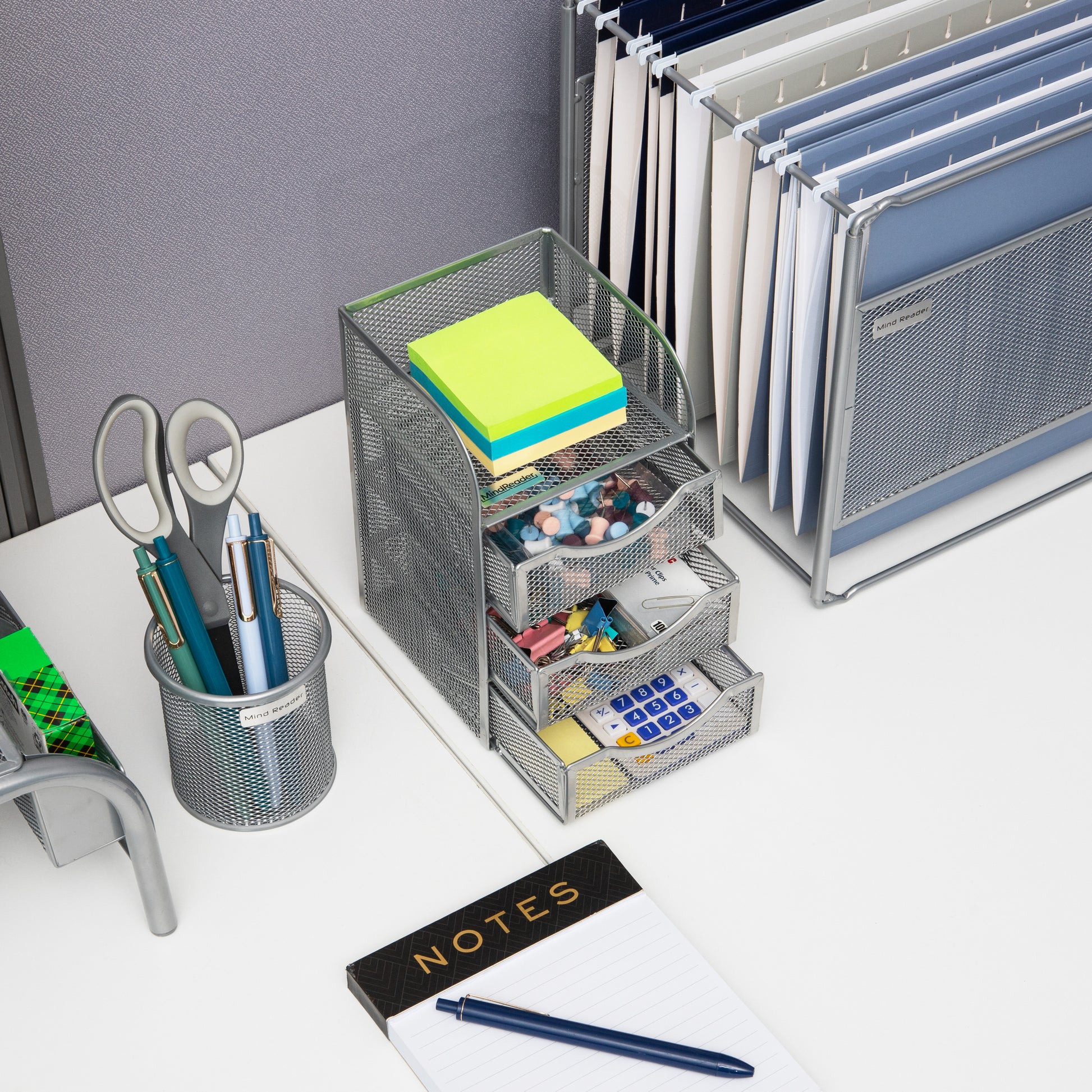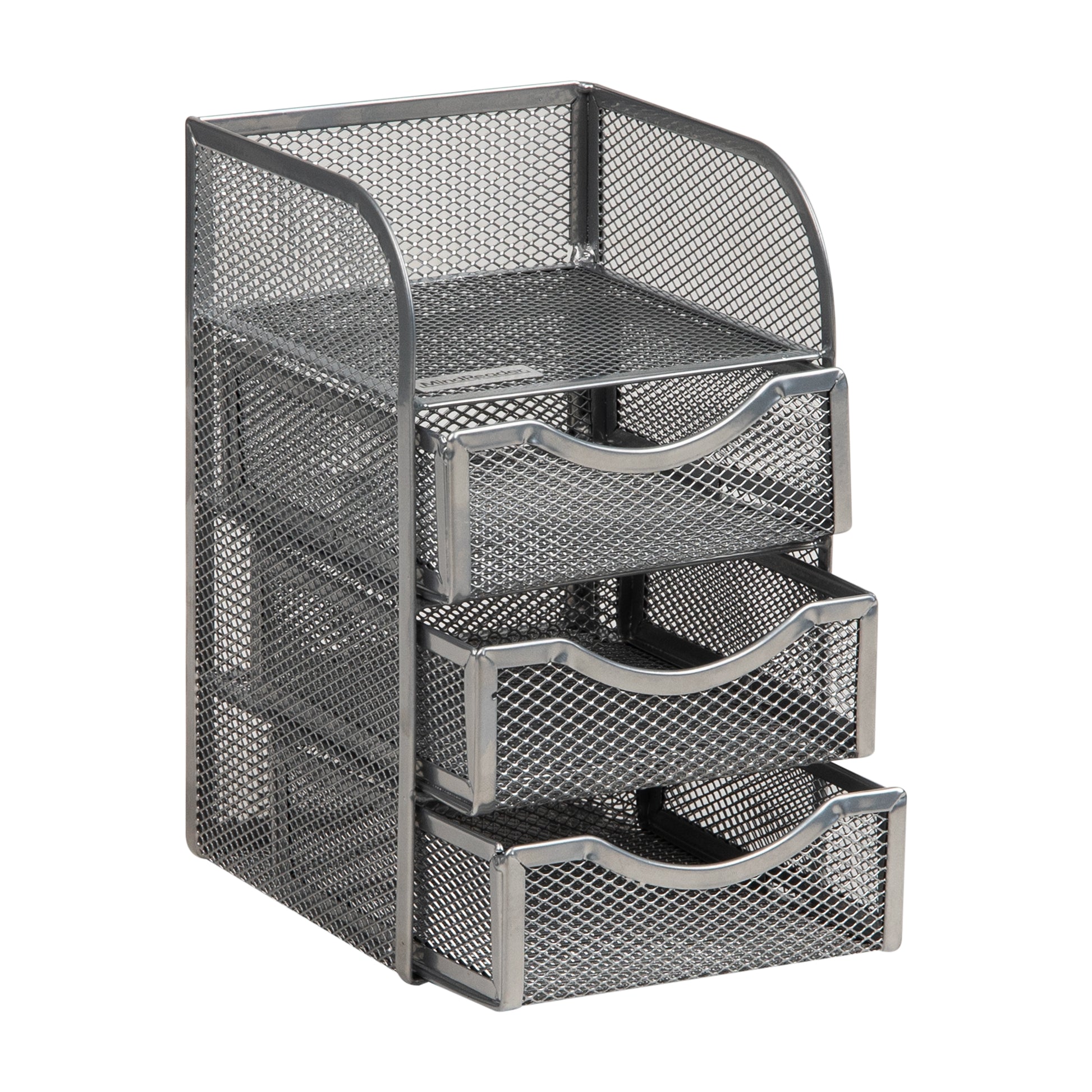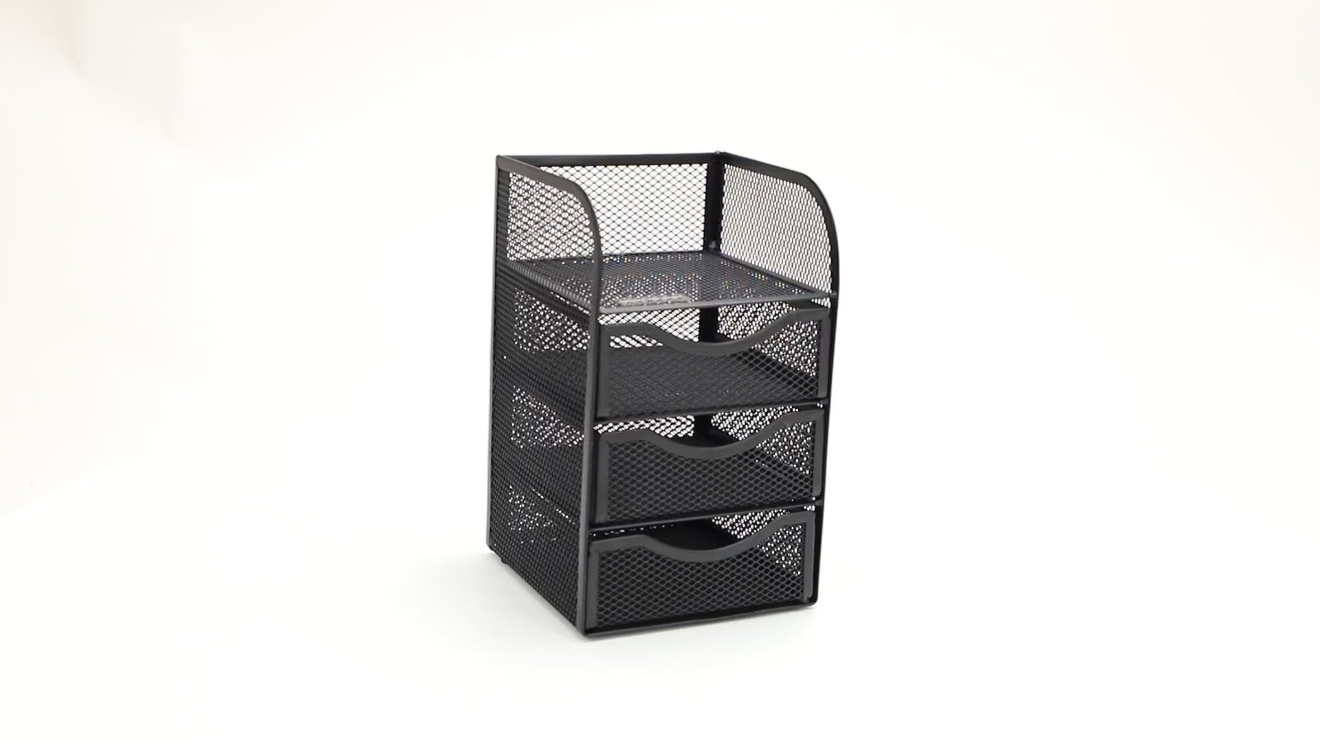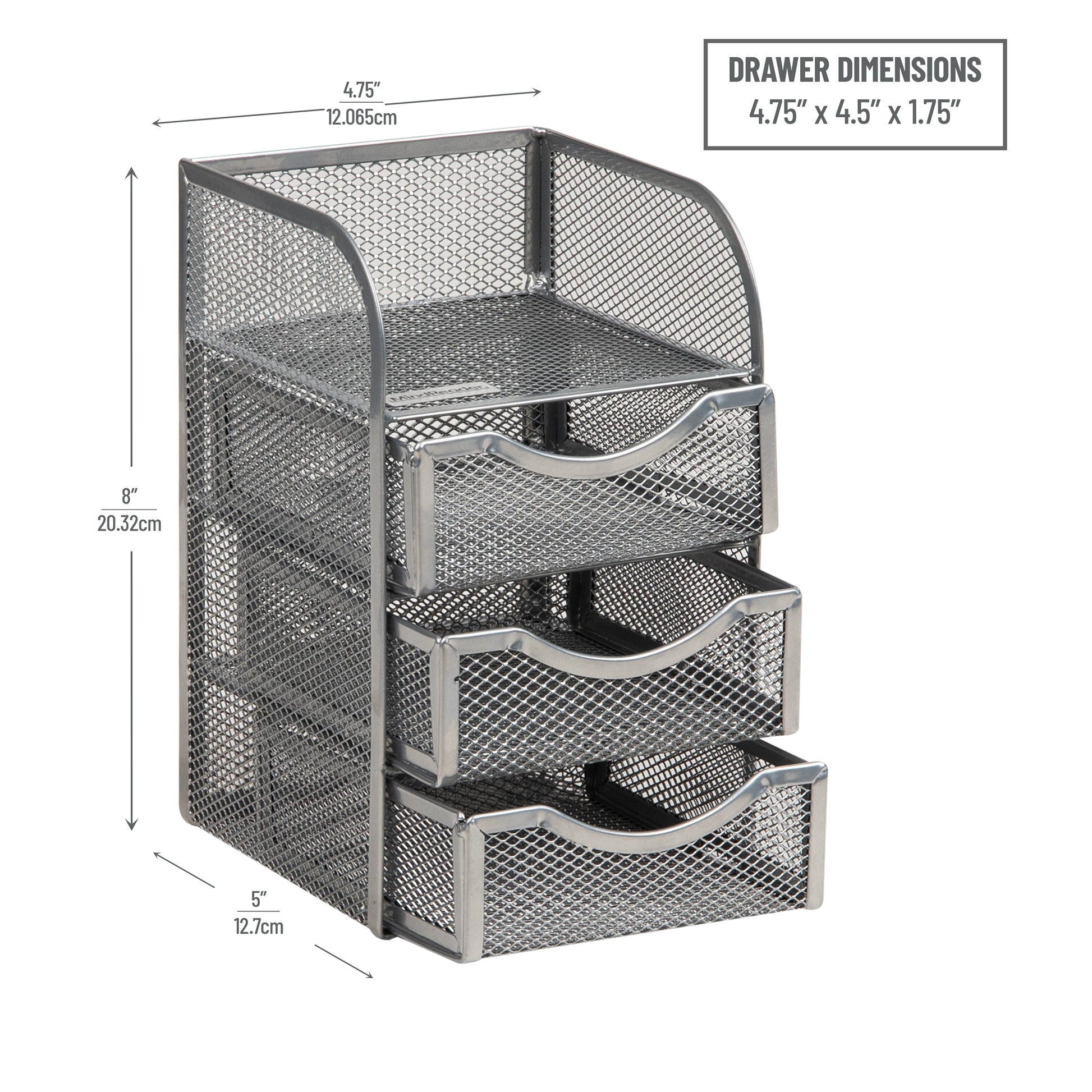 Transform your workspace, makeup table, or kitchen counter with this versatile and stylish black wire mesh organizer. Designed to eliminate clutter and save space, this multi-section organizer features pull-out drawers to store and sort various items, from office and school supplies to jewelry, makeup, crafting gear, or kitchen condiments.