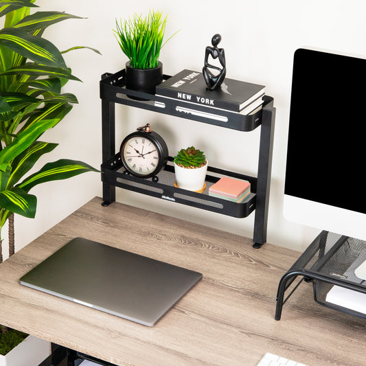 Mind Reader 2-Tier Desk Organizer with Clamp, Accessory Shelf for Office or Gaming, Office, Metal, Black