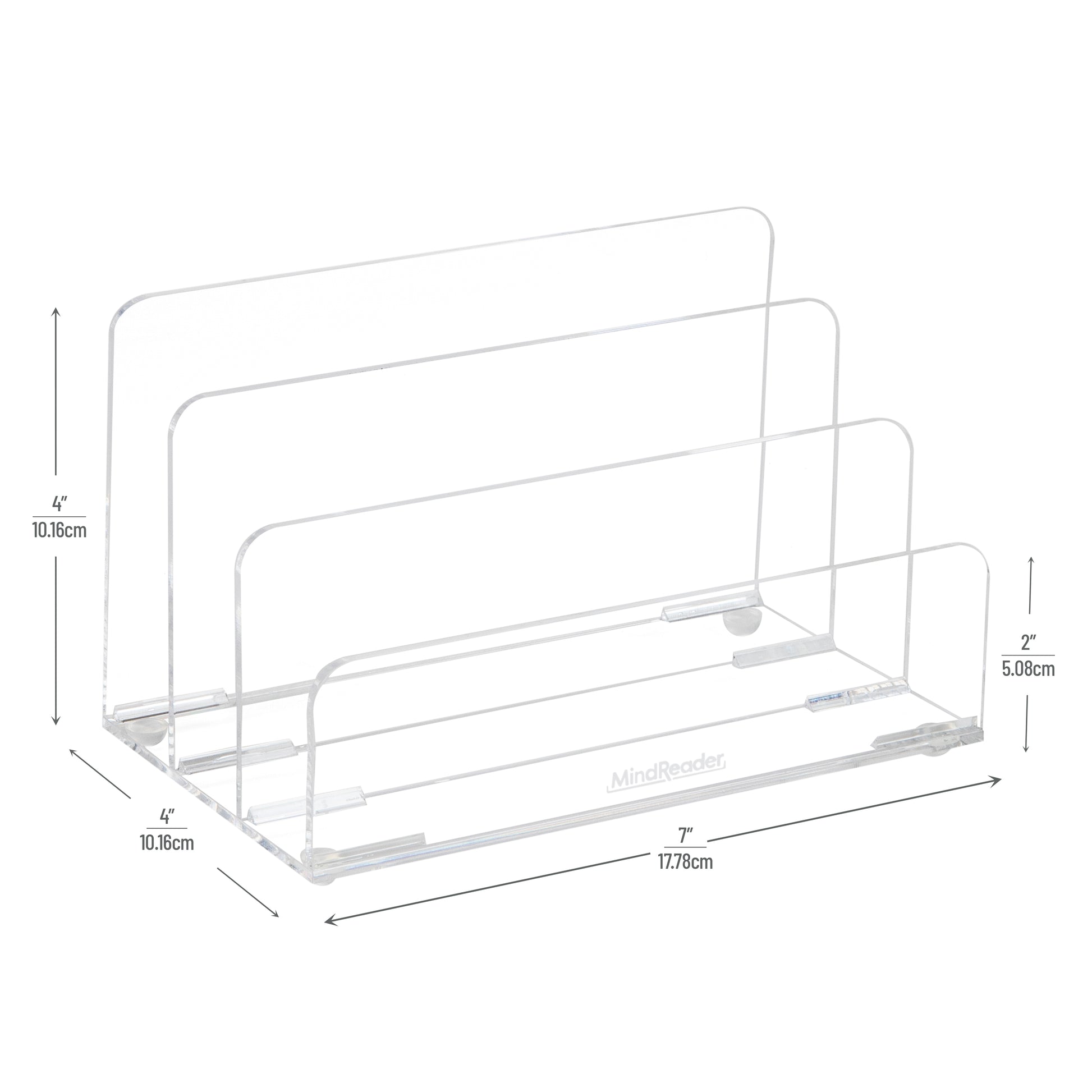 Mind Reader 3-Tier Mail Sorter, Desktop Organizer, Mail Organizer, Modern, Office, Acrylic, 7"L x 4"W x 4"H, Clear