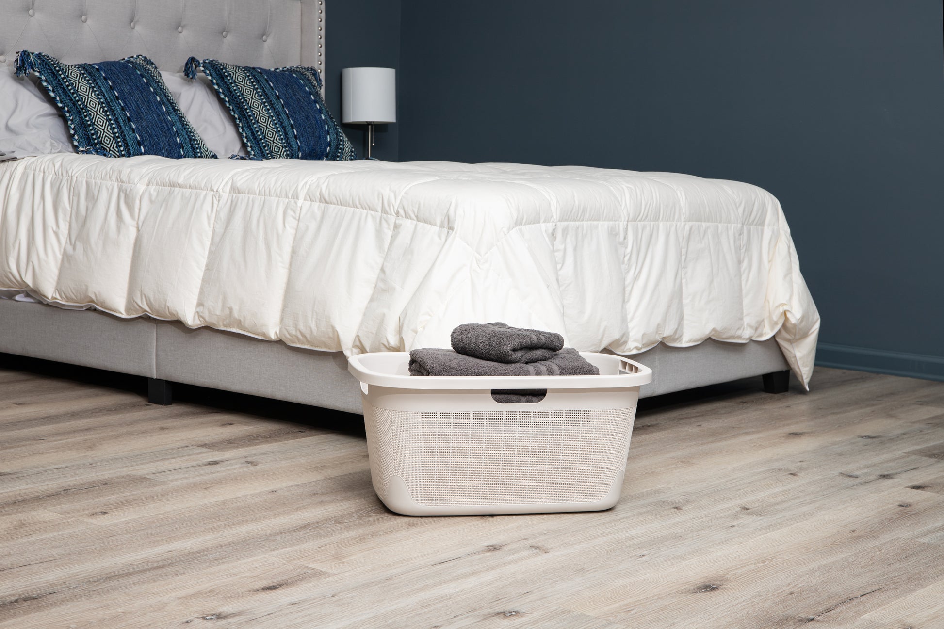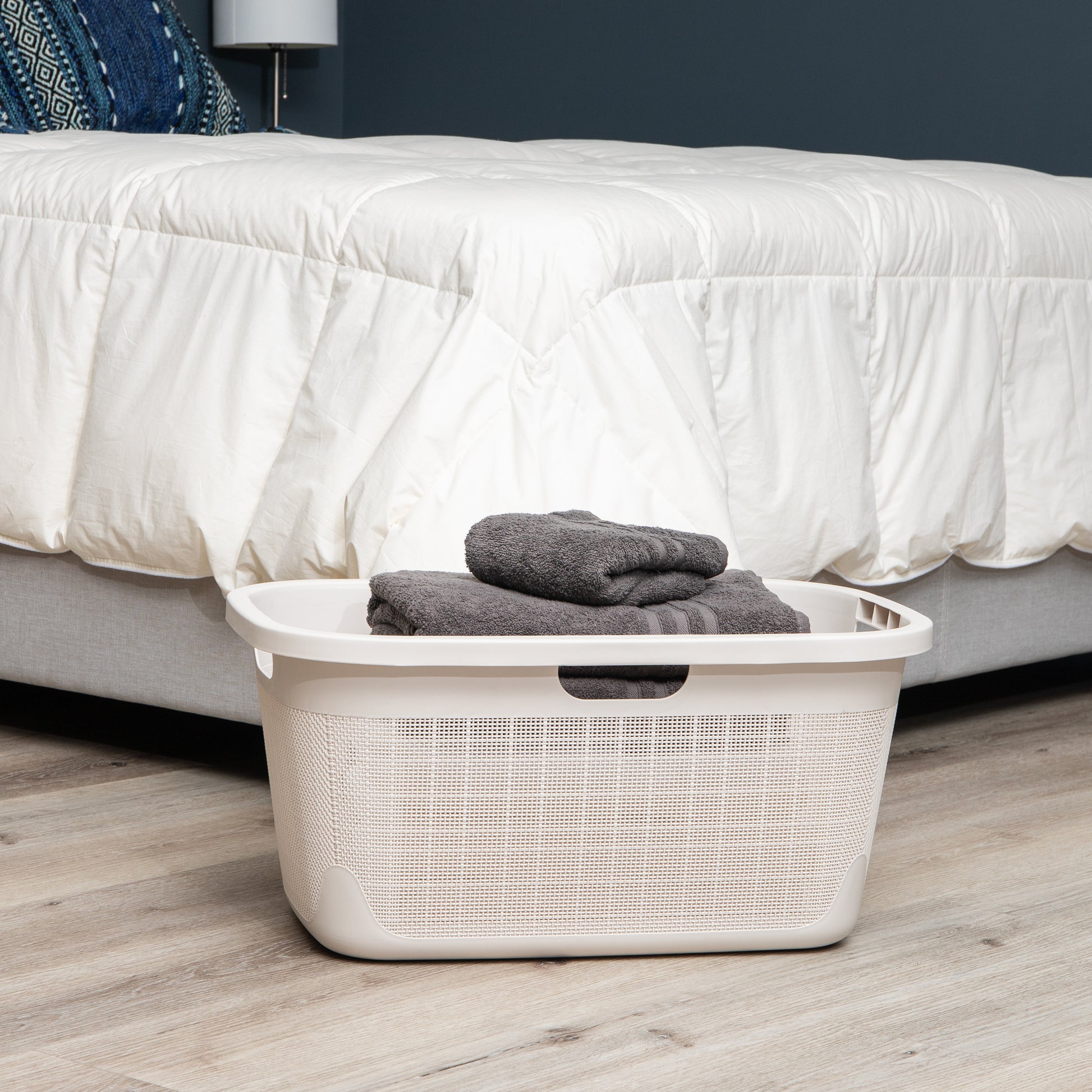 Mind Reader 40L Laundry Basket, Clothes Hamper, Linen Design, Plastic, 23.25”L x 15.25”W x 11”H