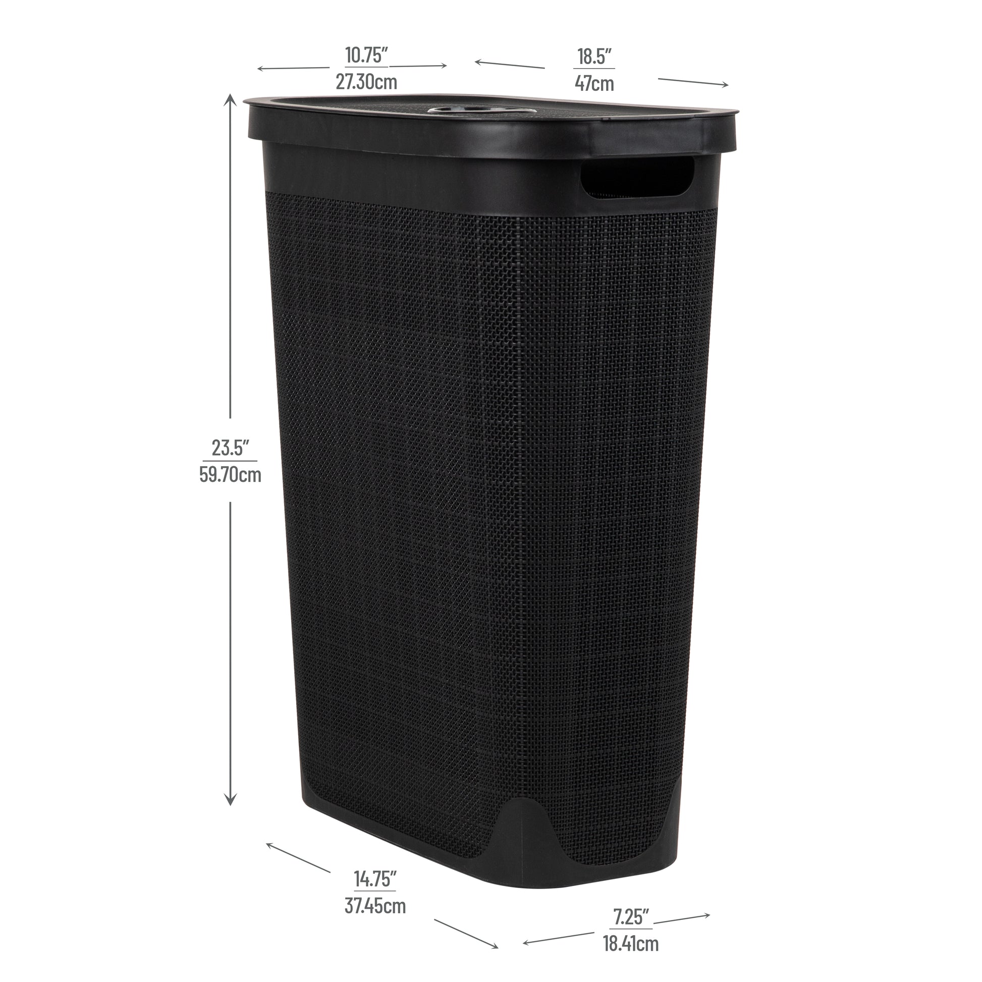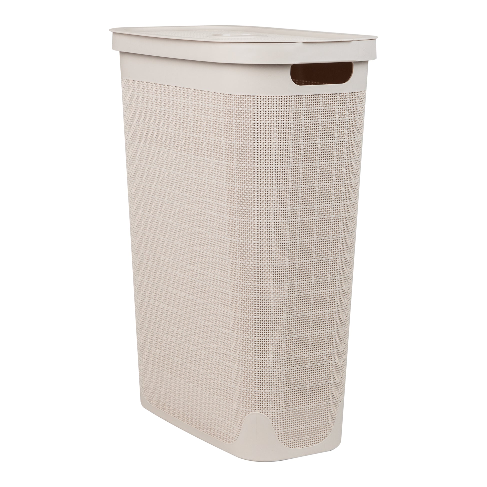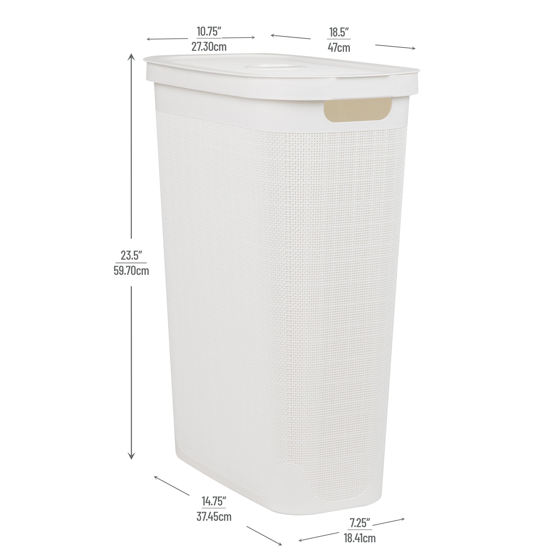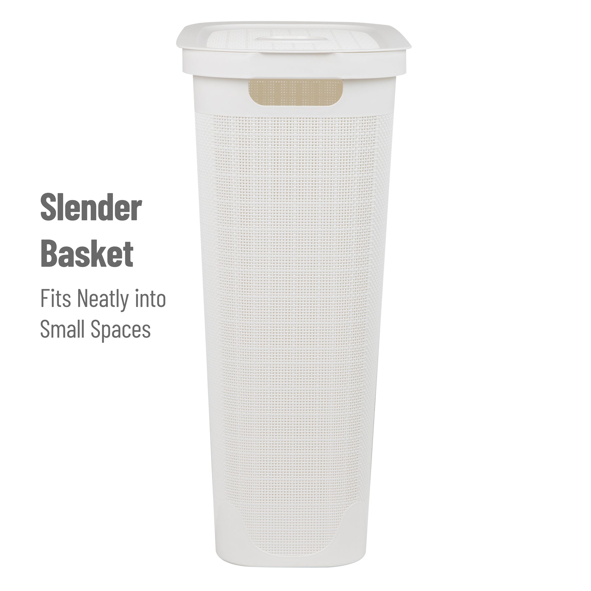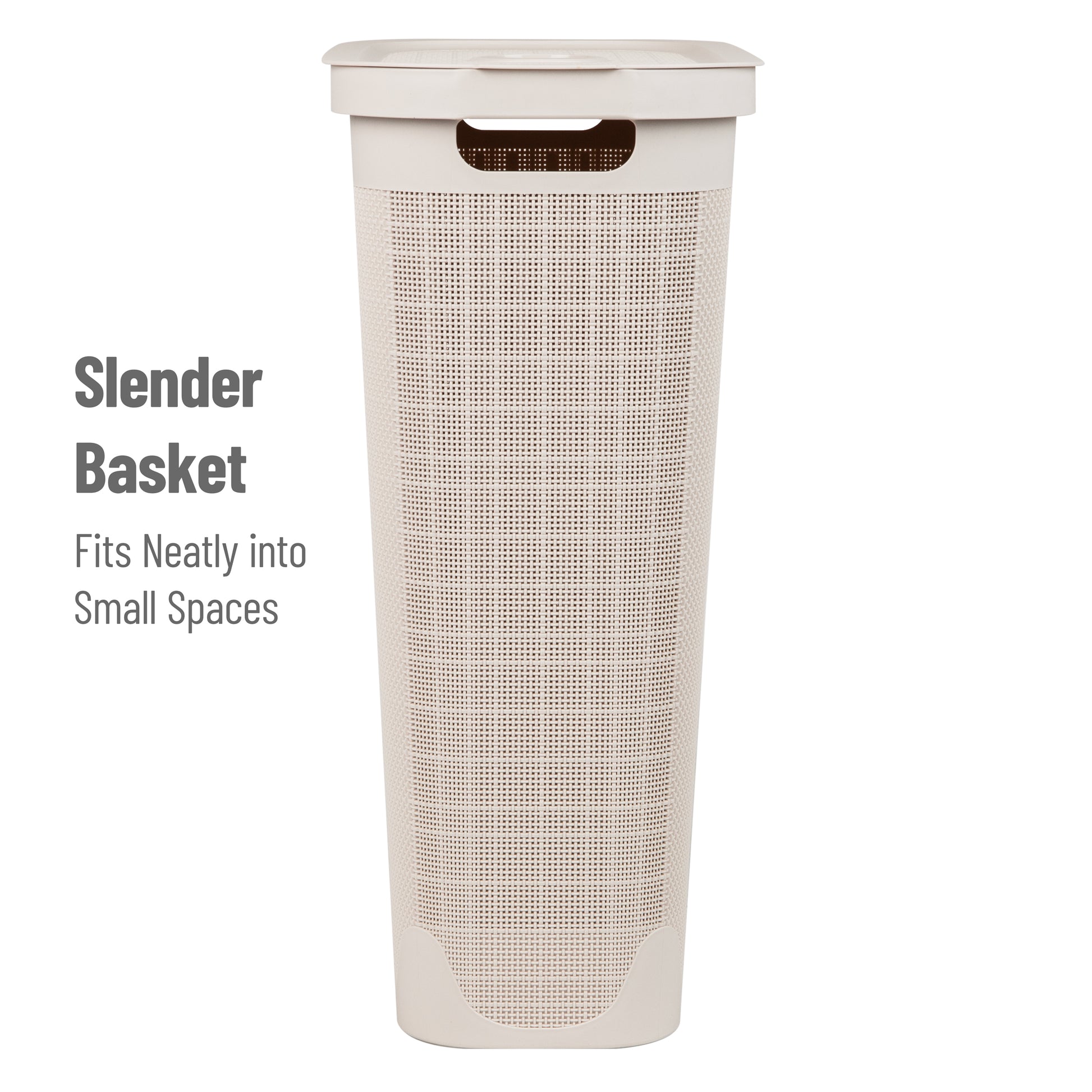 Mind Reader 40L Slim Laundry Hamper, Clothes Basket, Lid, Linen Design, Plastic, 18.5”L x 10.75”W x 23.5”H