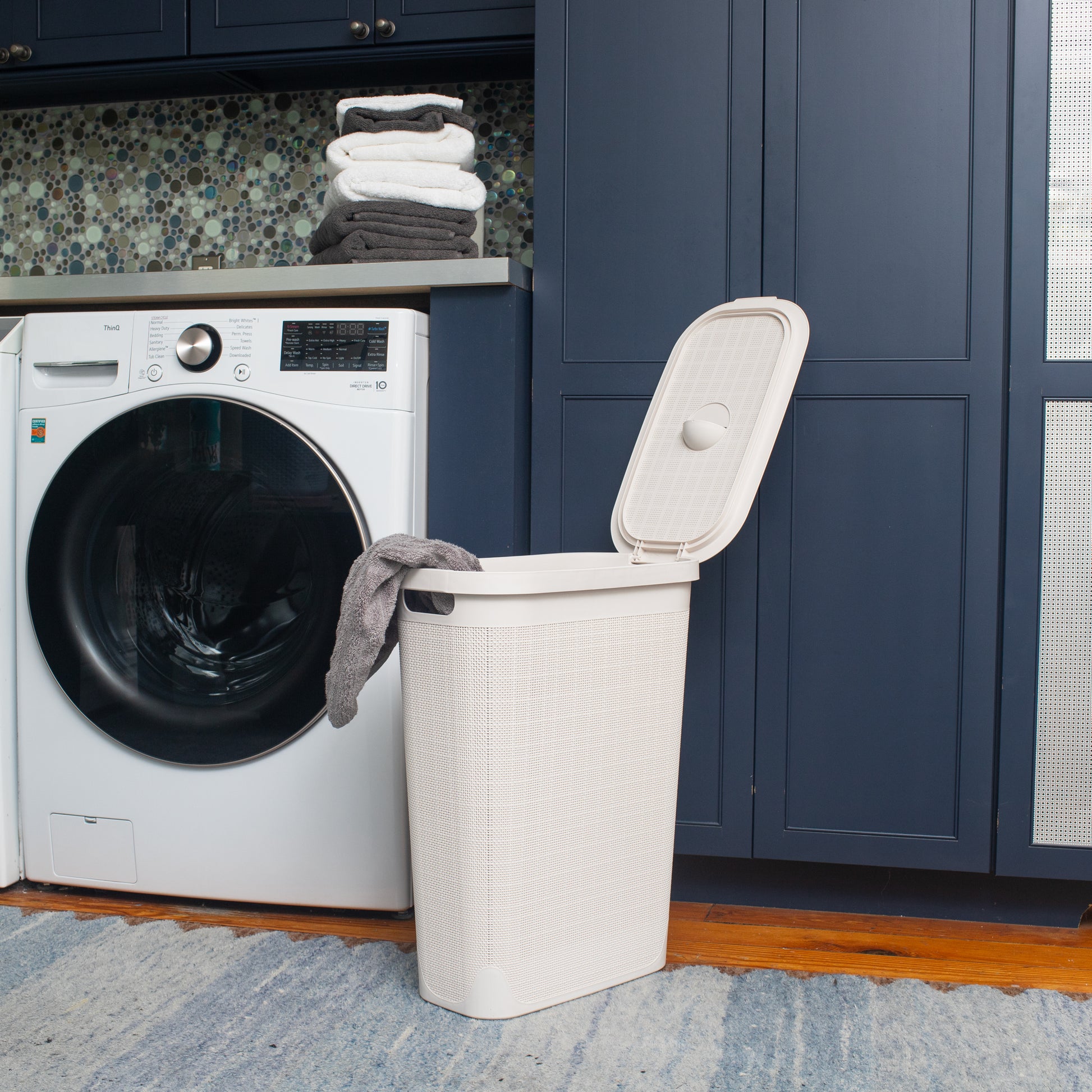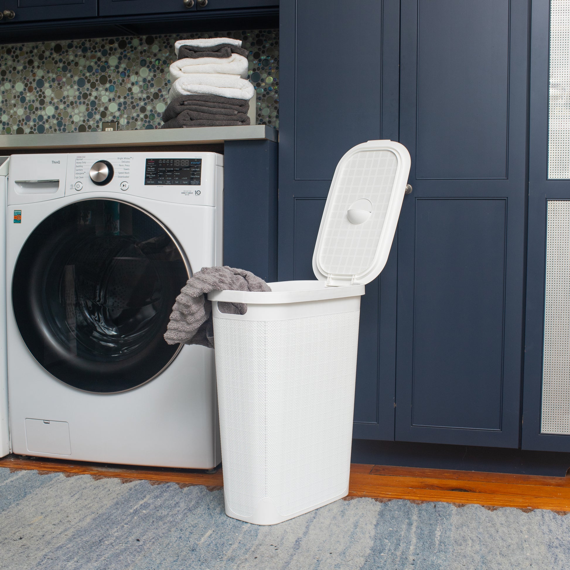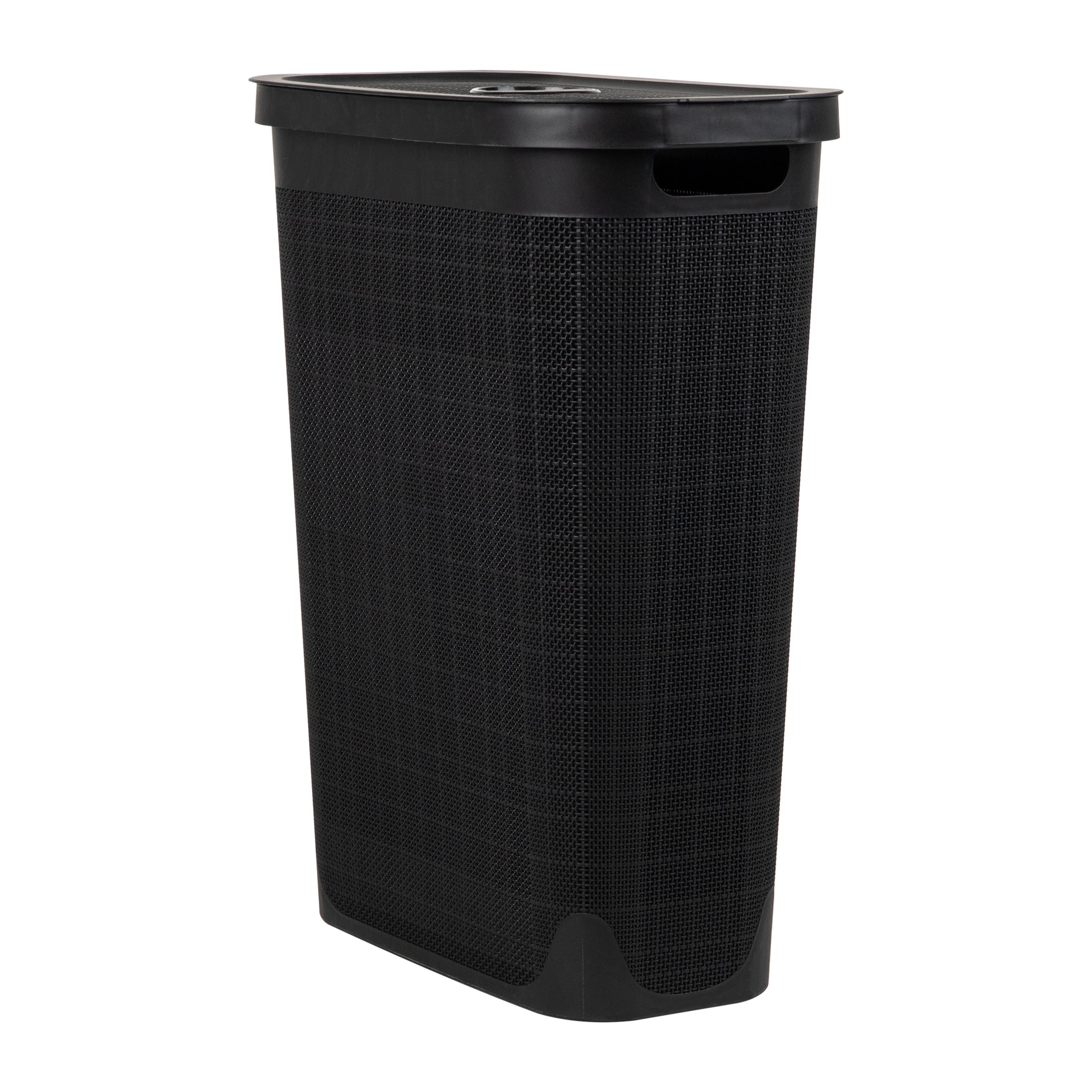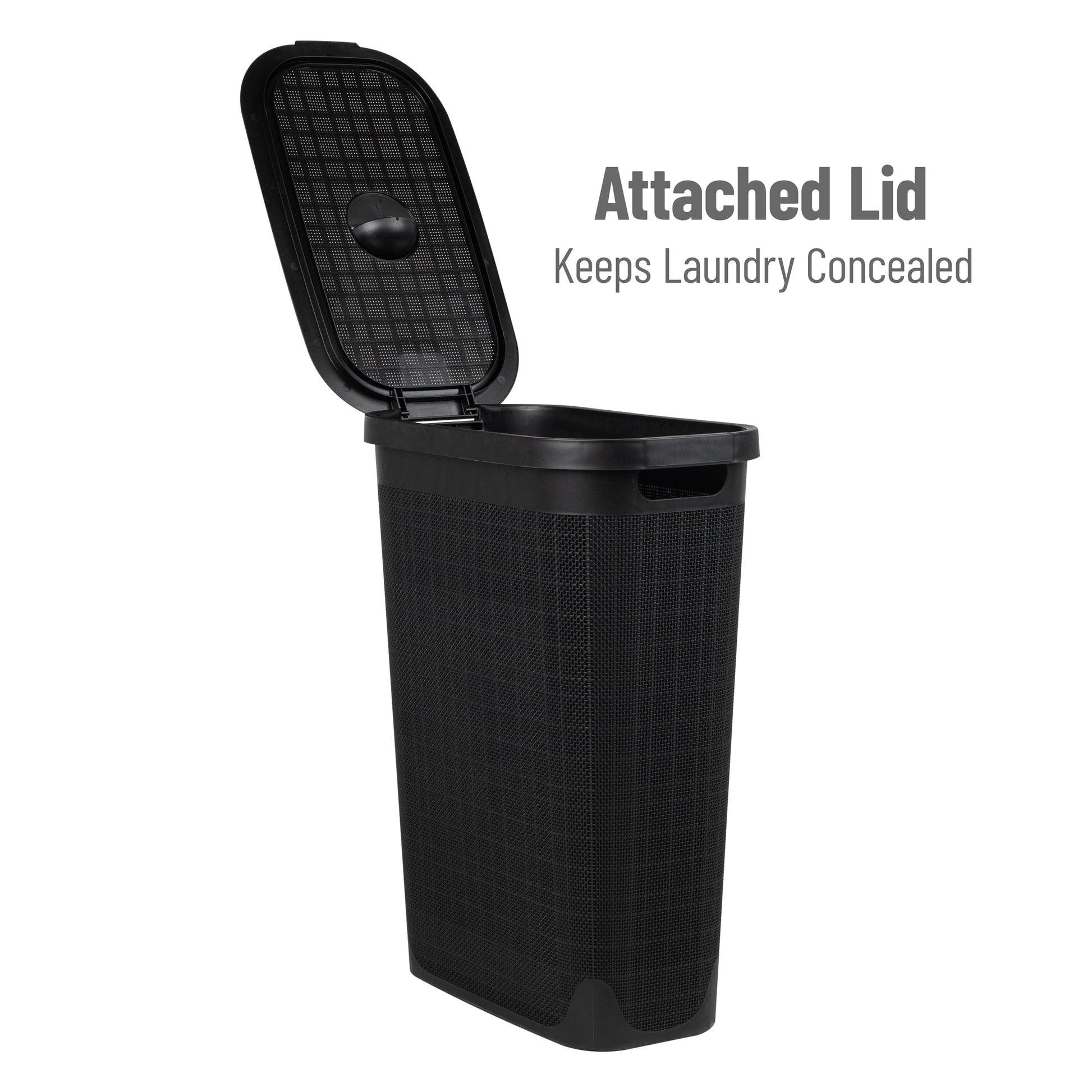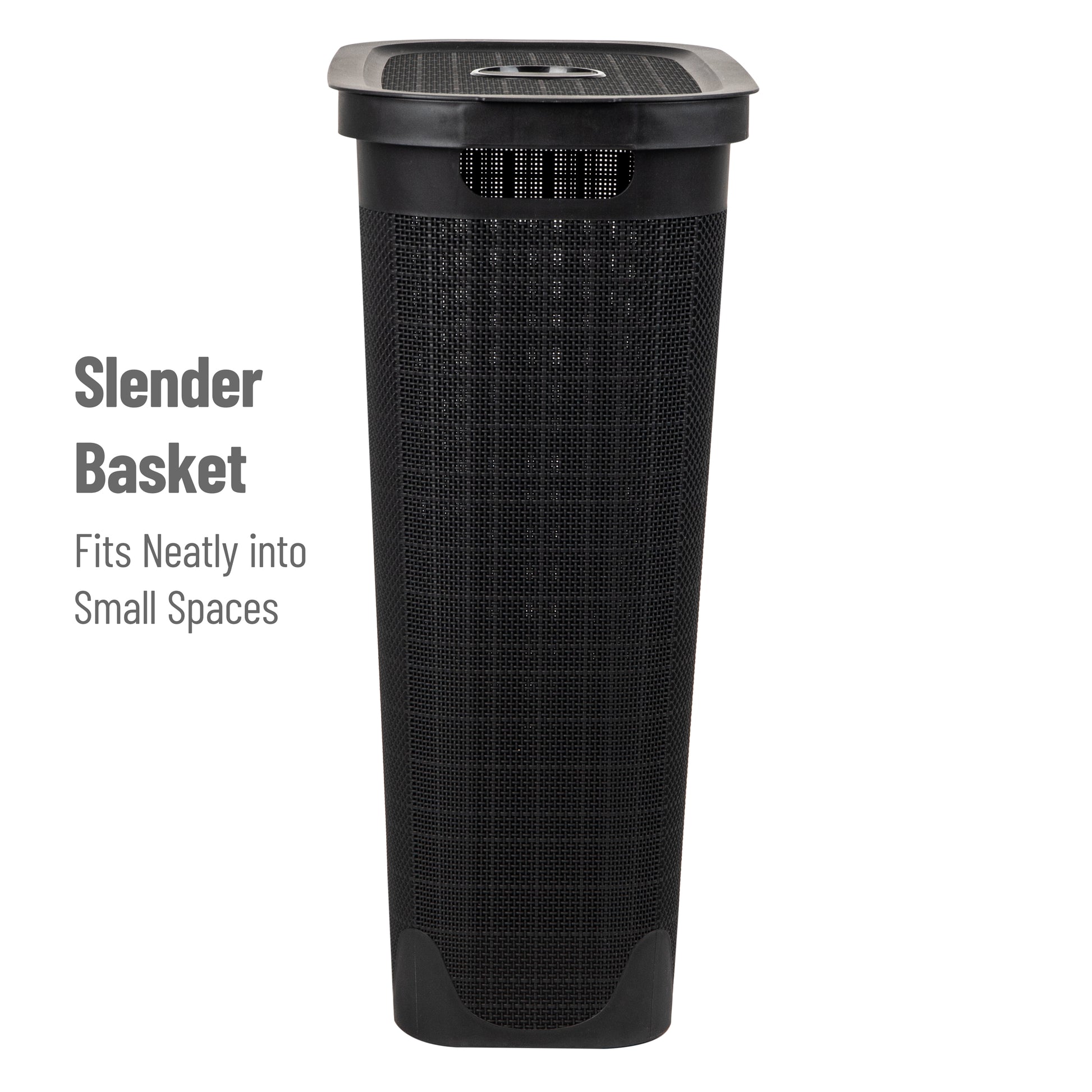 Mind Reader 40L Slim Laundry Hamper, Clothes Basket, Lid, Linen Design, Plastic, 18.5”L x 10.75”W x 23.5”H