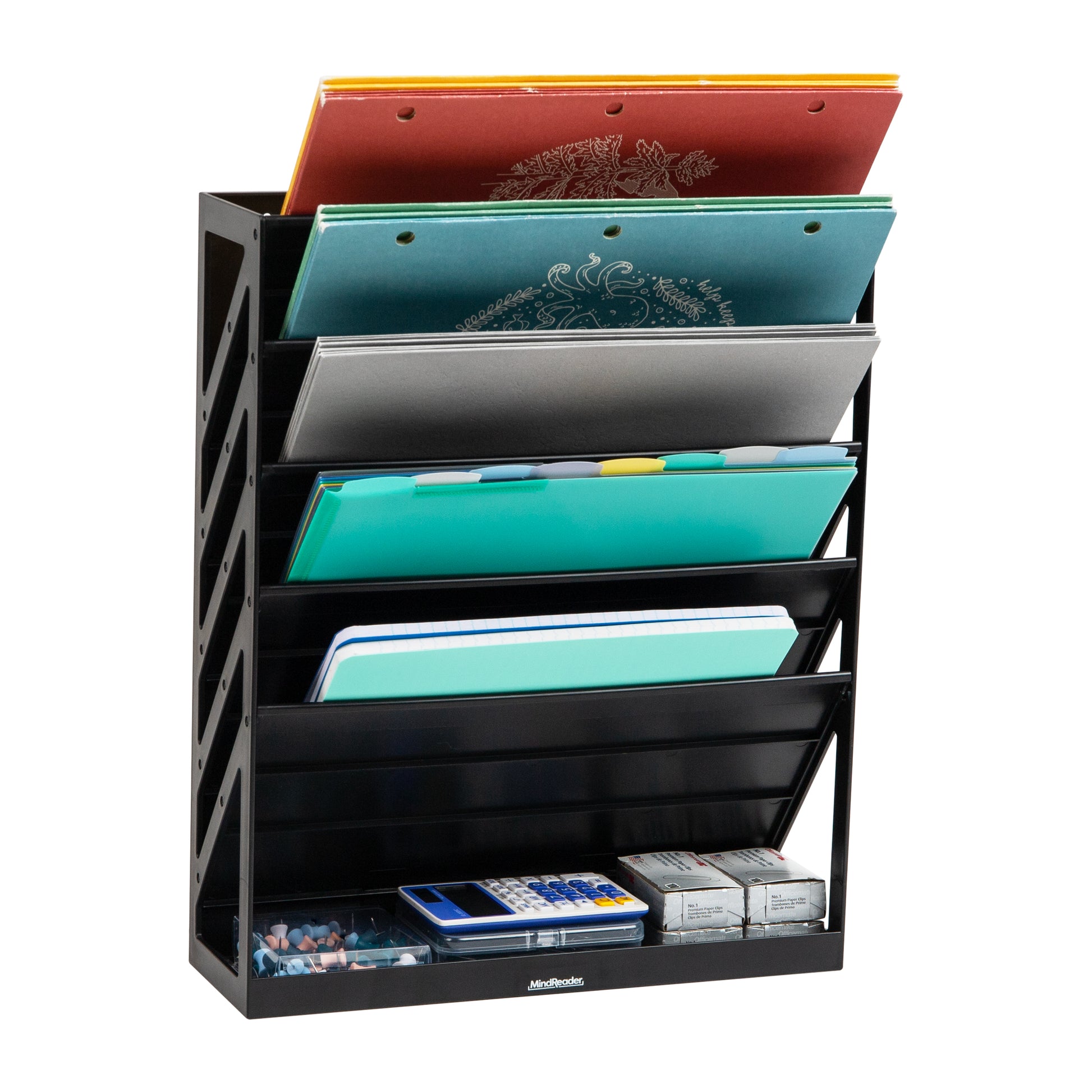 Mind Reader 5-Tier Vertical File Storage, Desktop Organizer, Wall Mount, Office, Plastic, 13"L x 4.25"W x 16"H