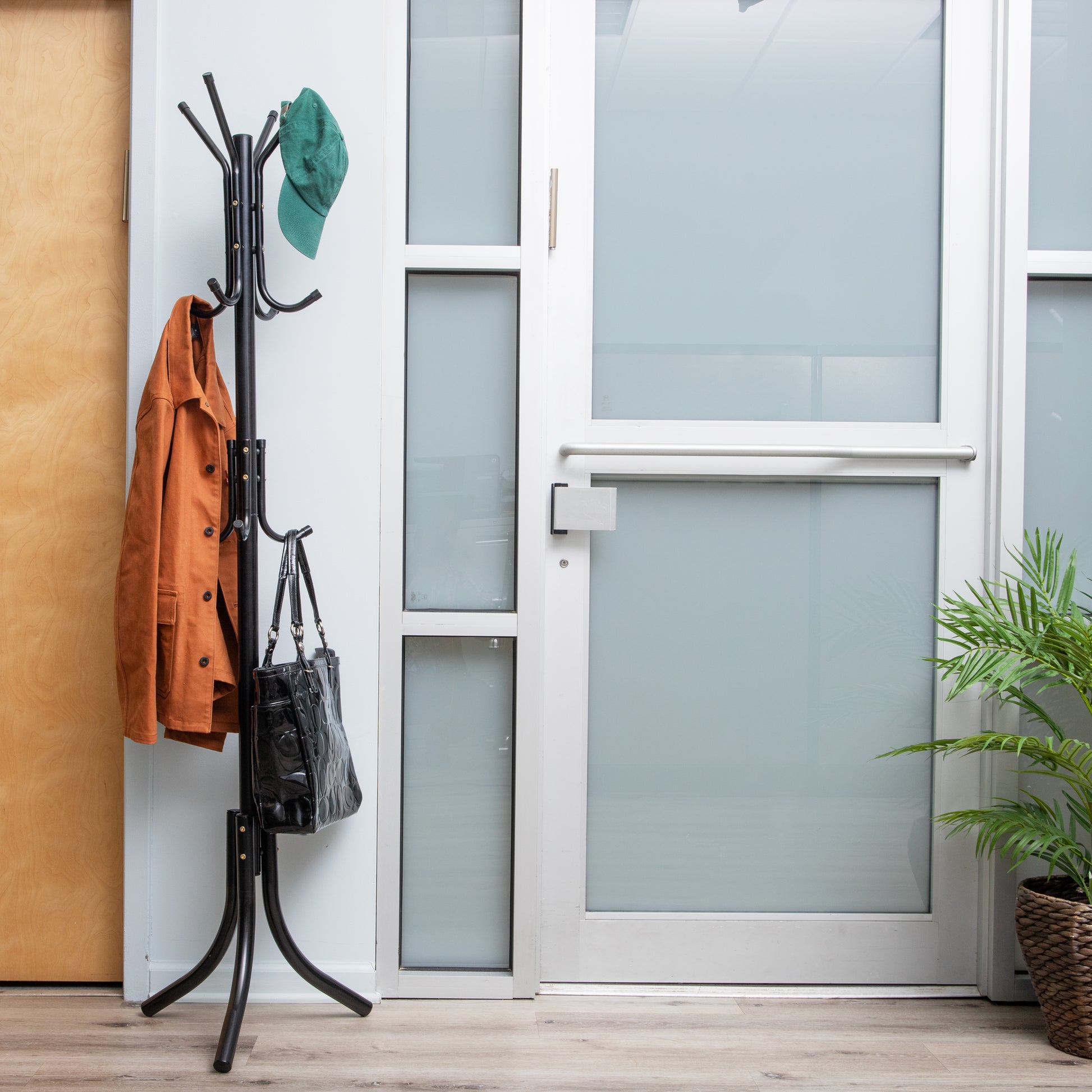 Elevate your office or home office organization with the Mind Reader Freestanding Metal Coat Rack. Designed for efficient vertical storage, this sleek and durable rack features 11 hooks across three tiers to hold coats, hats, scarves, purses, and umbrellas. Its compact footprint makes it ideal for tight corners, behind doors, or shared workspaces where floor space is at a premium.