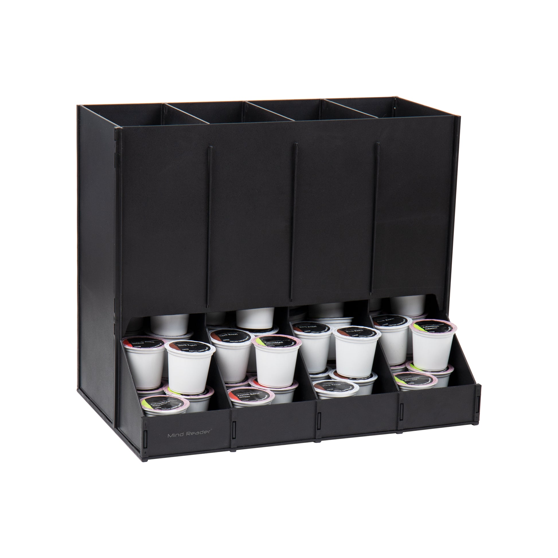 Mind Reader 4-Compartment Single Serve Coffee Pod Dispenser, 120 Pod Capacity, Breakroom, 14.5"L x 9"W x 12.25"H, Black