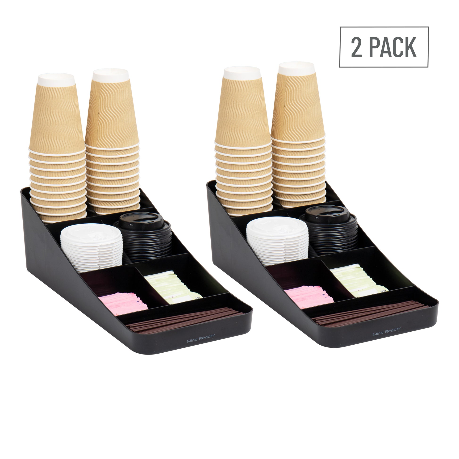 Mind Reader Cup and Condiment Station, Countertop Organizer, Coffee Bar, Kitchen, 7.25"L x 15.5"W x 5.25"H, Set of 2, Black