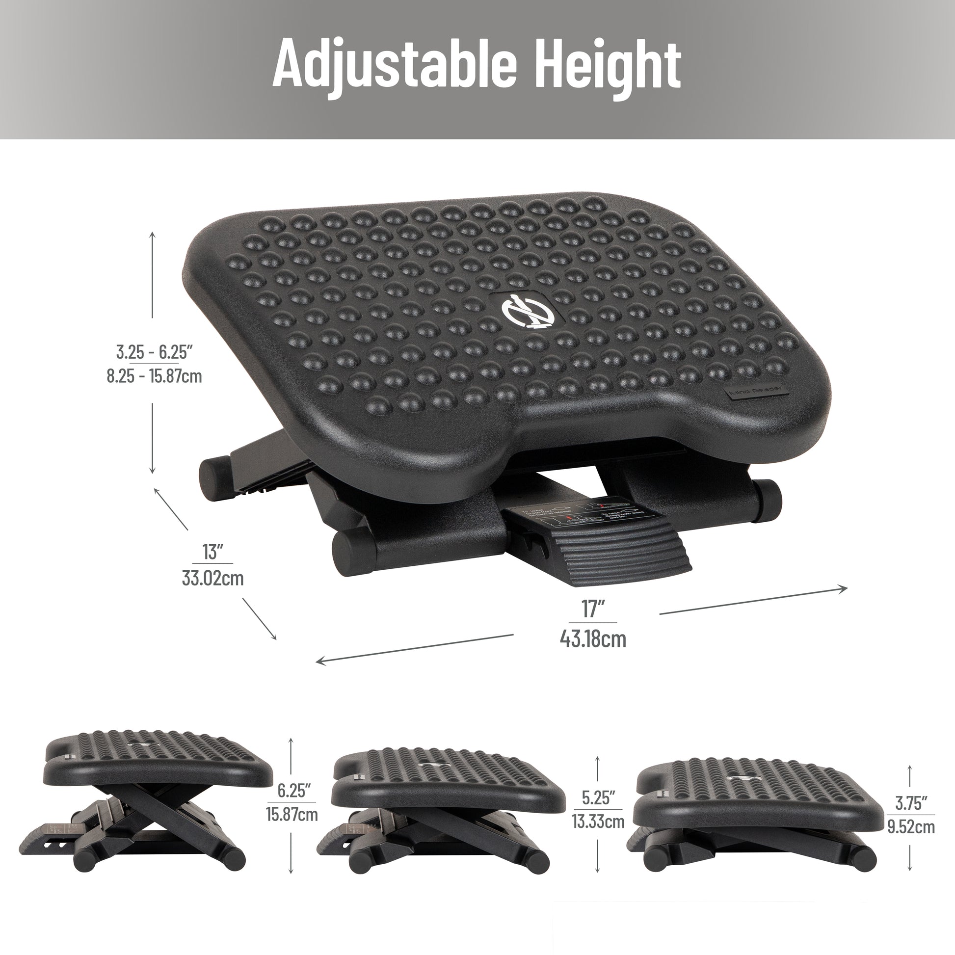 Mind Reader Foot Rest, Under Desk at Work, Ergonomic, Height Adjustable, Office, Plastic, 18"L x 13.5"W x 6.5"H, Black