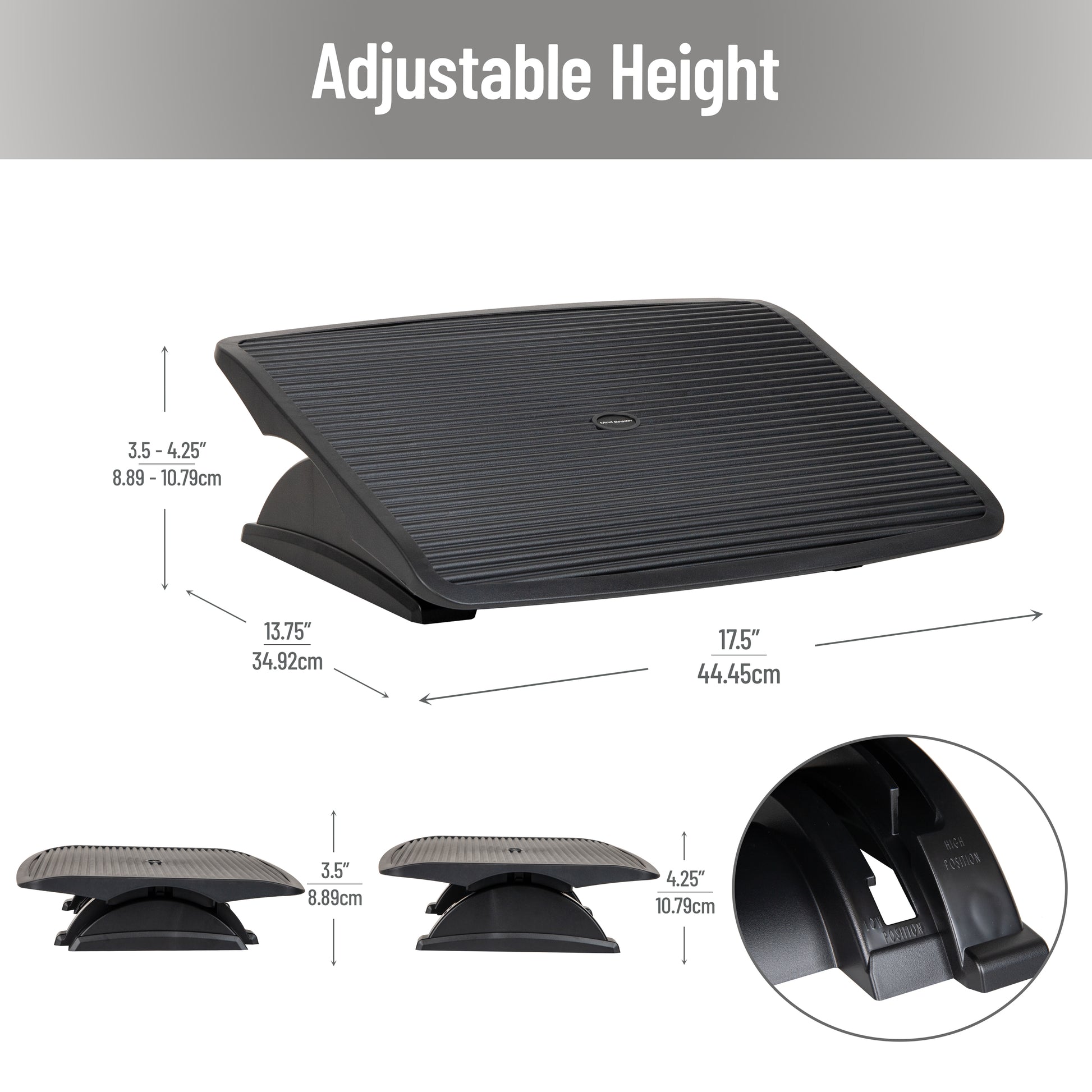 - Optimal dimensions: With measurements of 17.5 inches in length, 13.5 inches in width, and 3.5 inches in height (44.45 x 34.29 x 8.89 centimeters), this footrest provides ample surface area and is lightweight at 4 lbs (1.81 kgs)