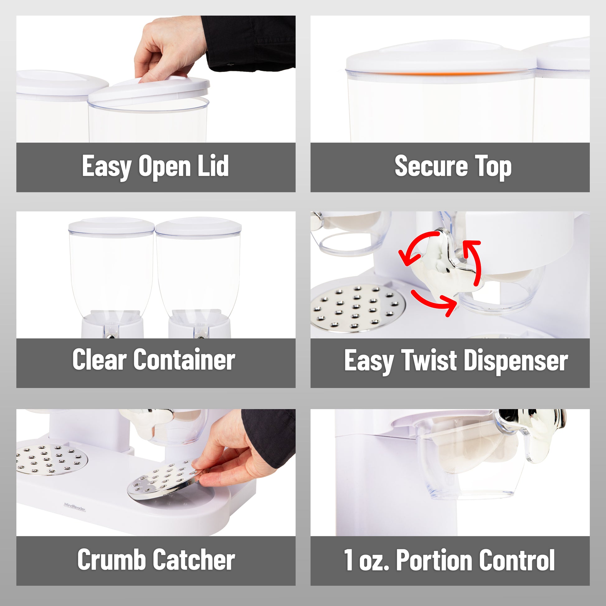 Mind Reader Double Cereal Dispenser – Airtight Dry Food Storage for Kitchen Counters