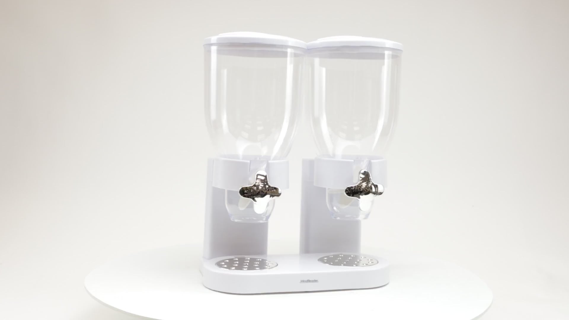 Mind Reader Double Cereal Dispenser for Countertop, 2 x 2L Airtight Containers, Rotating Dry Food Dispenser for Cereal, Rice, Candy, Coffee Beans, White