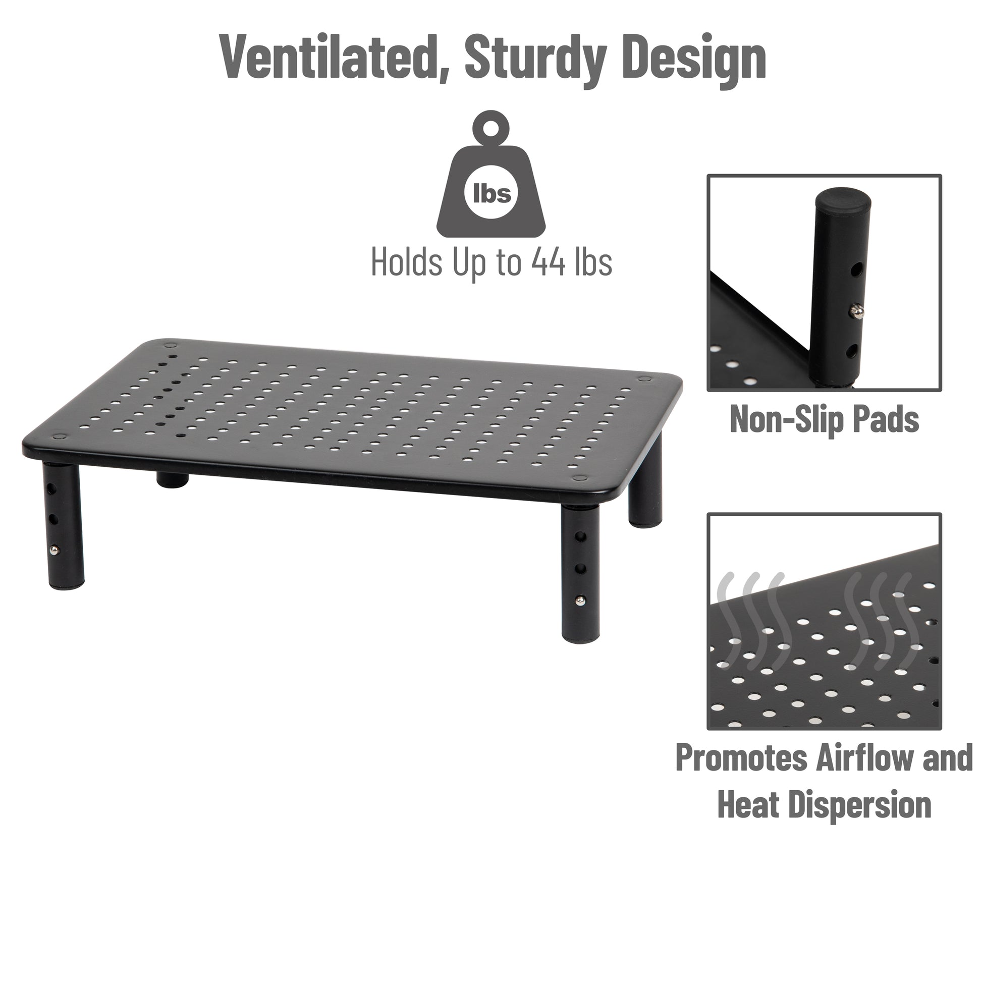 Mind Reader Monitor Stand, Height Adjustable, Ventilated Laptop Riser, Office, Metal, 14.5"L x 9.25"W x 4-5.5"H, Black