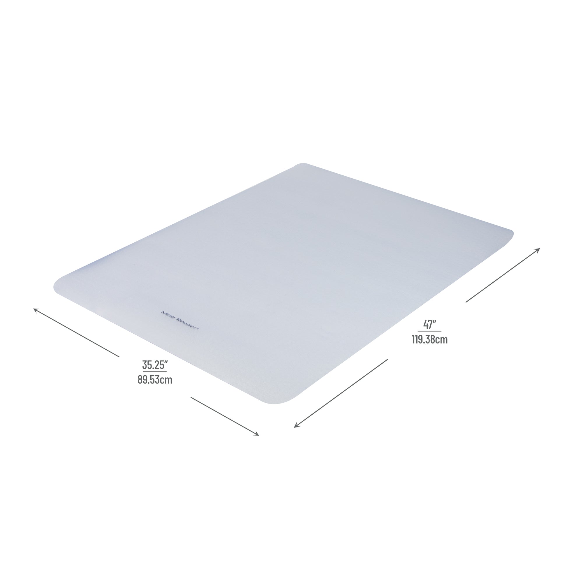 Best on hardwood, tile, laminate, or vinyl flooring, our office chair mat is versatile and suitable for various types of office settings. The clear design seamlessly blends with any floor decor. With generous dimensions of 47.25 inches long by 35.25 inches wide, this mat offers ample coverage.