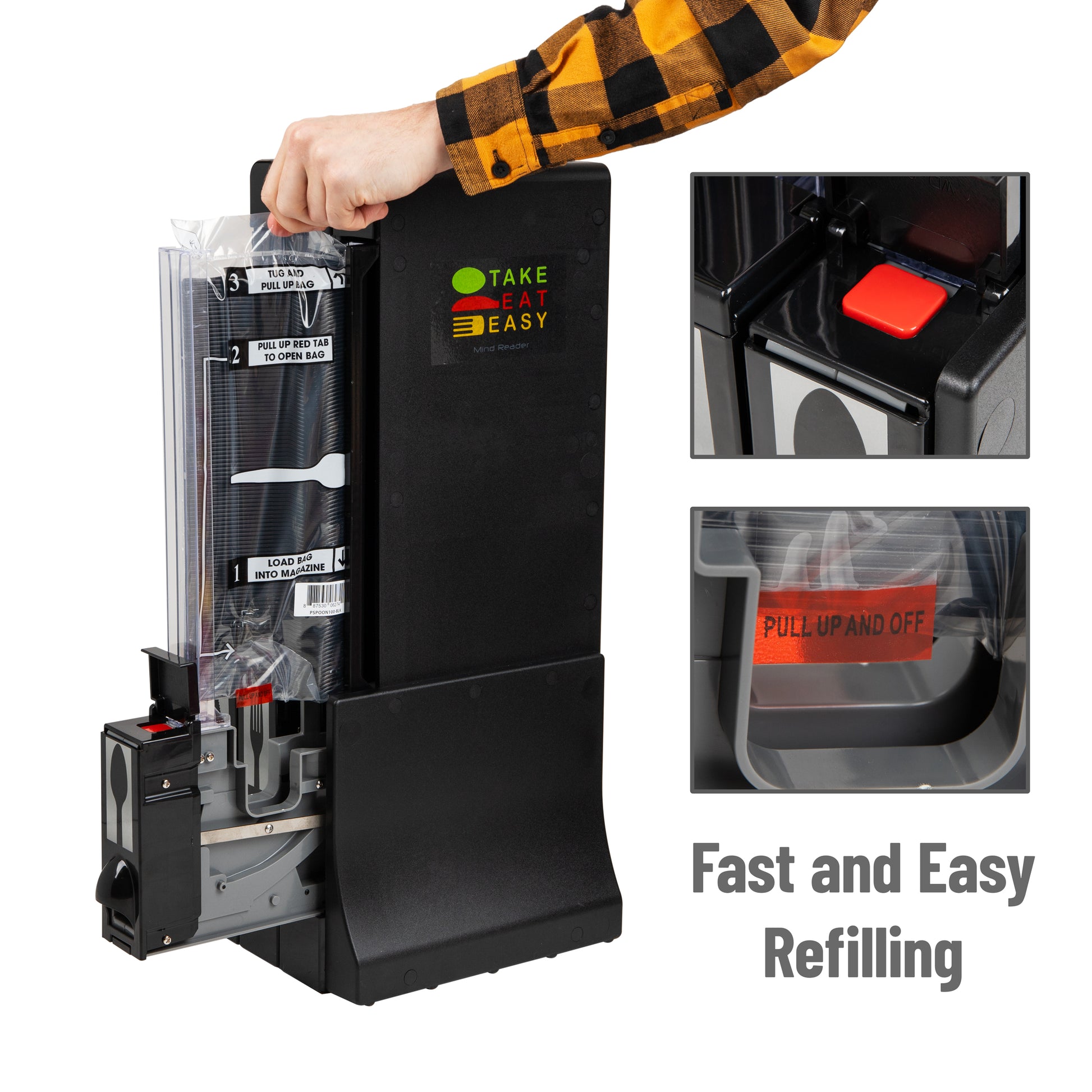 - Space-Saving Design: Designed to maximize counter space, holding a 300 pieces of cutlery, it is perfect for break rooms. IMPORTANT NOTE: This product is exclusively compatible with Mind Reader Plastic Utensils, sold separately