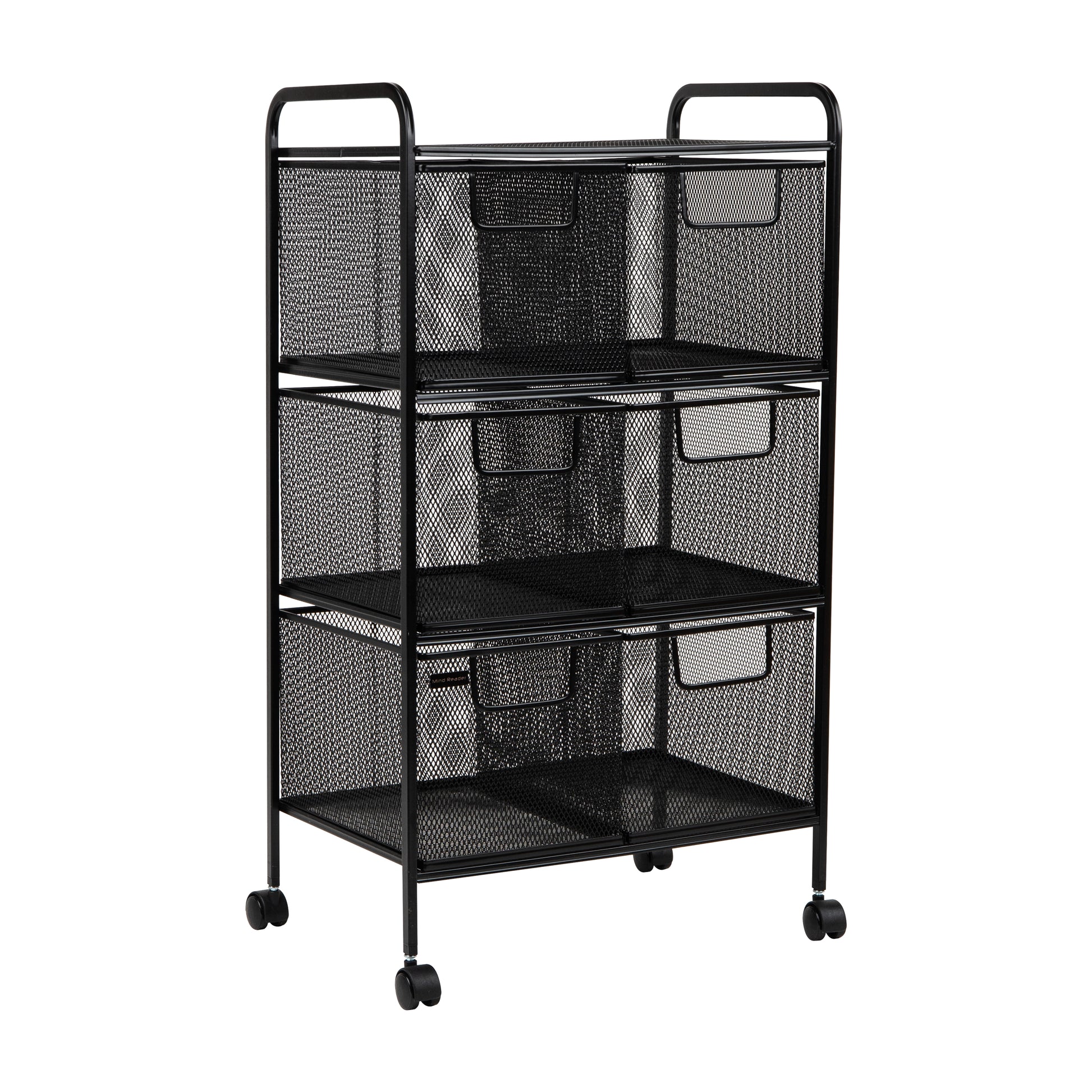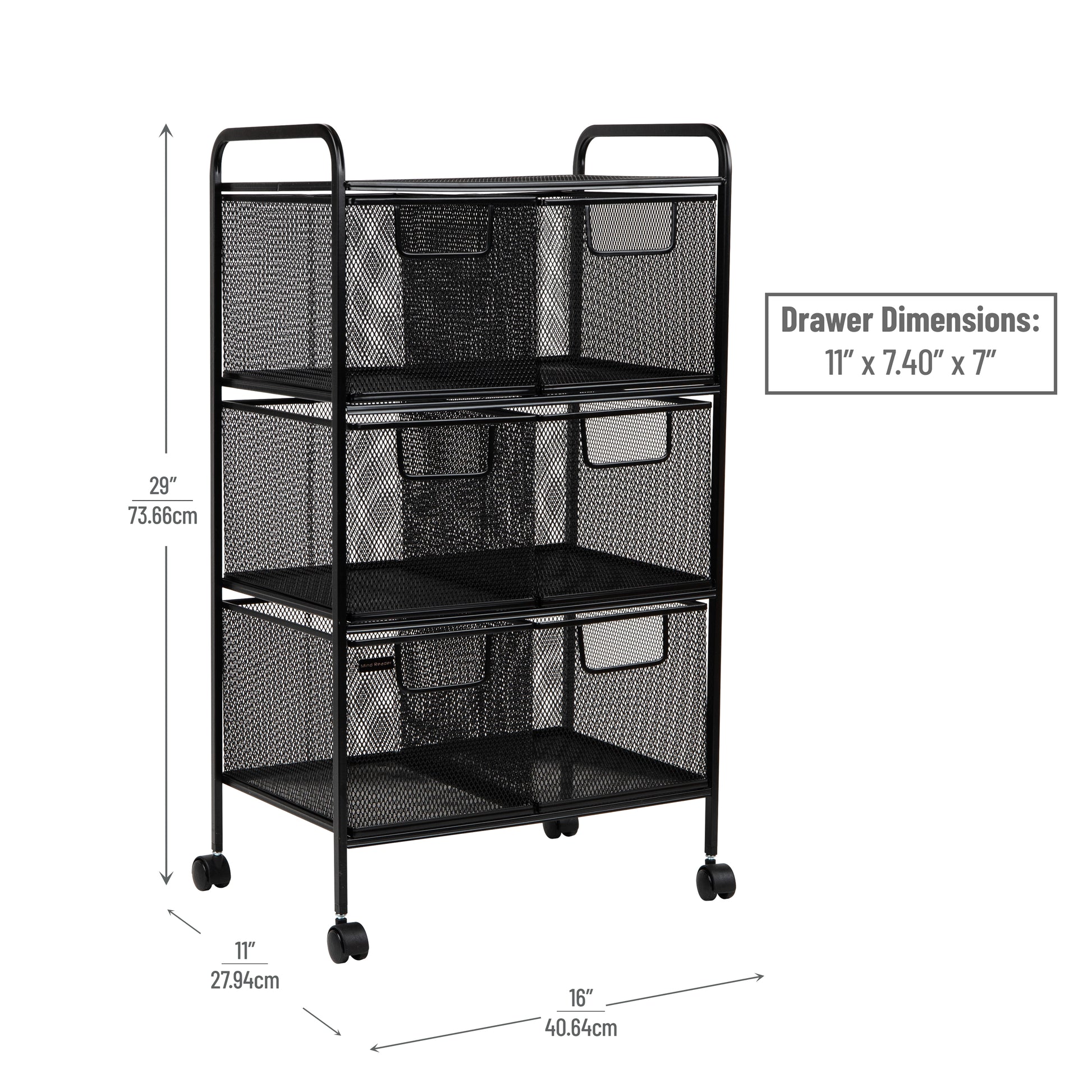 Mind Reader Multipurpose Rolling Cart with Drawers, Office Storage Organizer, Utility Cart, Metal Mesh, Black