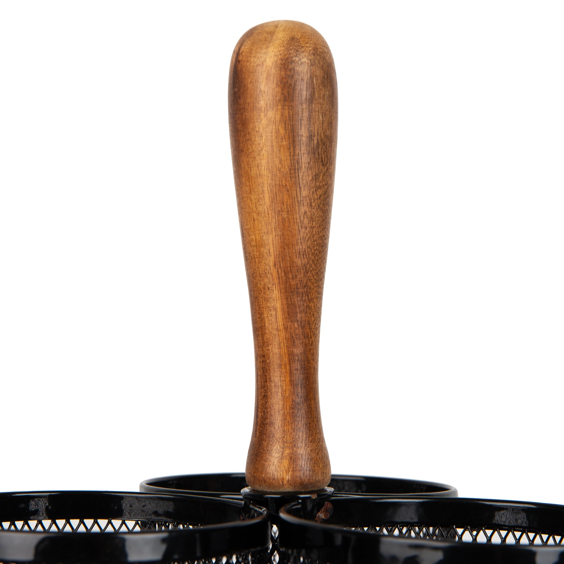 Crafted from durable black wire mesh with a natural wood handle, this caddy blends modern utility with rustic charm. The three open-top compartments offer visibility and accessibility, making it ideal for desktops, countertops, or workstations. Its balanced design prevents tipping, even when partially filled. A practical storage solution for homes, studios, classrooms, or dorms.