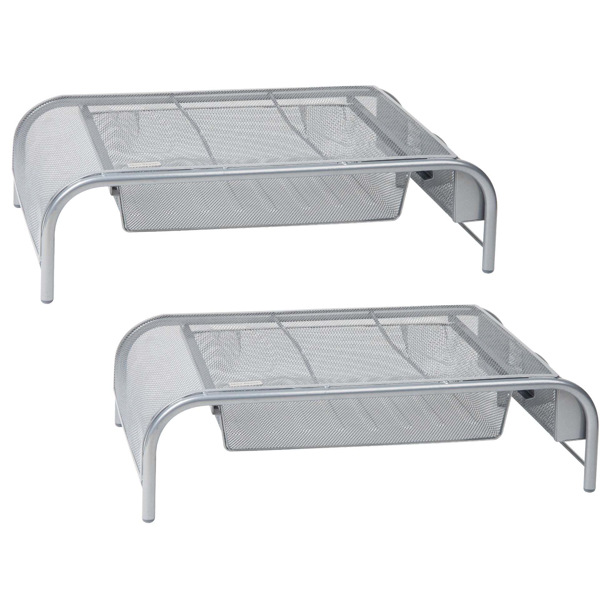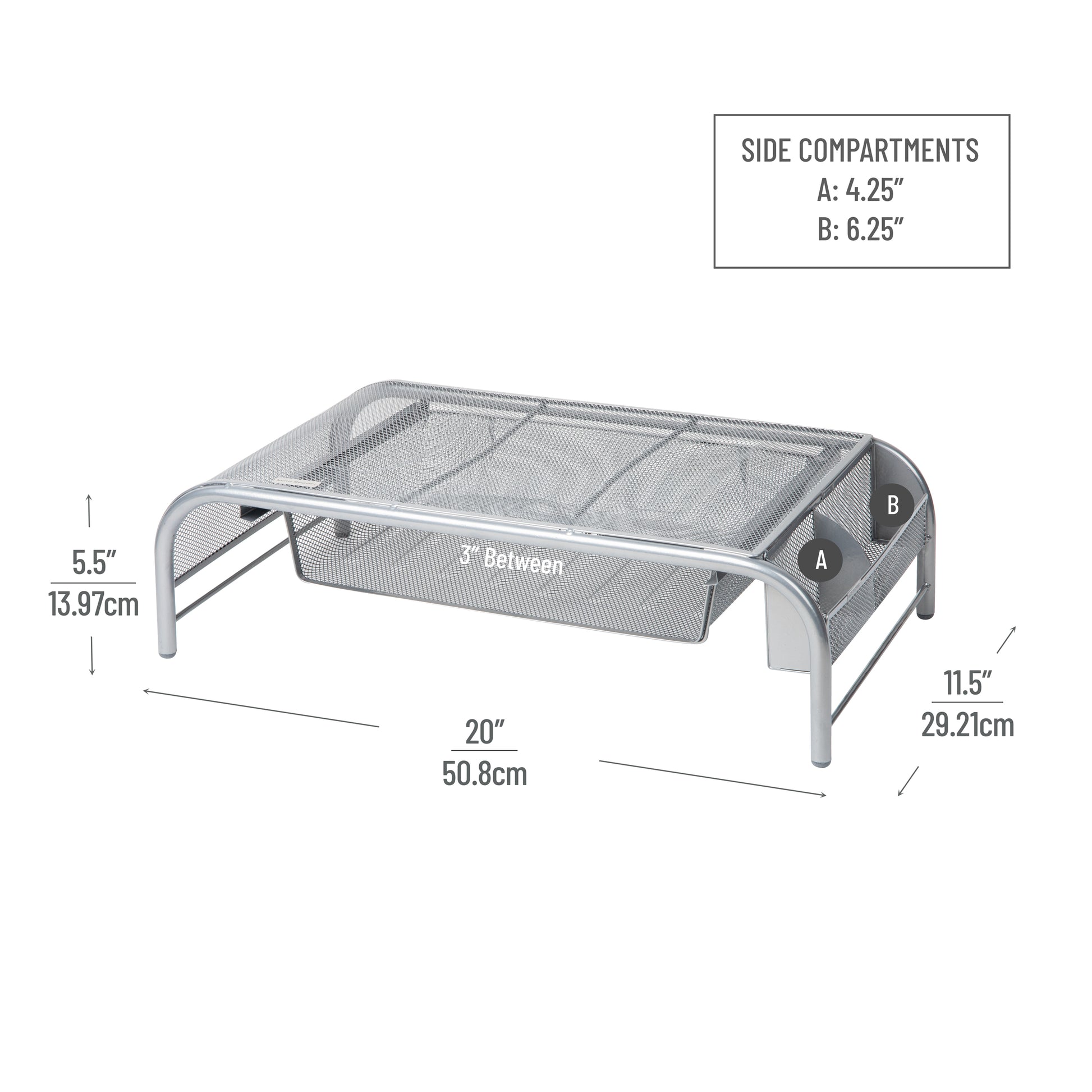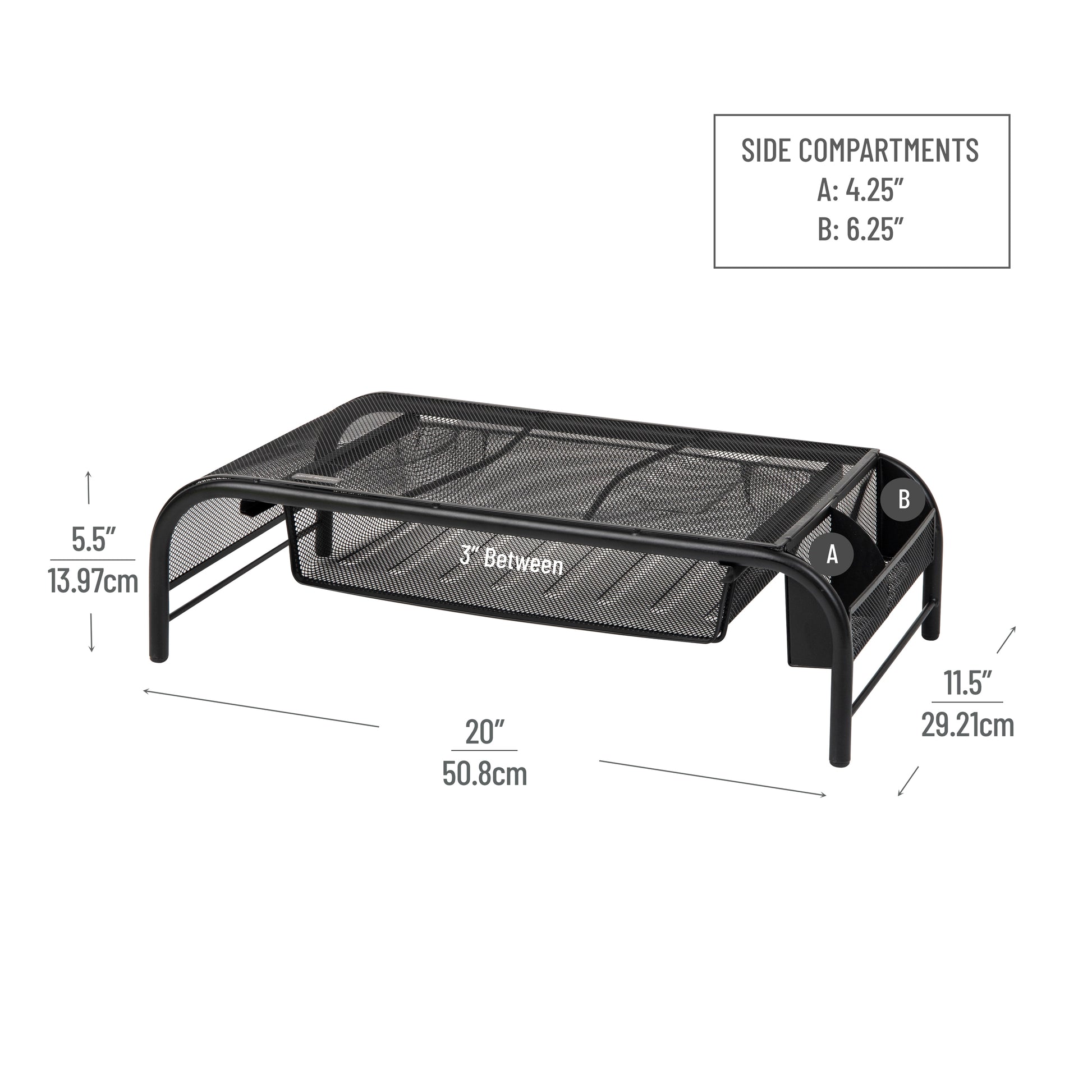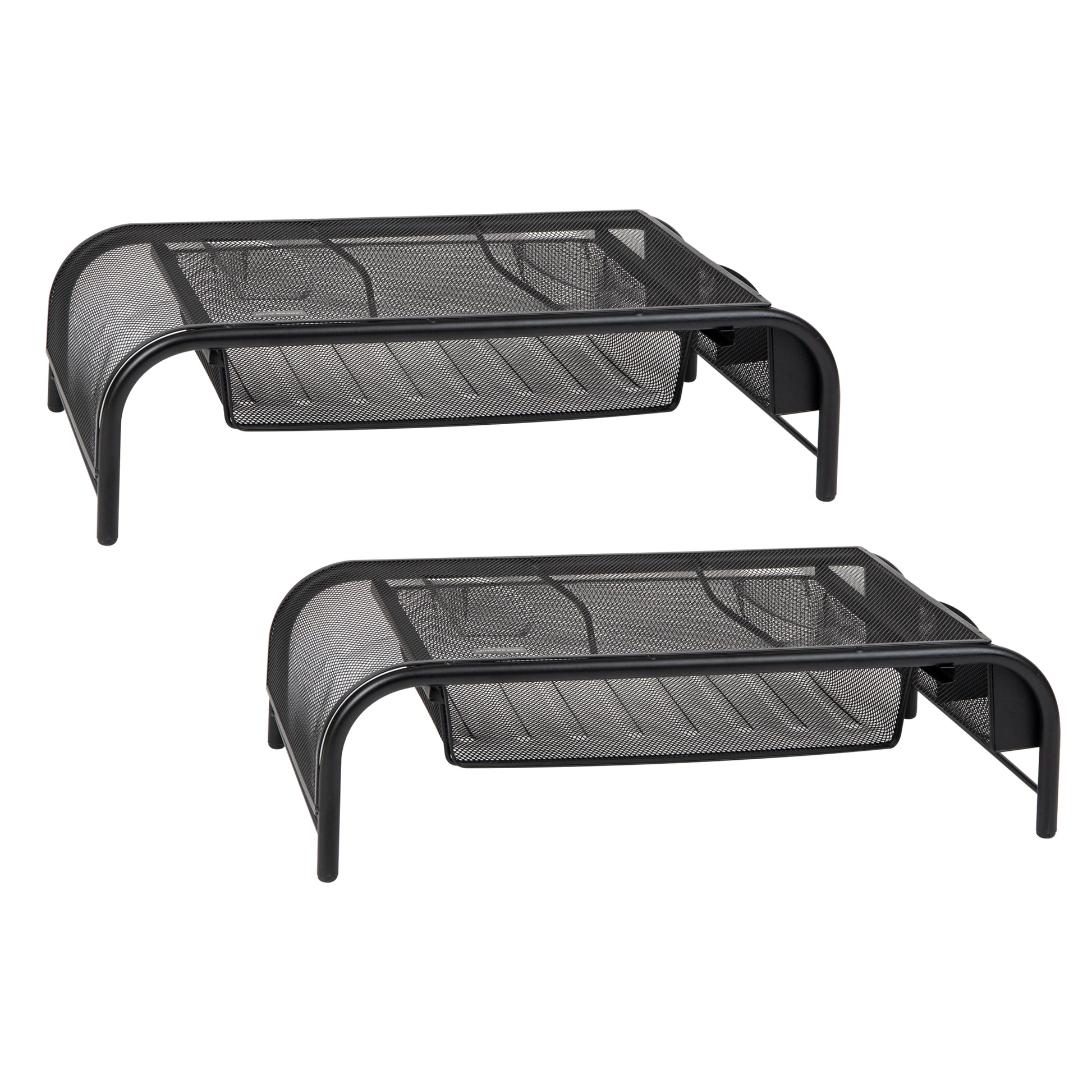 Mind Reader Monitor Stand, Ventilated Laptop Riser, Paper Tray, Office, Metal Mesh, 20"L x 11.5"W x 5.5"H, Set of 2