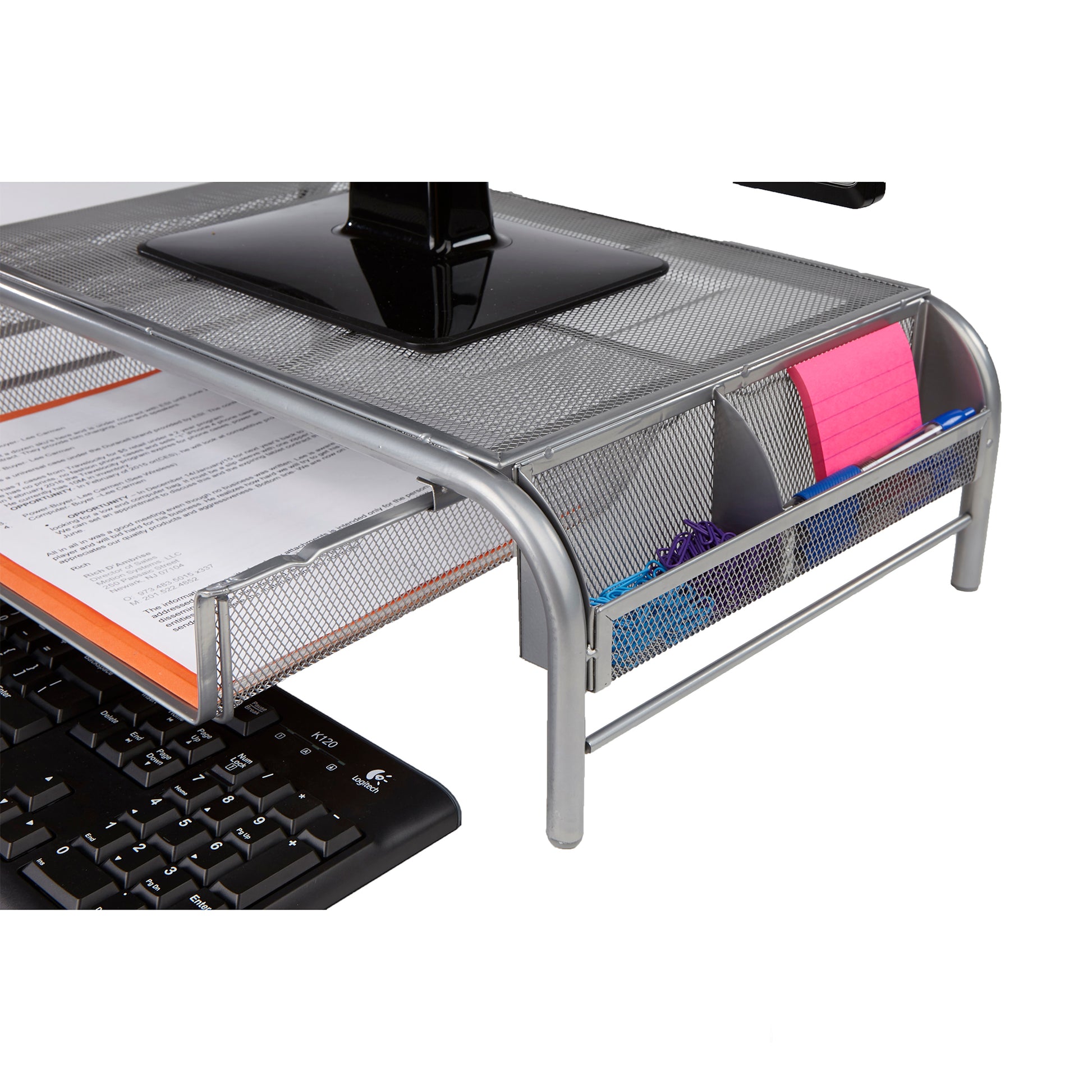Freeing up desktop space is easier to manage with the help of this monitor stand and desktop organizer combination. Two storage compartments located on the side of the monitor stand give you a place to put pens, markers, and other office supplies for easy access. Clear papers and files off your desk by placing them in the lower tier, and just tuck your keyboard under the monitor stand to free up more room for writing or even eating a meal.