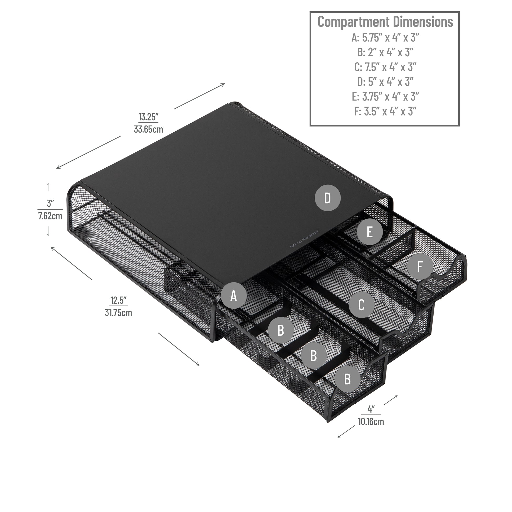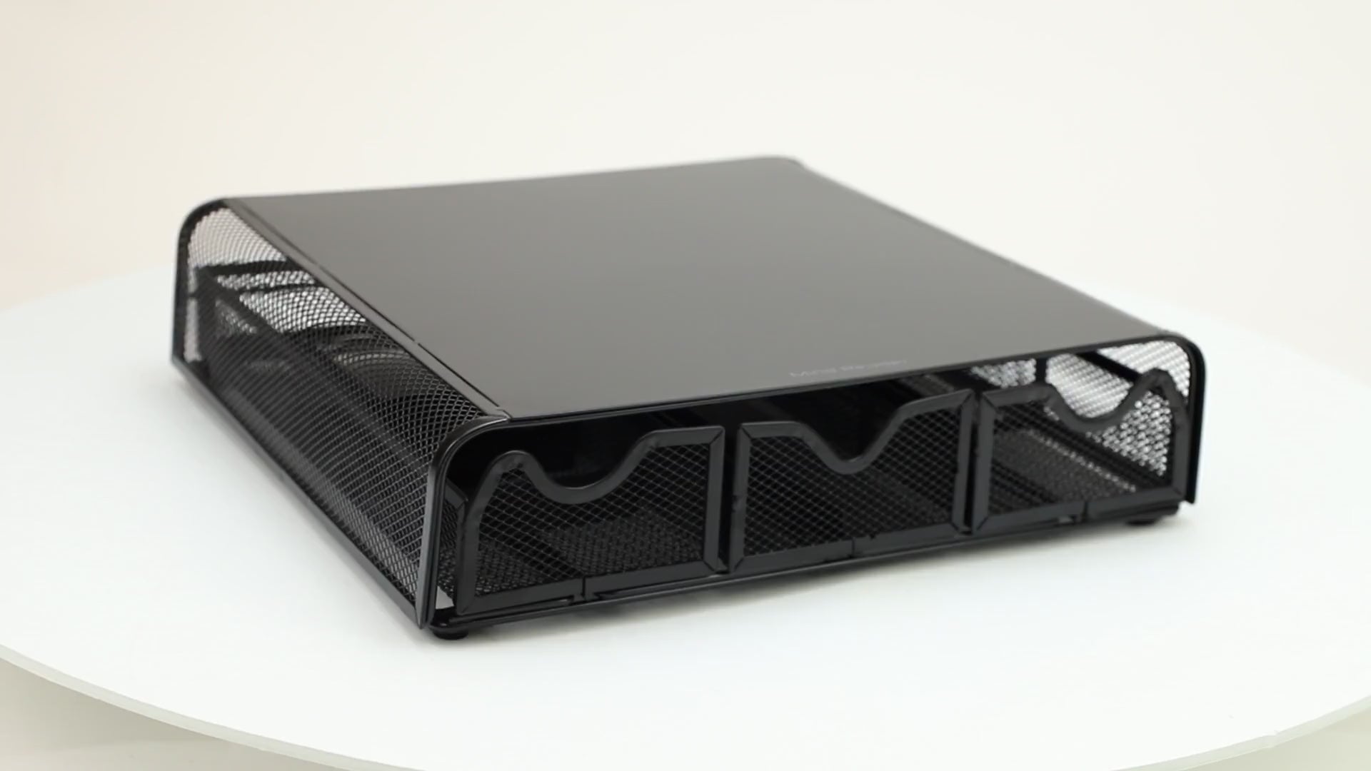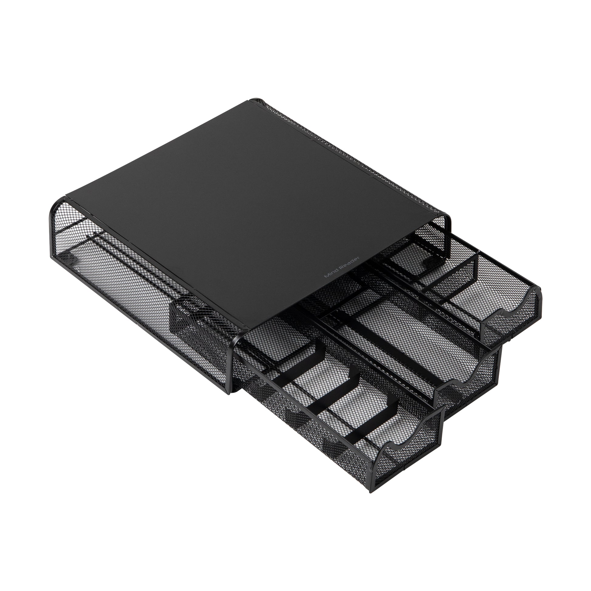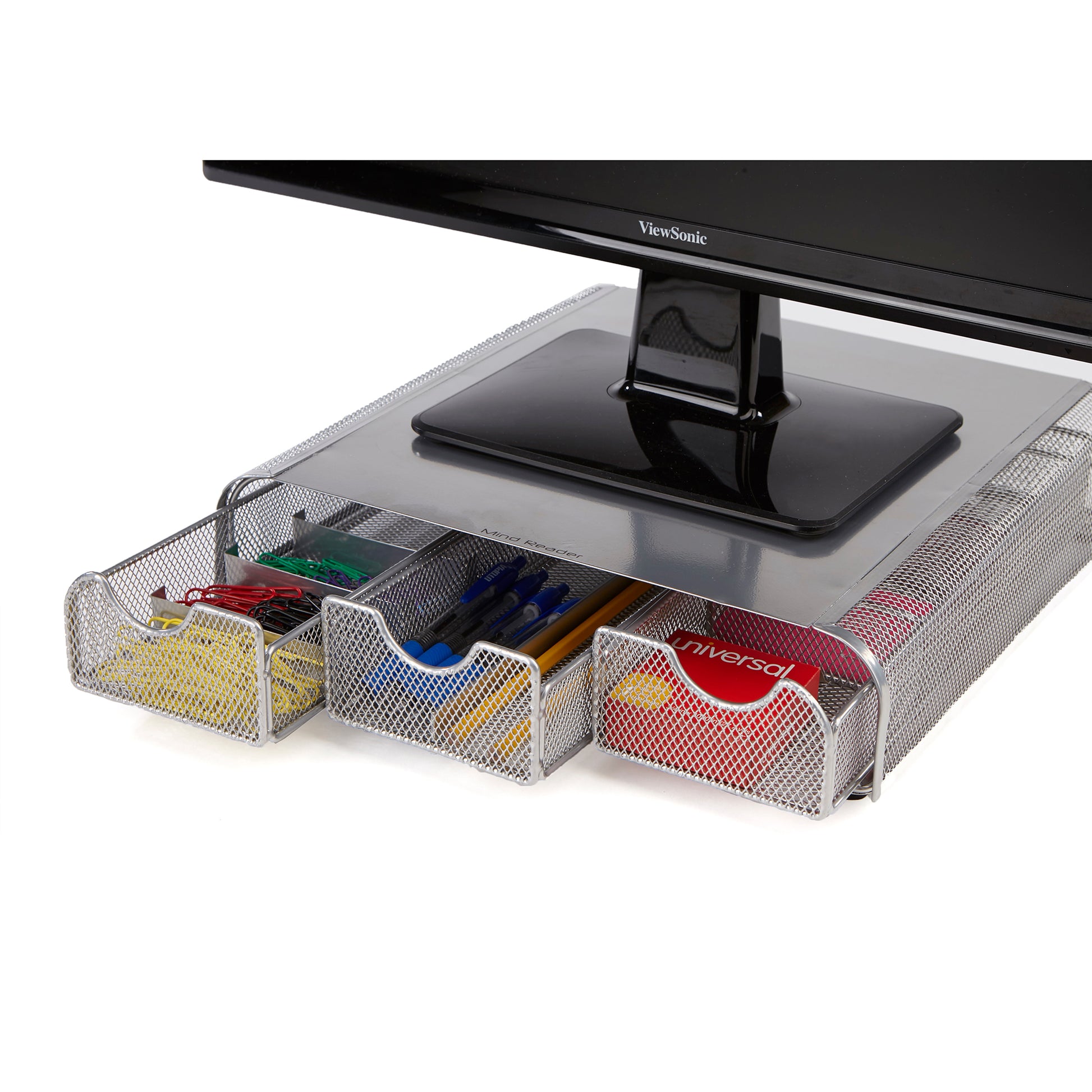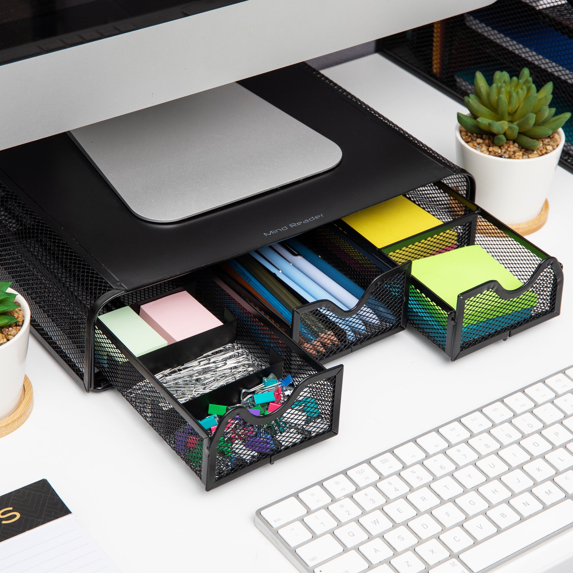 Featuring rubber feet for stability and an attractive design, this stand includes a built-in desk organizer with three drawers, offering ample storage for office supplies. Made from high-quality metal mesh, it is strong, durable, and easy to clean for daily use.