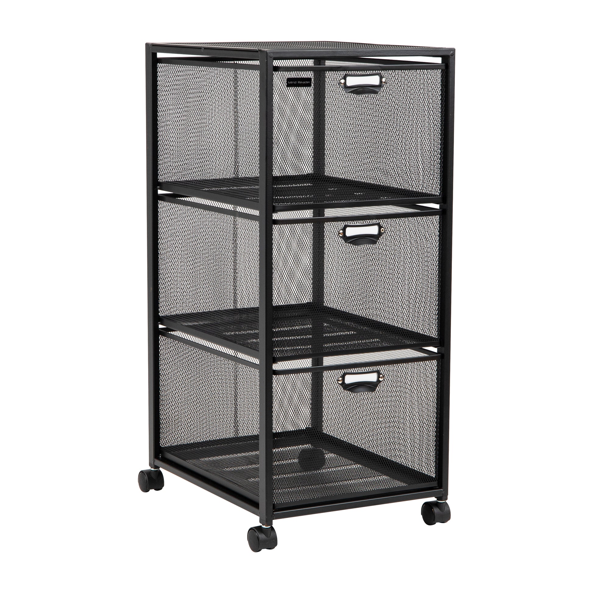 Built from durable metal mesh and easy to clean, this cart adds function and style to your office or home office setup. Four smooth-gliding caster wheels make it easy to move from room to room, and the compact size allows it to tuck neatly under desks or into corners. Arrives fully assembled, with wheels that push into place for fast setup.
