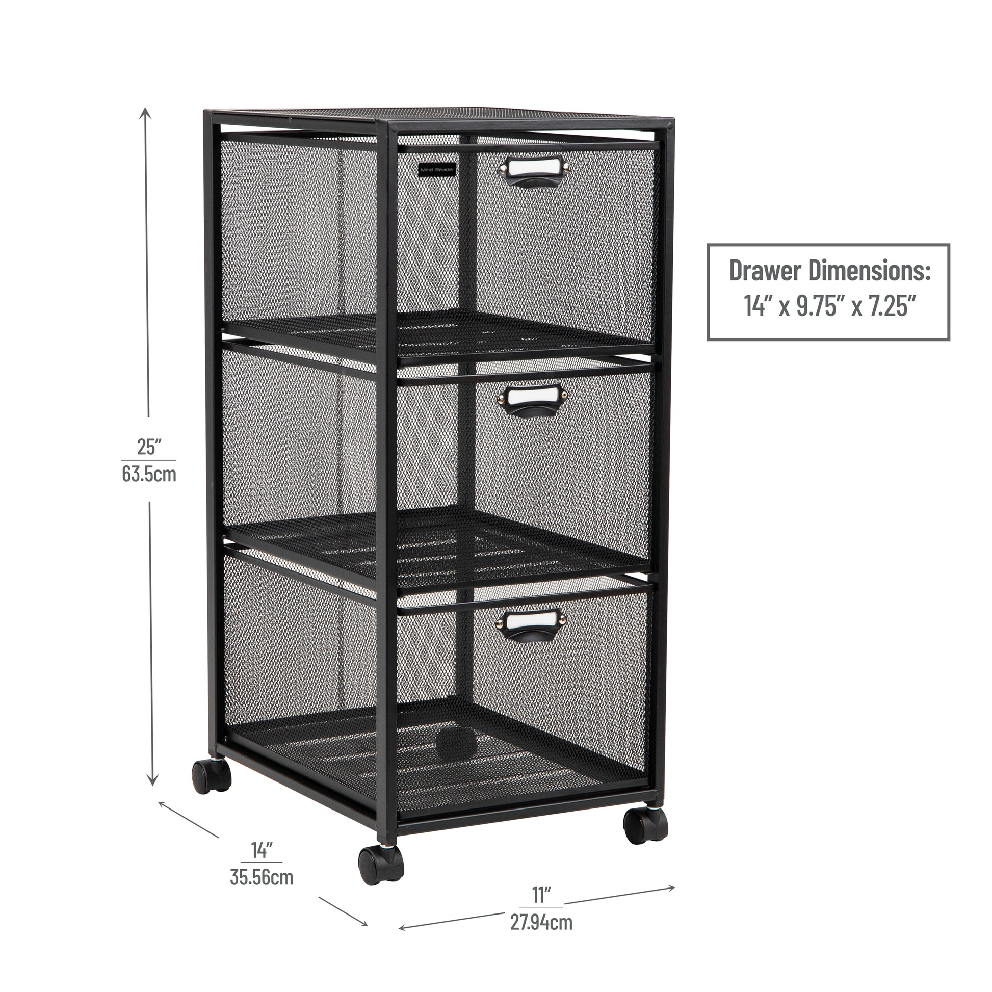 Keep your workspace tidy and efficient with this sleek multipurpose rolling cart from Mind Reader. Featuring three spacious mesh drawers and a minimalist frame, it’s ideal for organizing office supplies, documents, and personal items in a compact footprint. Each drawer includes a labeling bracket with insert cards for quick identification, and holds up to 11 lbs. (4.9 kg).