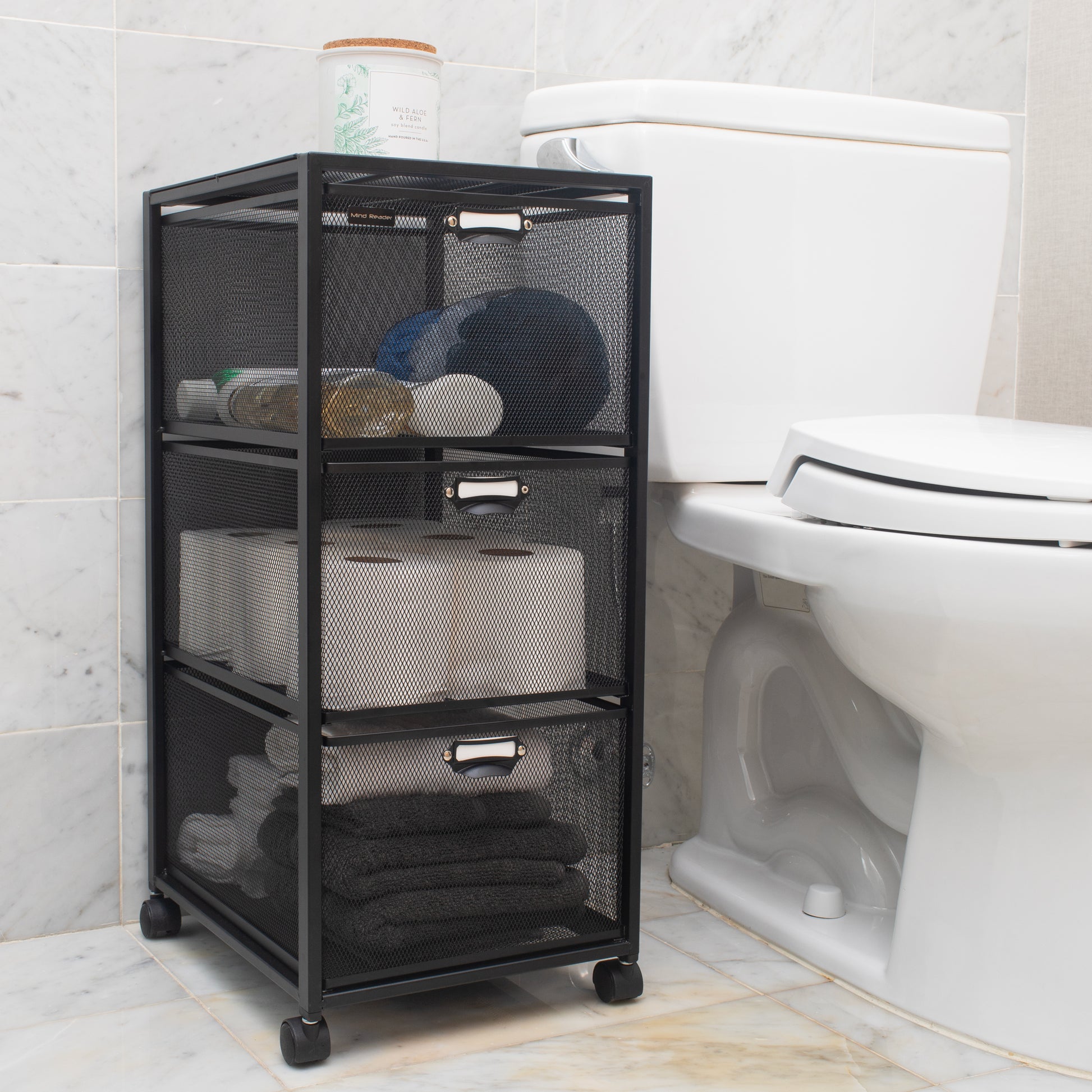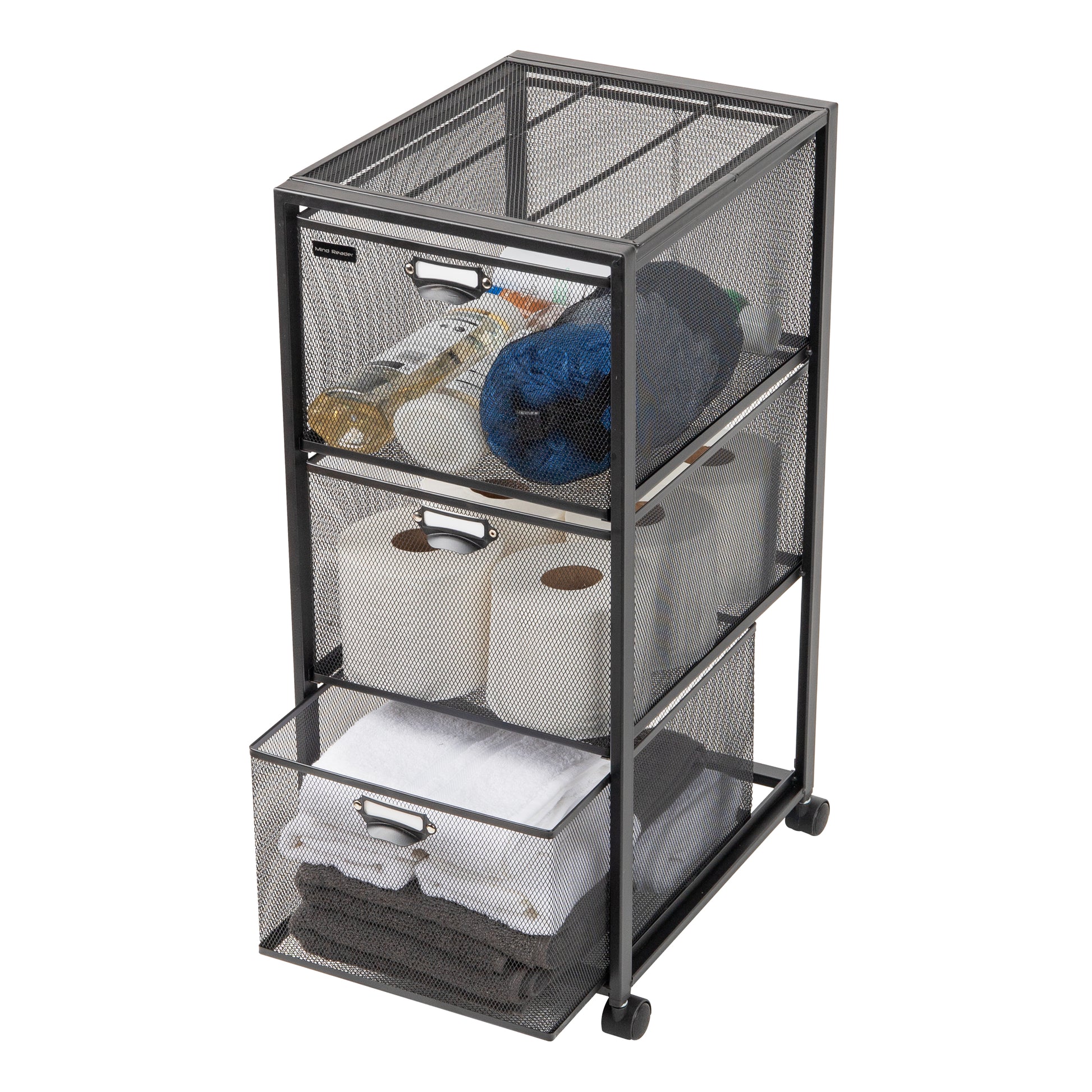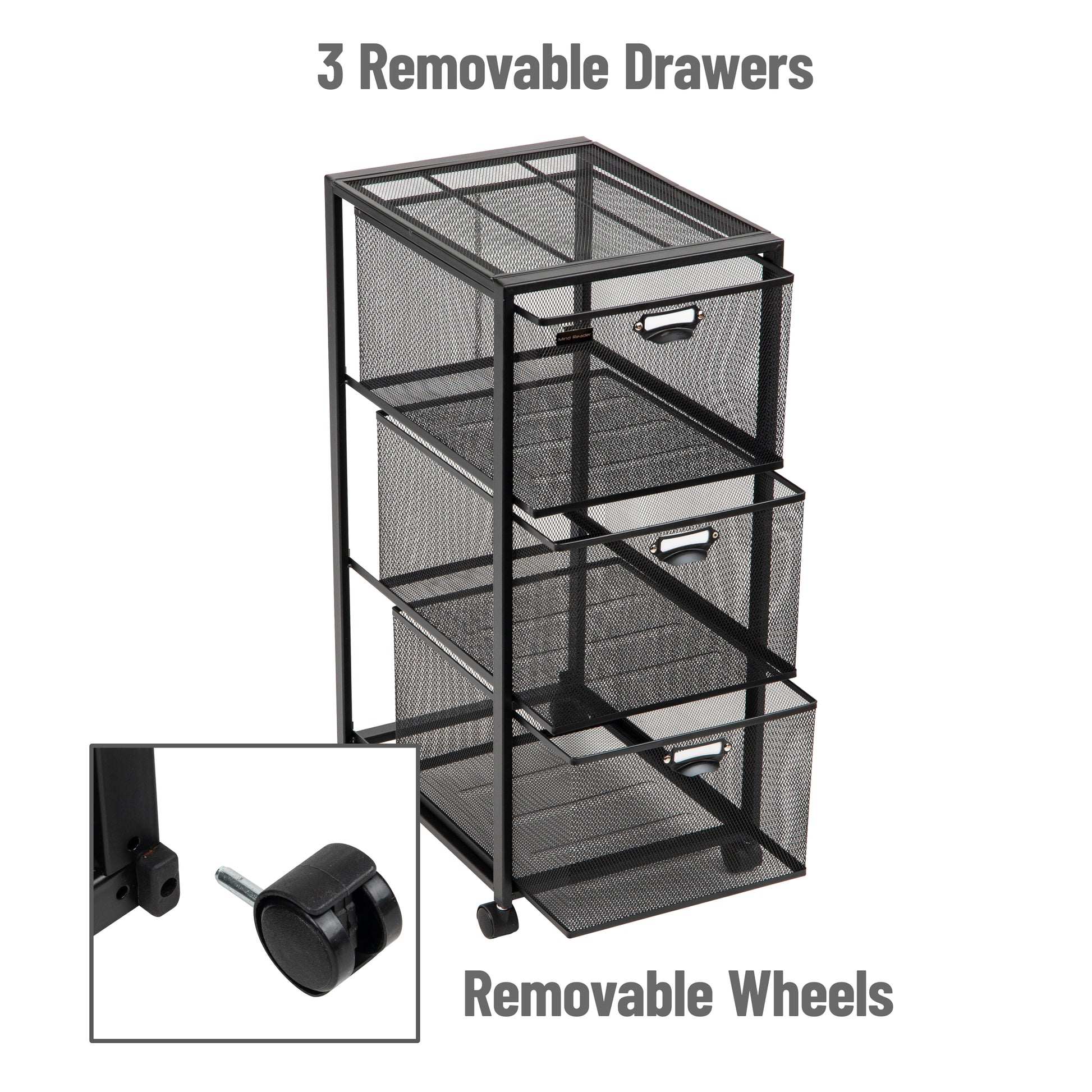Mind Reader Multipurpose Cart with Drawers, Rolling Office Organizer and Storage Cabinet, Metal Mesh, Black