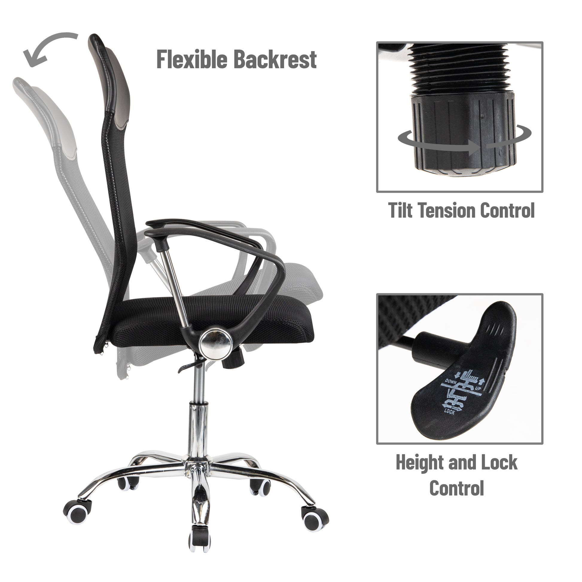 - Durable design: The pu leather headrest and mesh backrest have a sturdy nylon frame and the chrome star base features smooth-rolling nylon castors