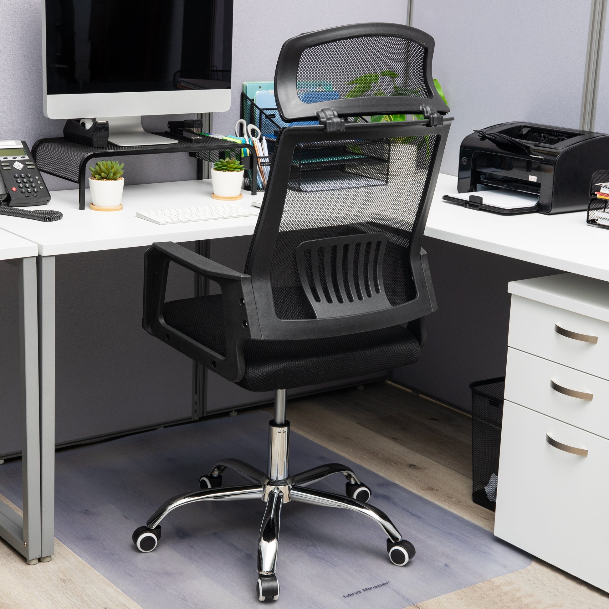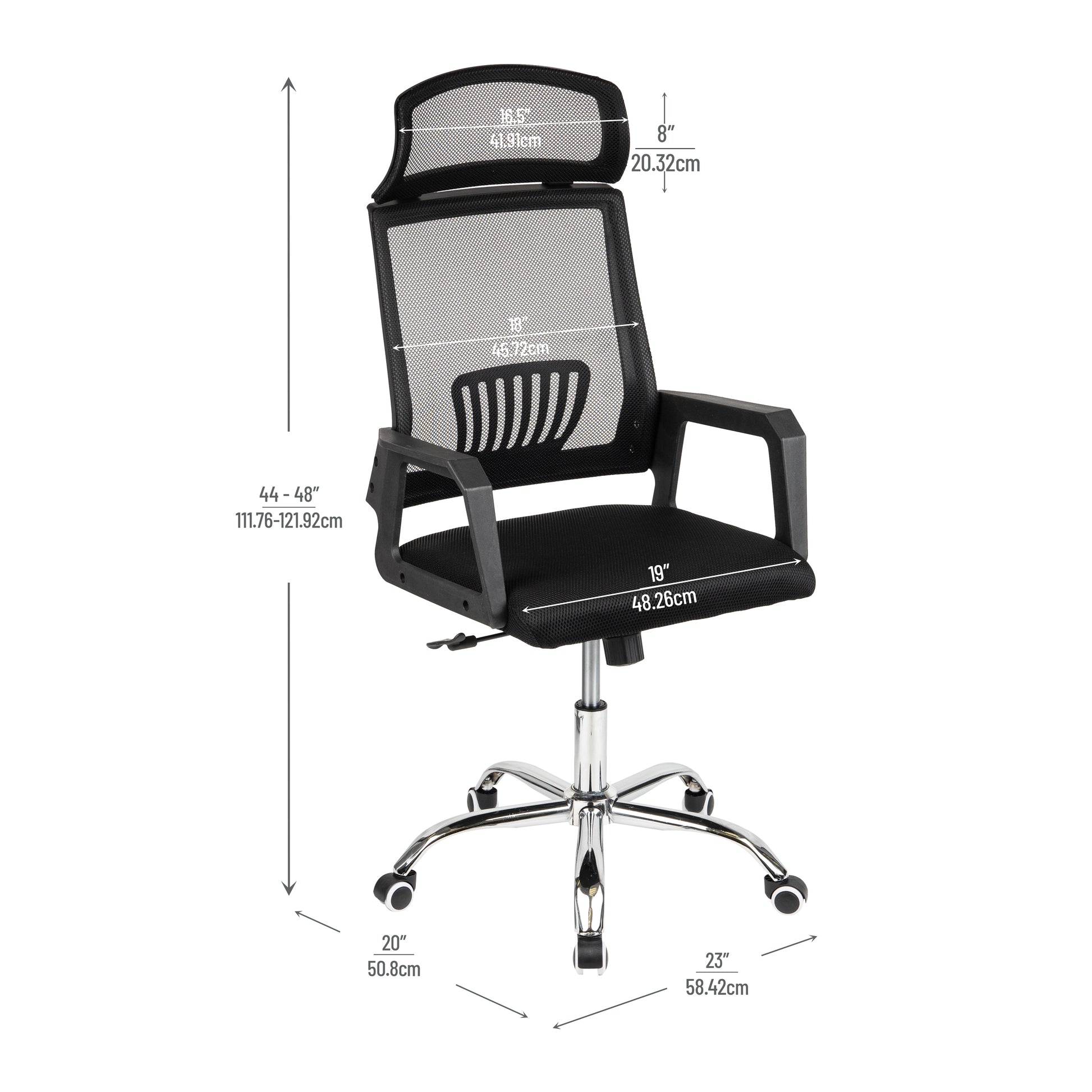 Designed for mobility and comfort, this swivel desk chair equipped with smooth-rolling casters is an ideal upgrade for your work, study, or browsing activities. Its rolling wheels make it easy to move the chair around your workspace. The chair combines durability and lightness with a strong chrome base and a breathable mesh back and headrest.