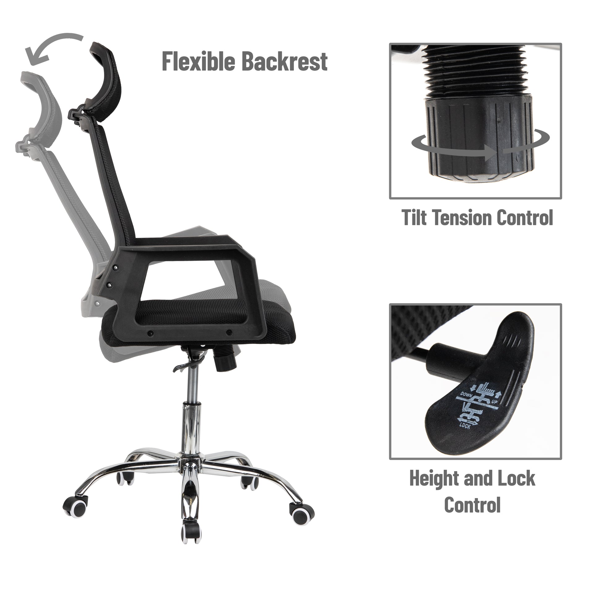 - Durable design: The headrest and backrest have a nylon frame with a mesh back and the sturdy chrome star base has smooth-rolling nylon castors