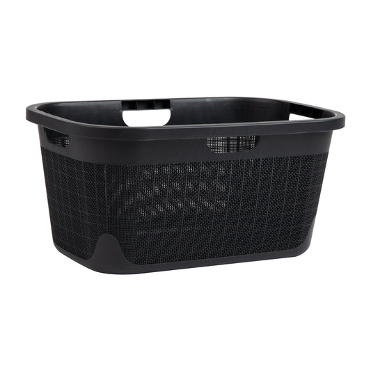 Mind Reader 40L Laundry Basket, Clothes Hamper, Wicker Design, Plastic, 23"L x 14.5"W x 11"H