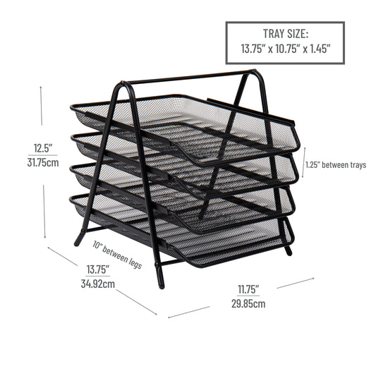Mind Reader 4-Tier Paper Tray, Desktop Organizer, File Storage, Workspace, Office, Metal Mesh, 11.75"L x 13.75"W x 12.5"H