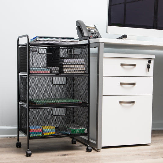 Mind Reader Cart with Drawers, Multipurpose Office Organizer, Utility Cart, Rolling Storage, Metal Mesh, Black