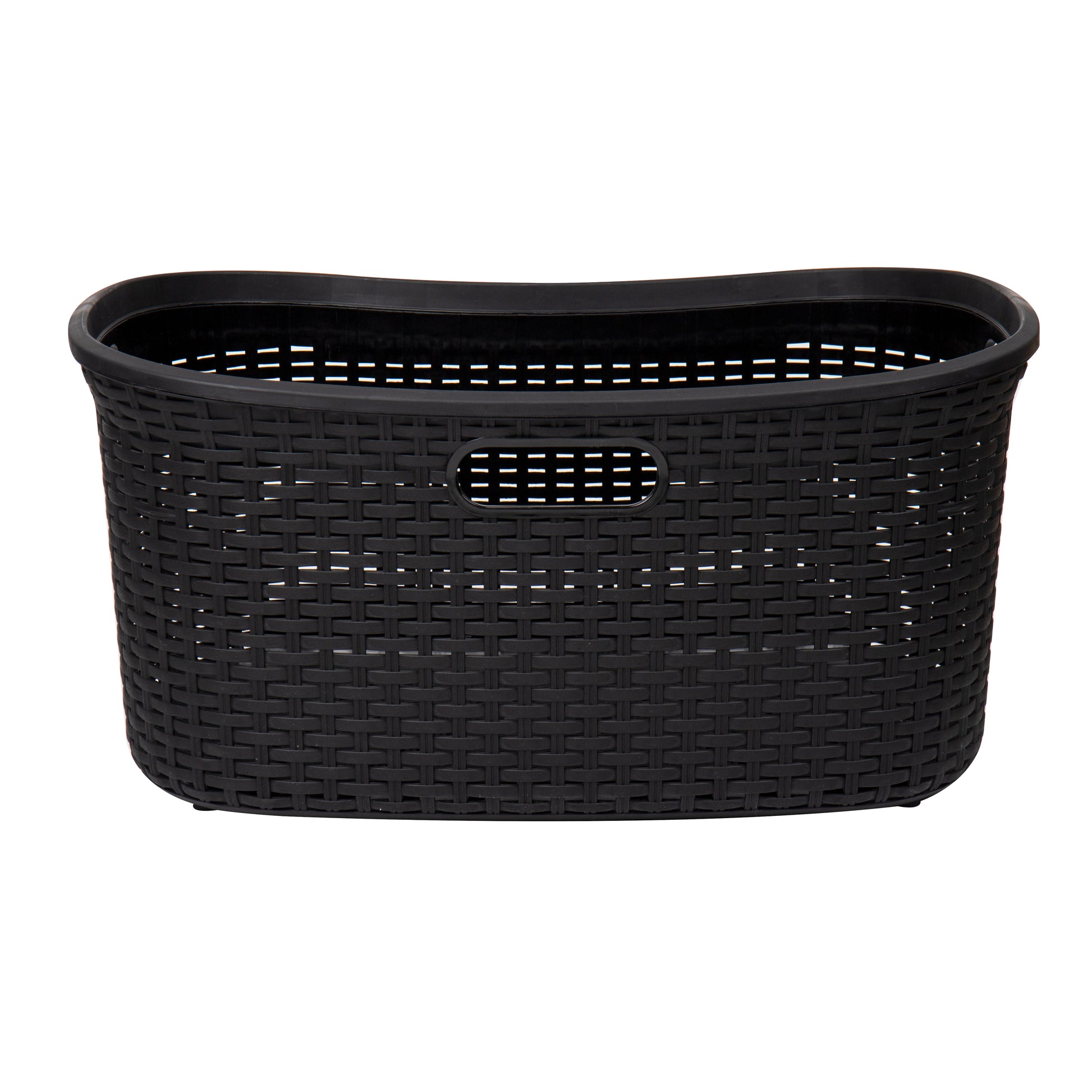 Mind Reader 40L Laundry Basket, Clothes Hamper, Wicker Design, Plastic, 23"L x 14.5"W x 11"H