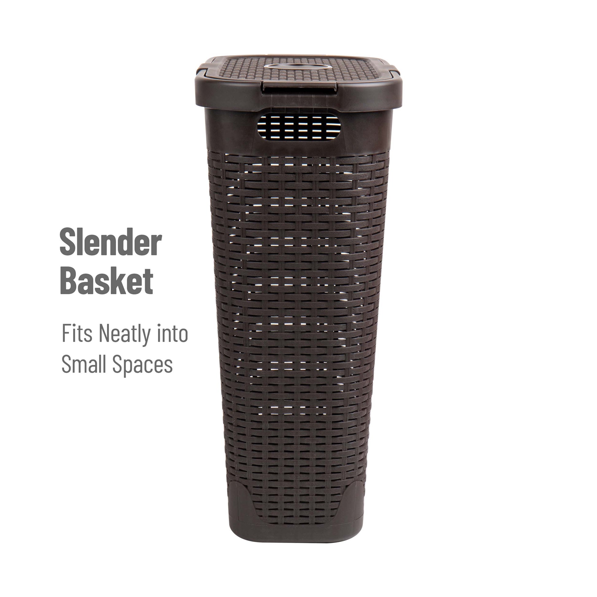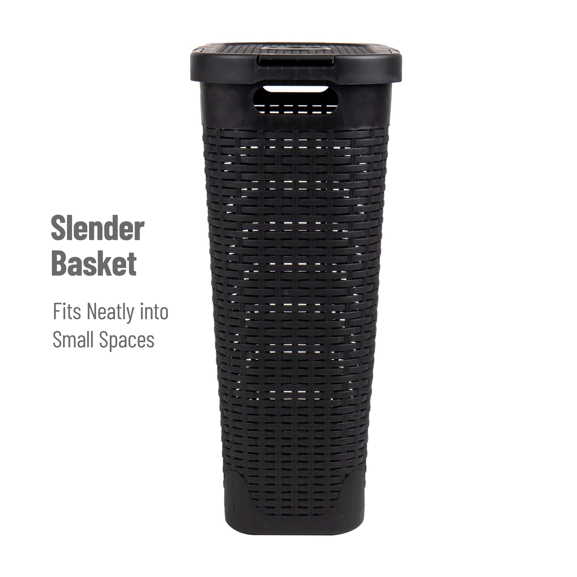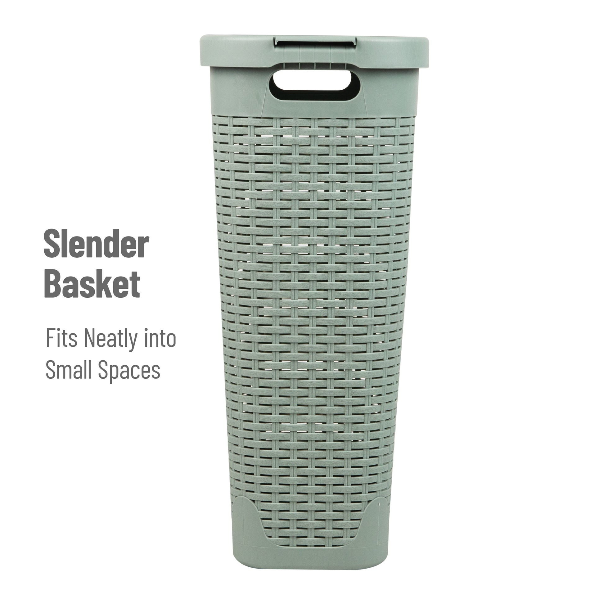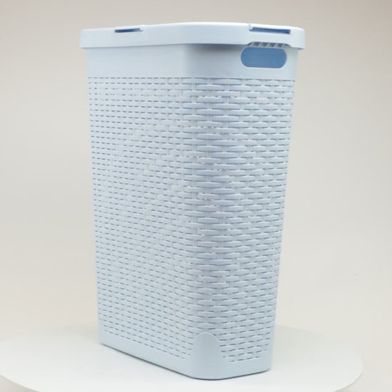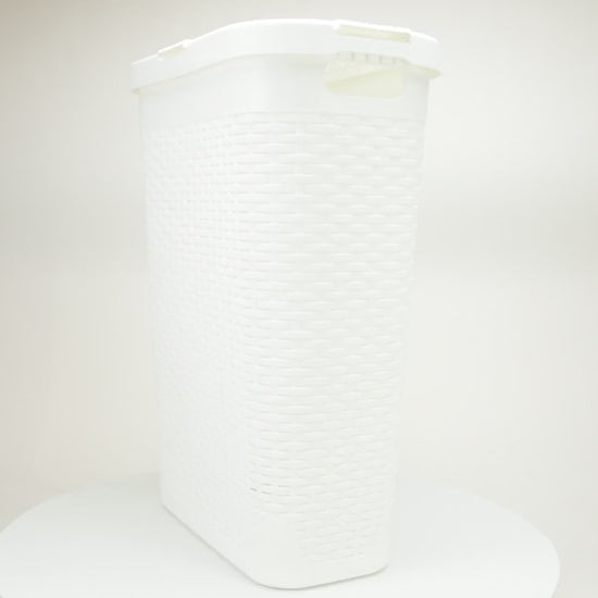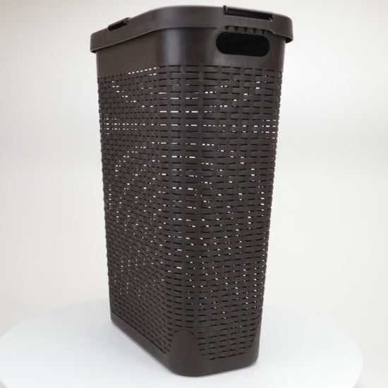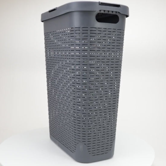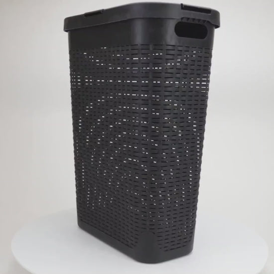 Mind Reader Slim Laundry Hamper with Lid, 40L Clothes Basket, Premium Wicker Design, Plastic