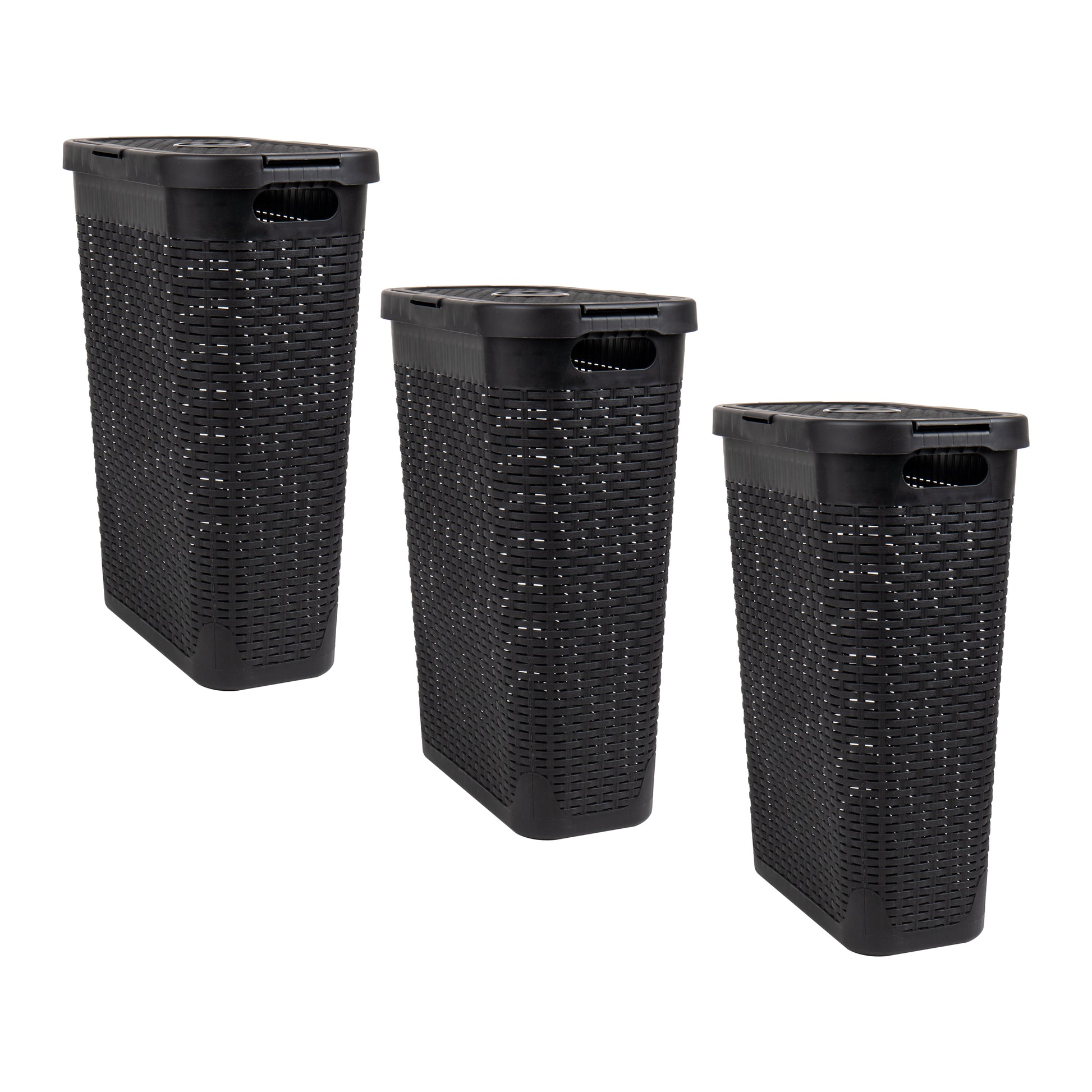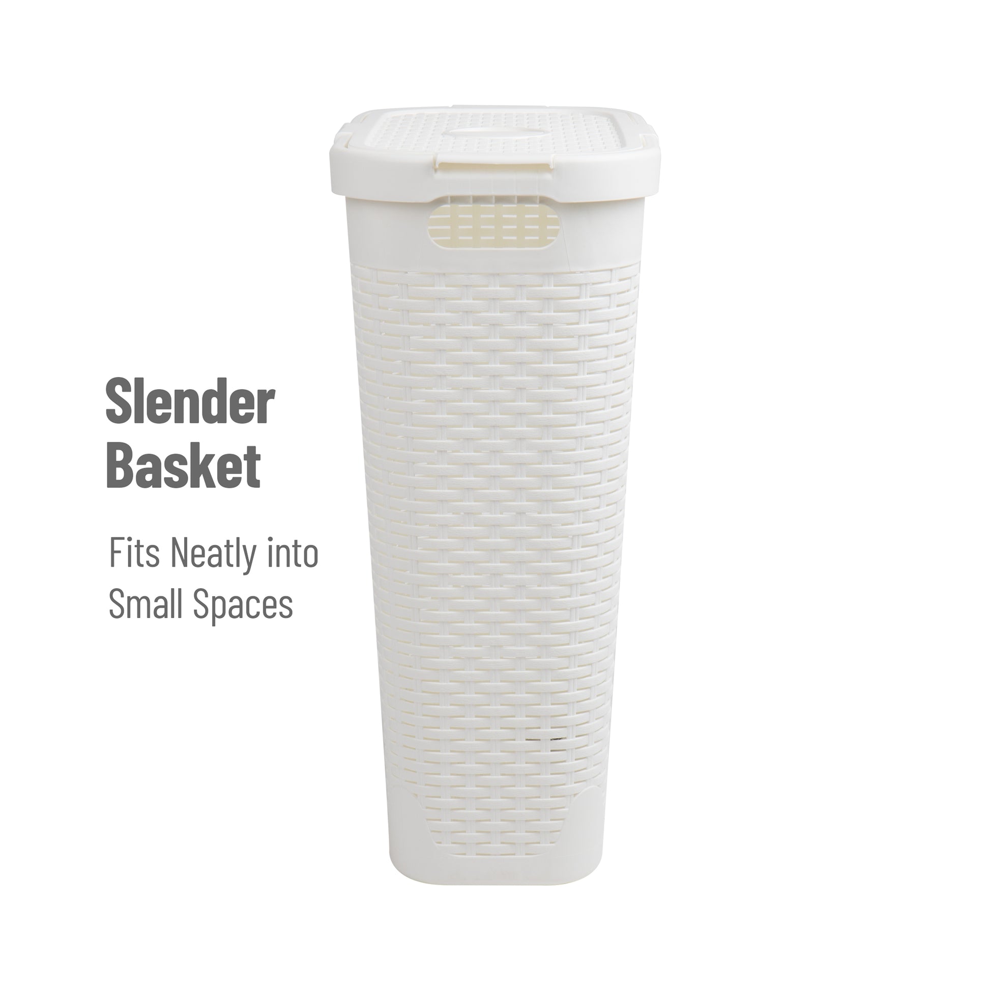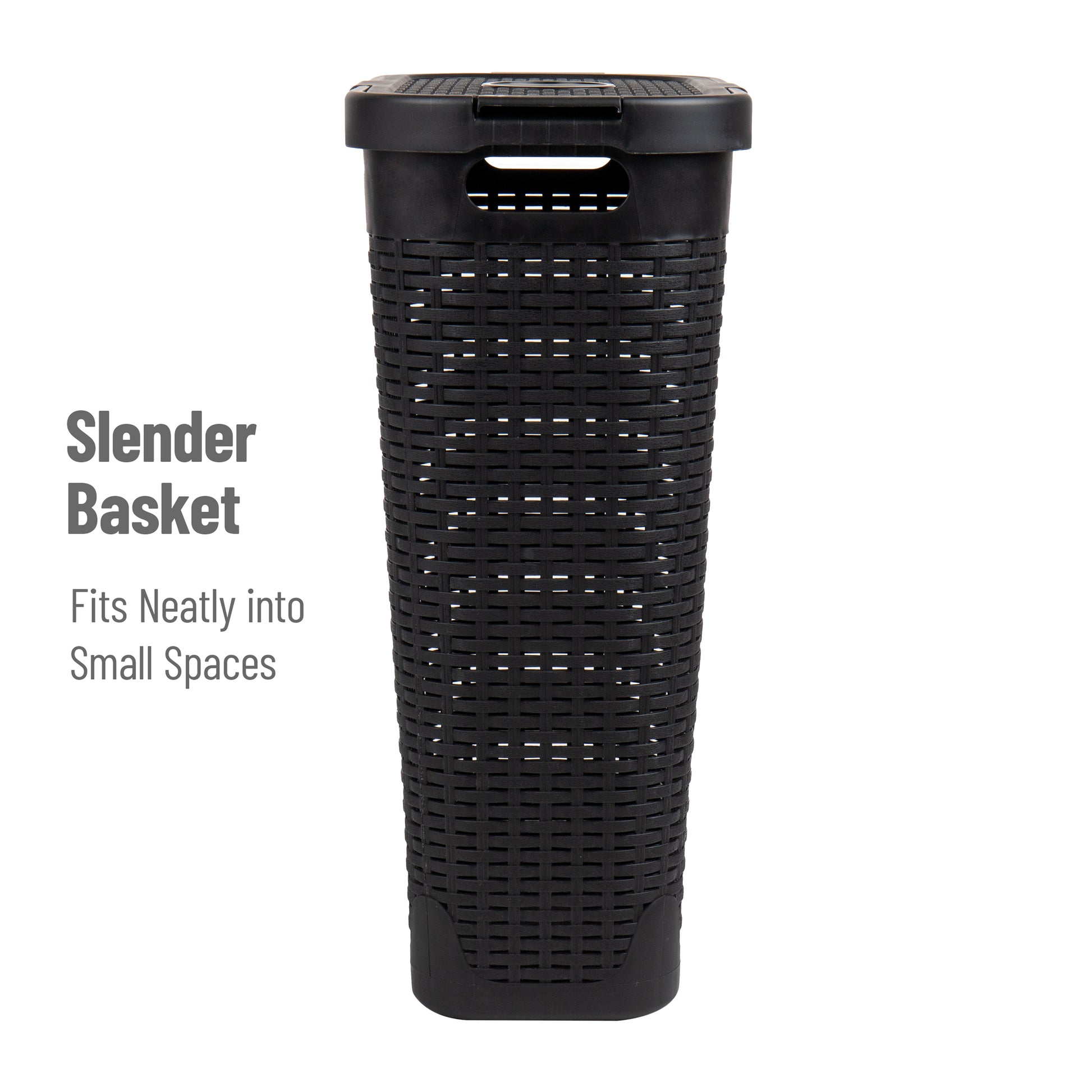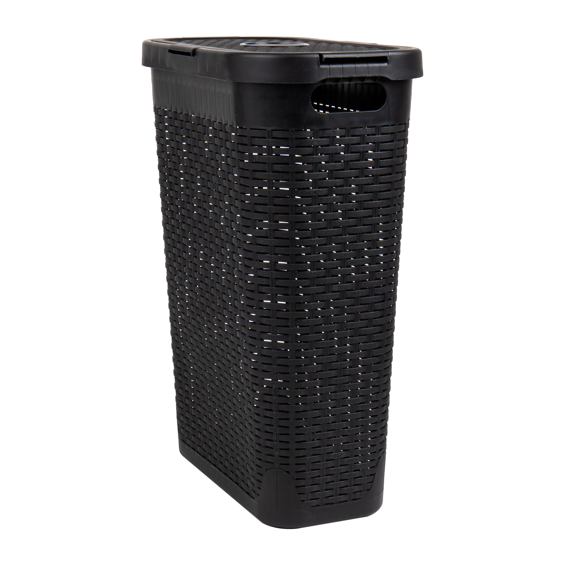Mind Reader Slim Laundry Hamper with Lid, 40L Clothes Basket, Premium Wicker Design, Plastic