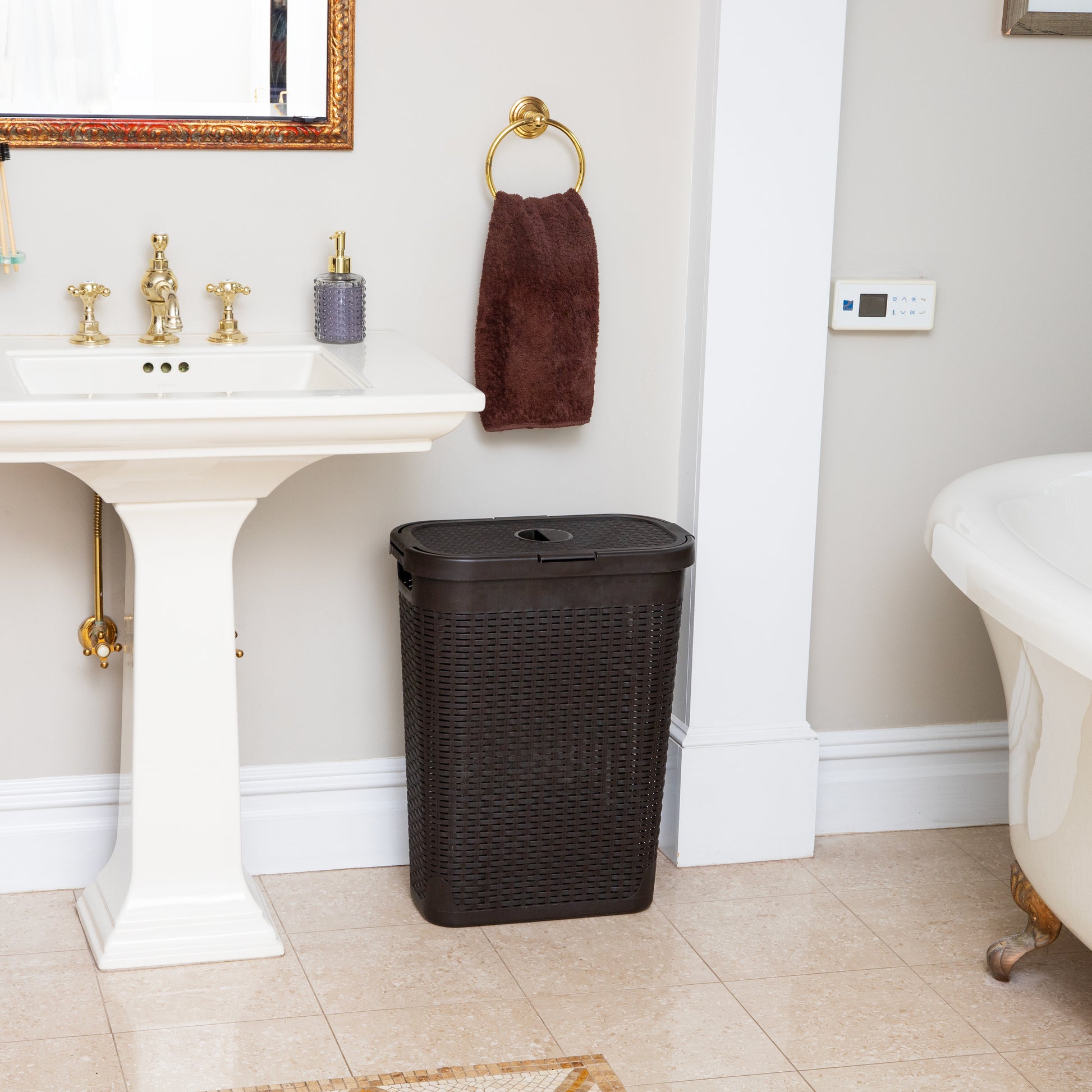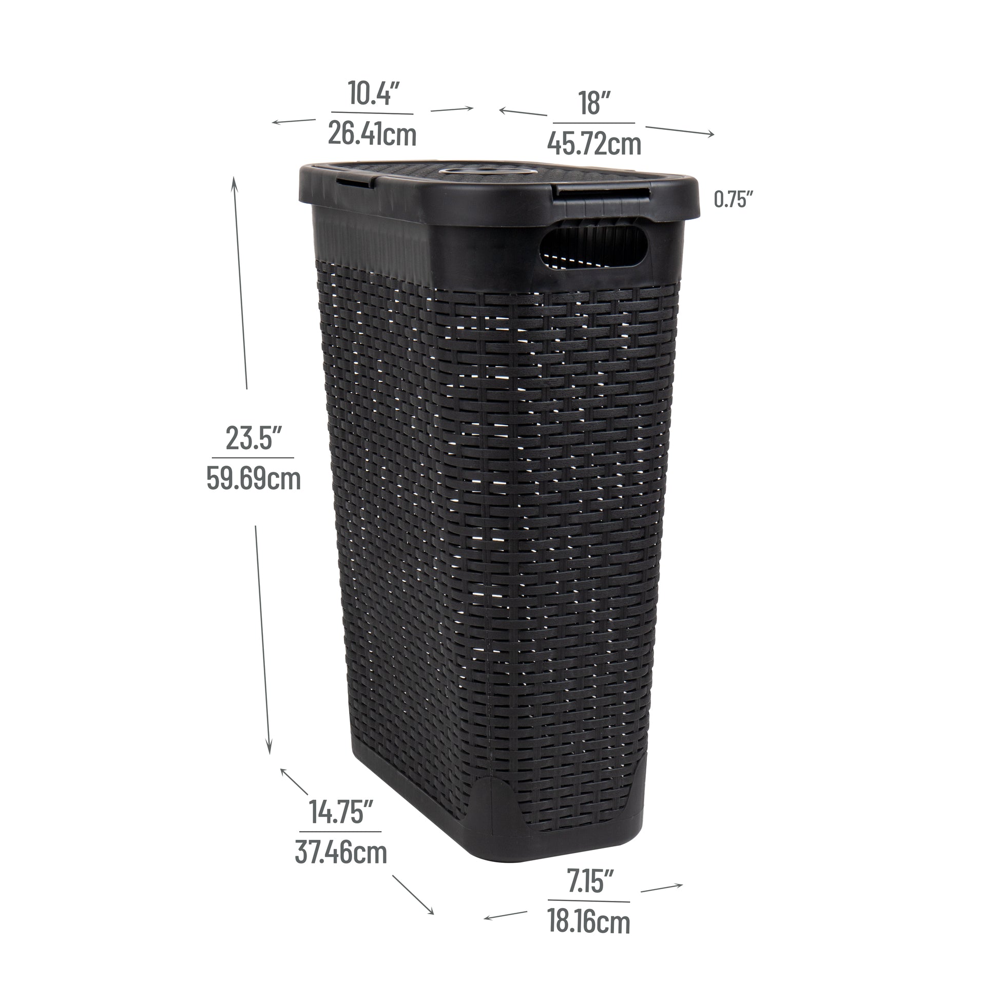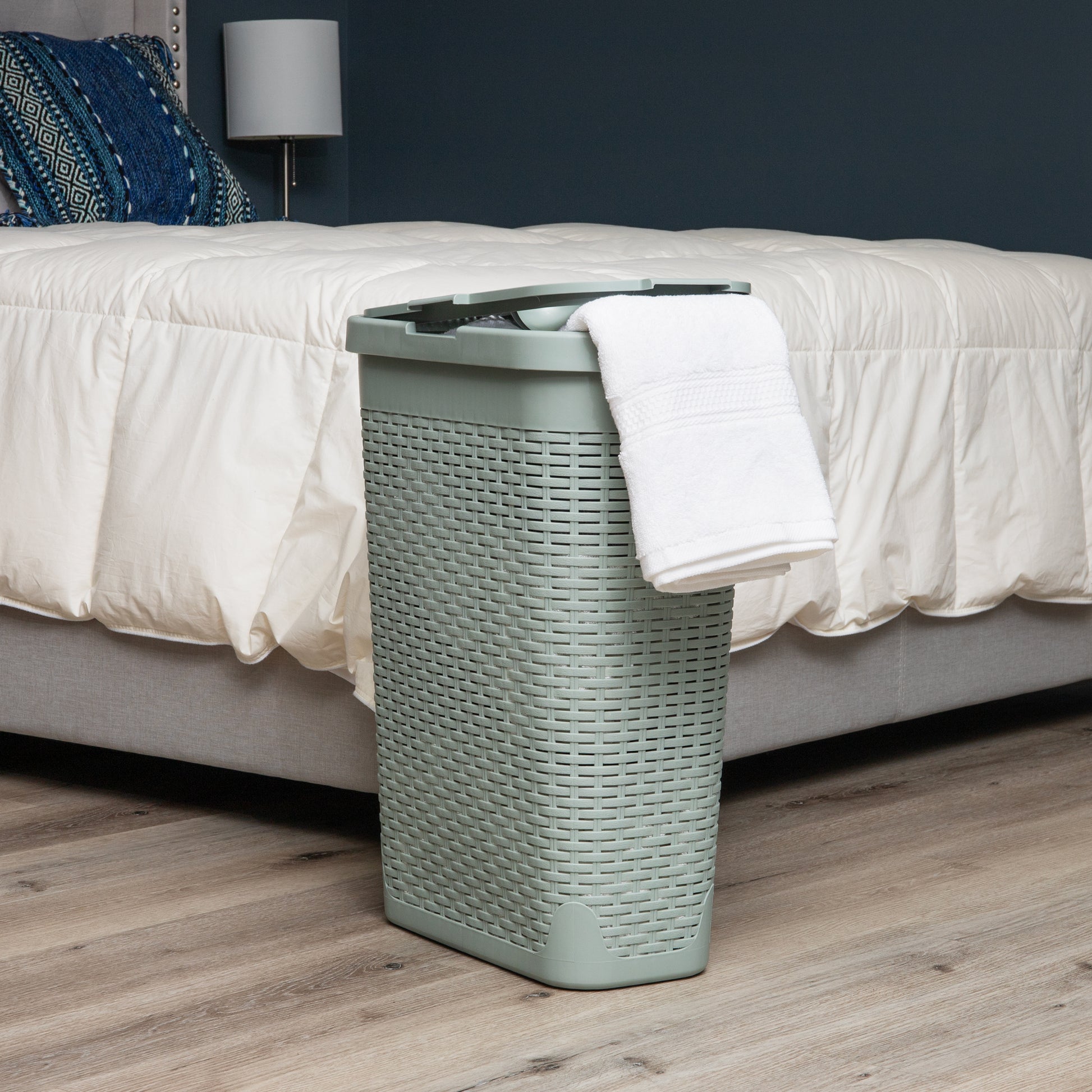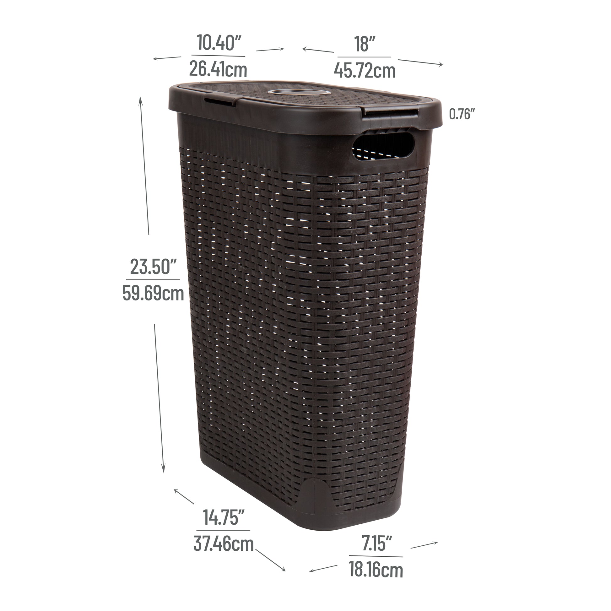 Mind Reader Slim Laundry Hamper with Lid, 40L Clothes Basket, Premium Wicker Design, Plastic