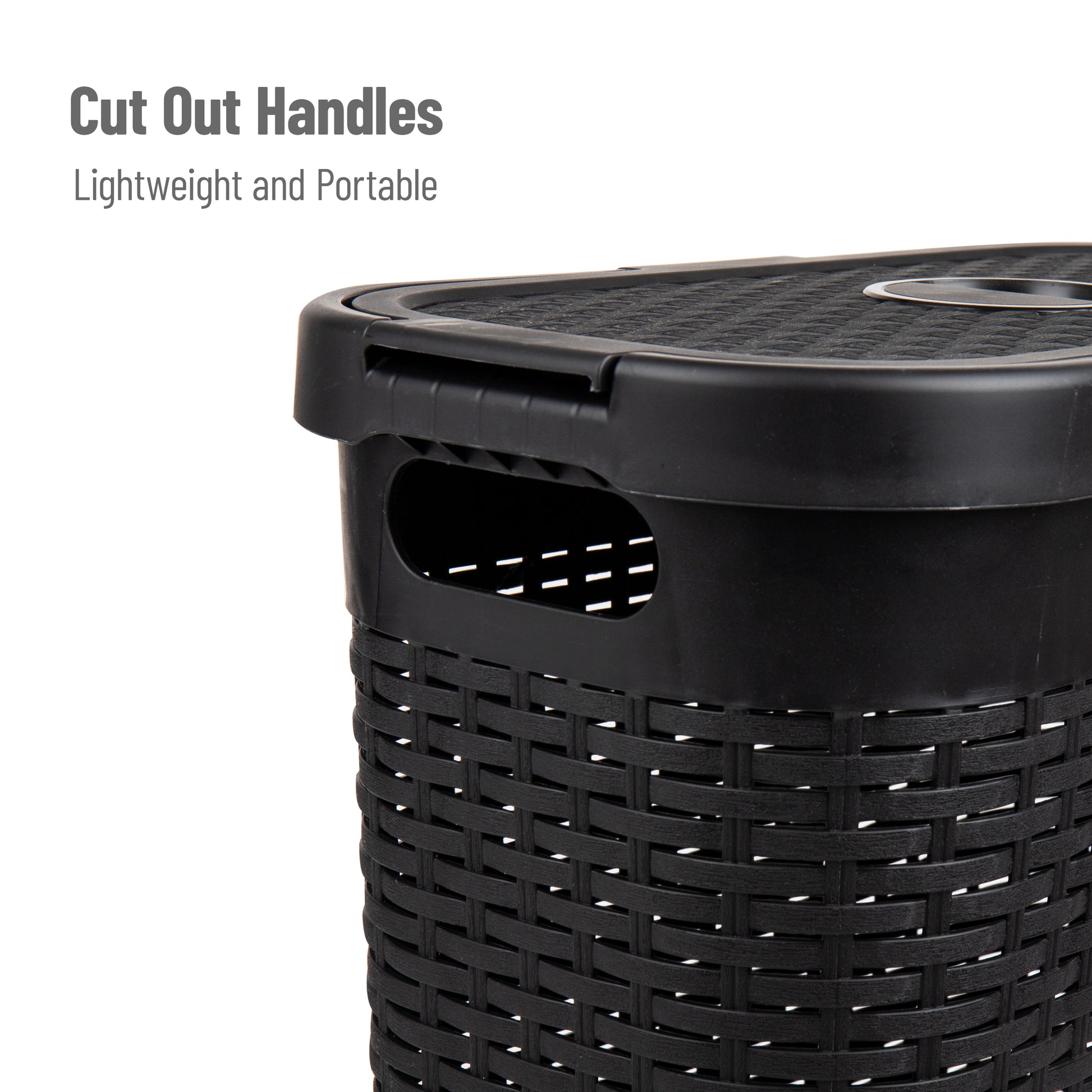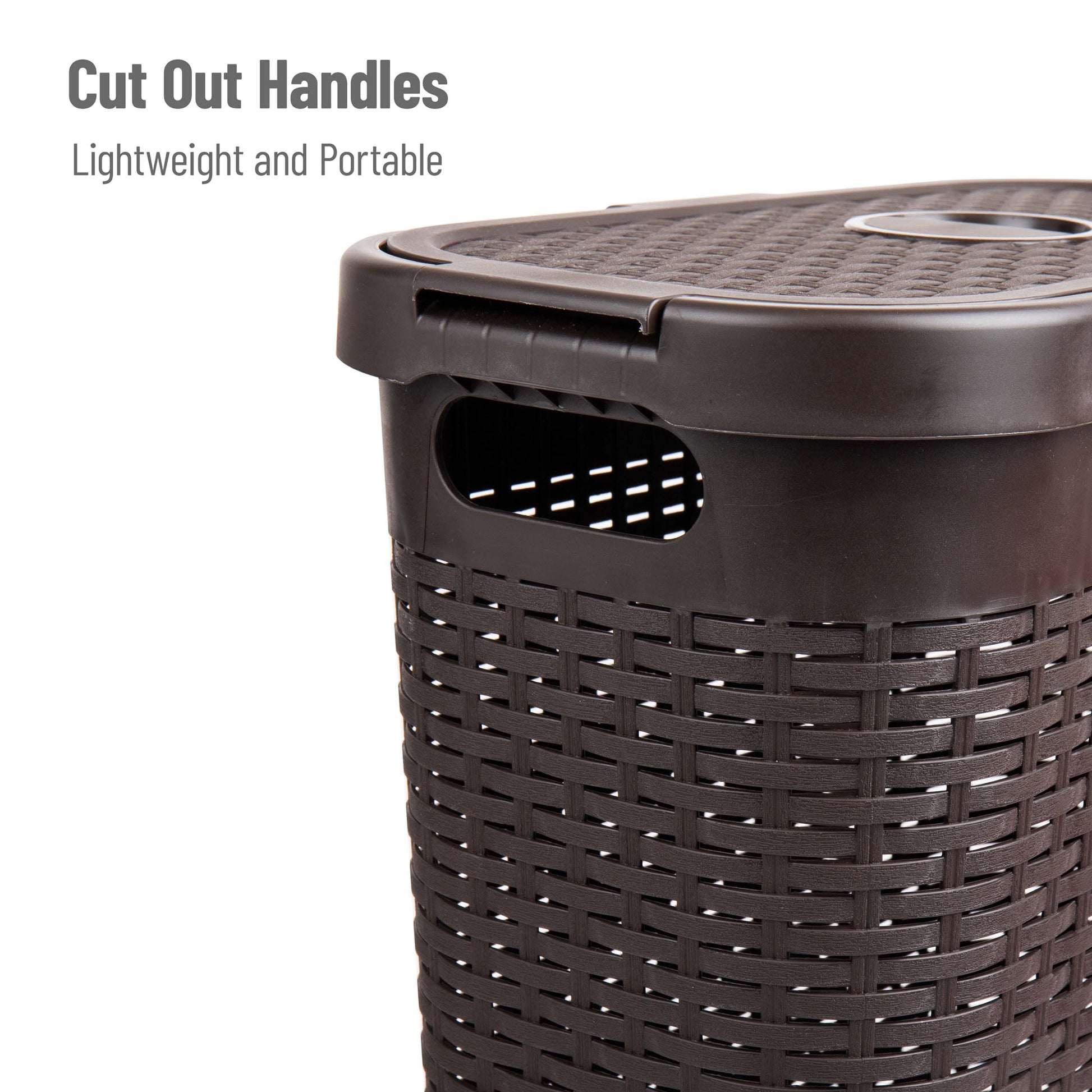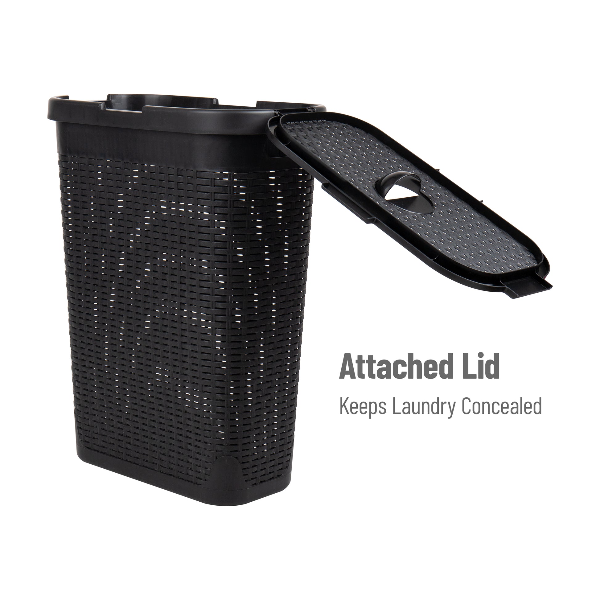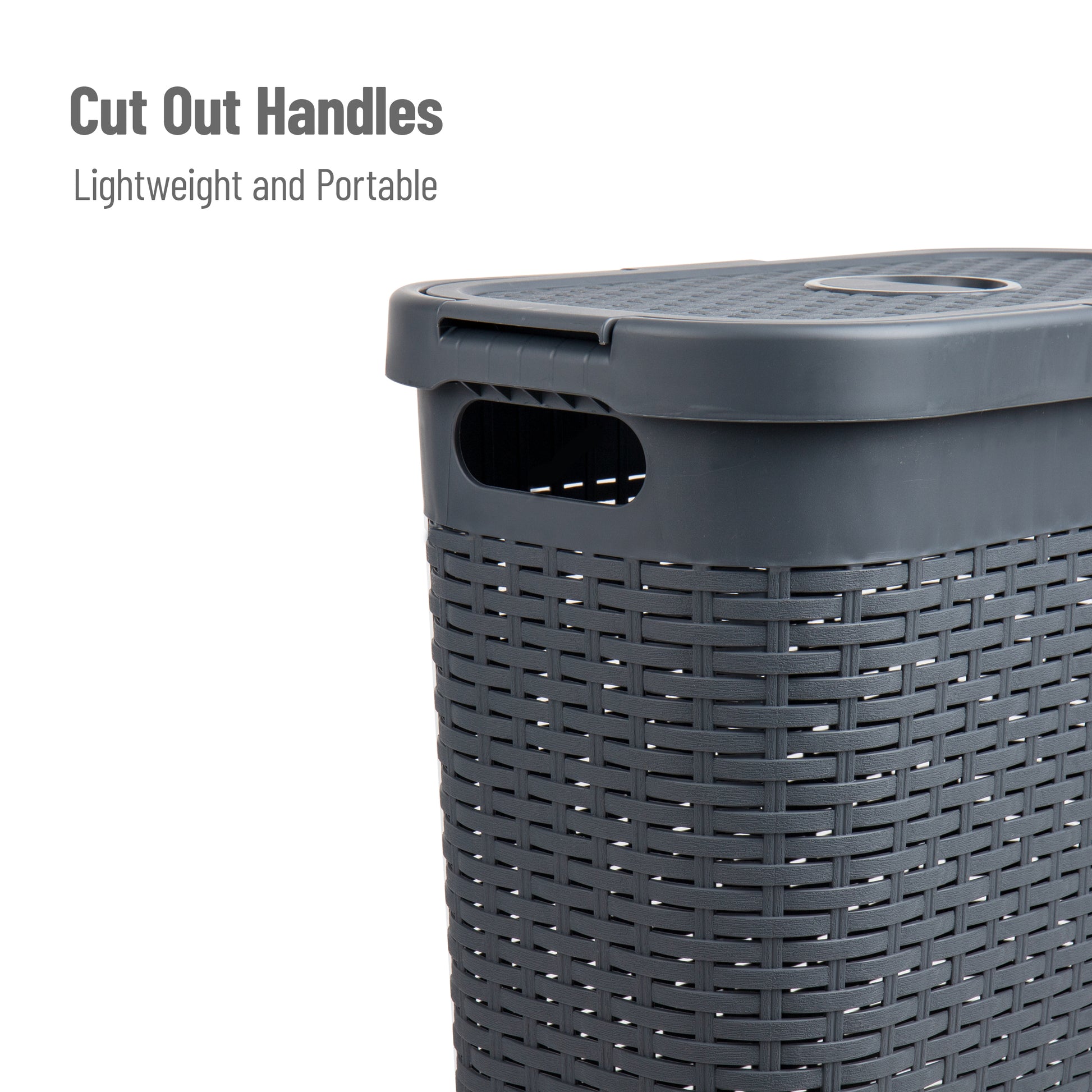 Lightweight yet sturdy, it features integrated cut-out handles for easy lifting and an attached hinged lid to keep contents discreet and contained. Whether you're managing weekly laundry, organizing seasonal clothing, or corralling toys and household items, this hamper delivers the capacity and convenience you need.