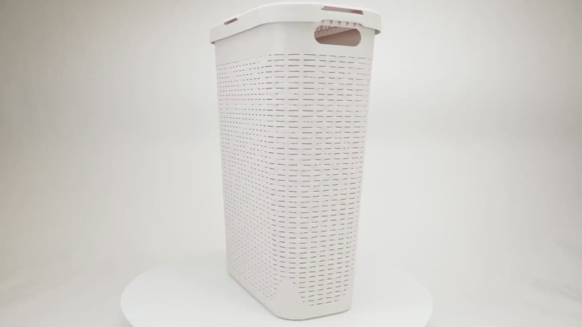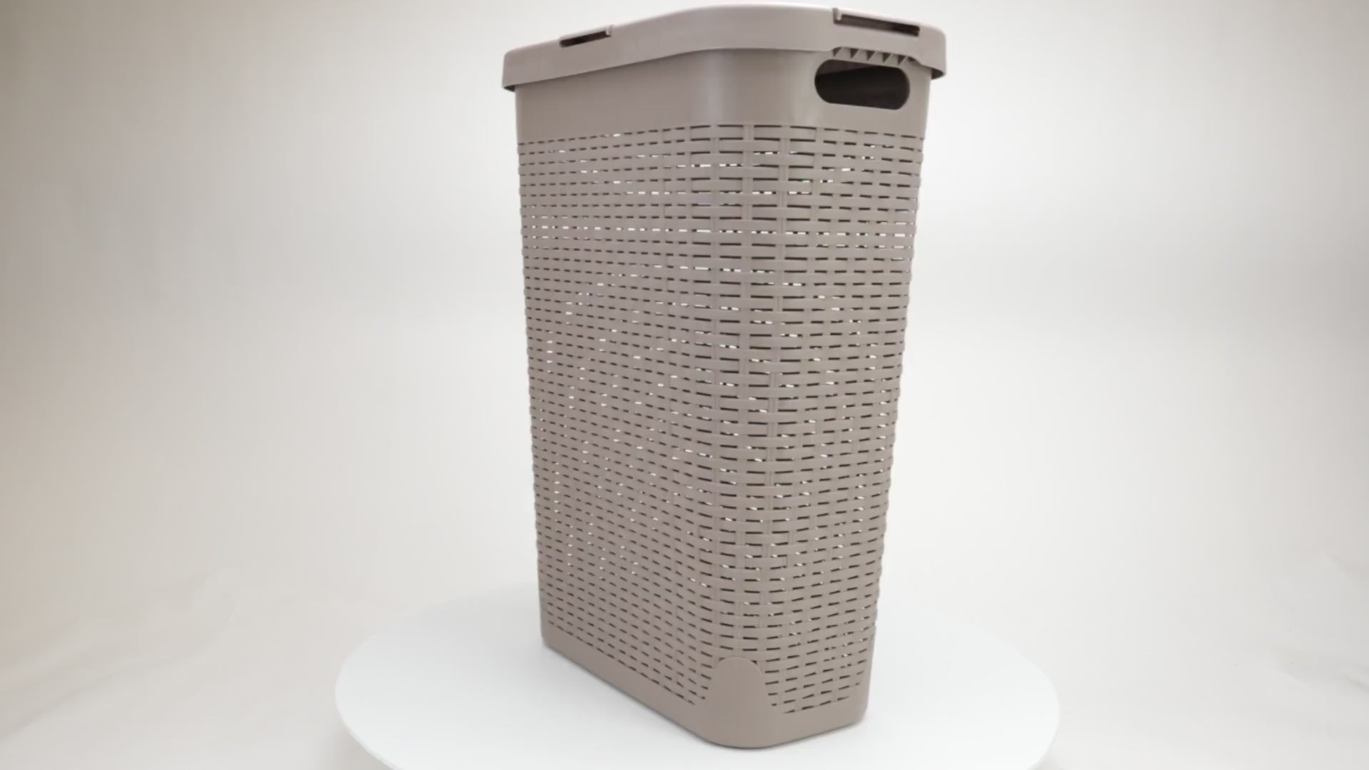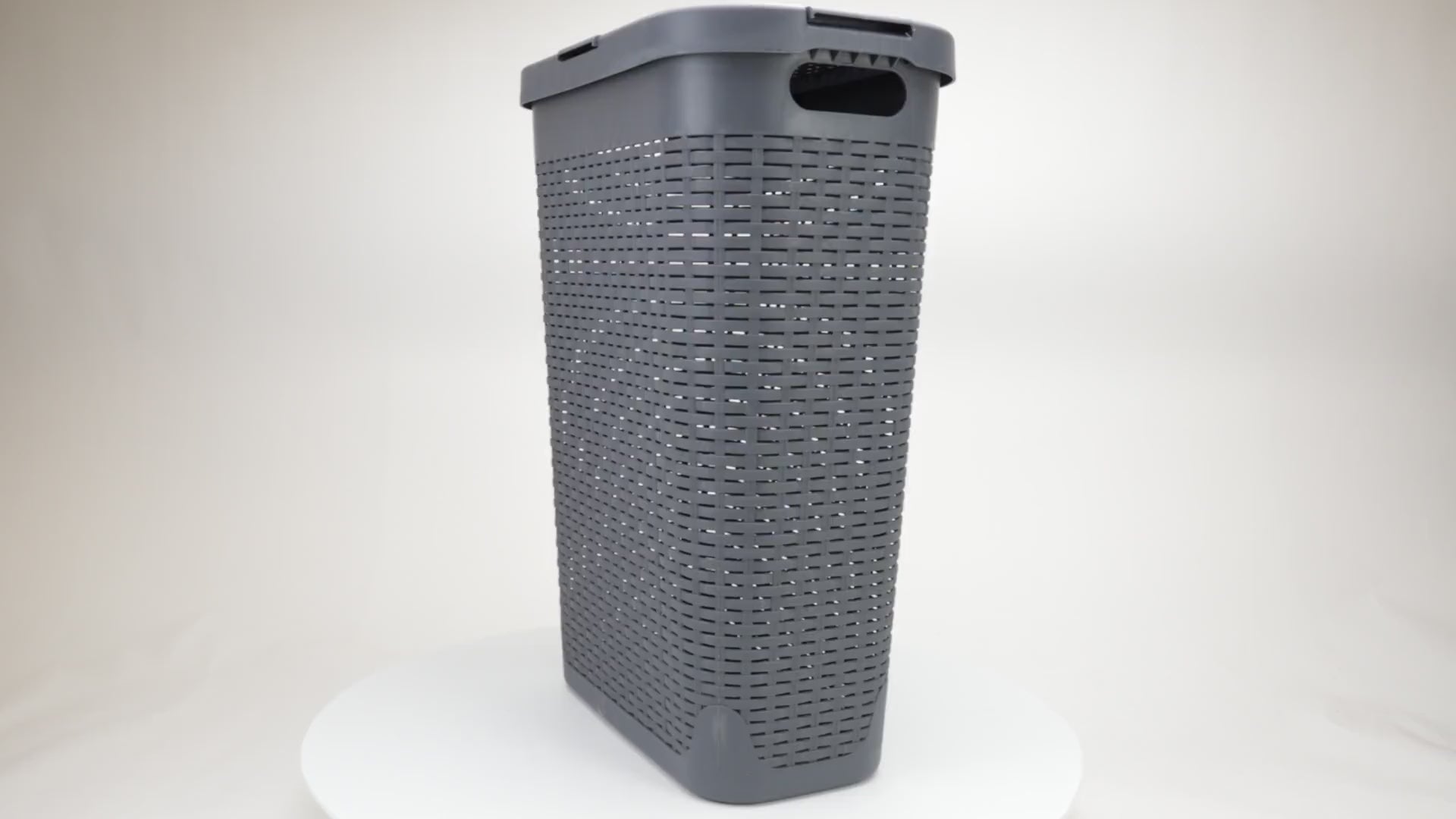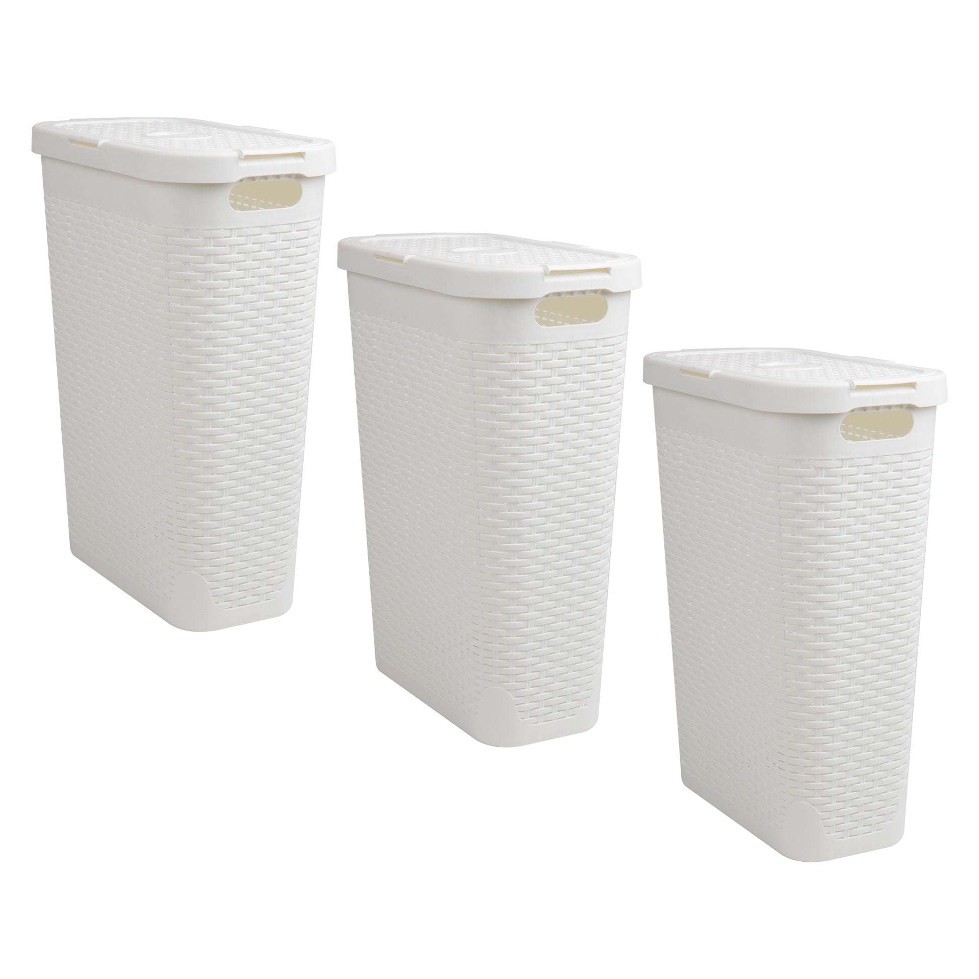 Lightweight yet sturdy, it features integrated cut-out handles for easy lifting and an attached hinged lid to keep contents discreet and contained. Whether you're managing weekly laundry, organizing seasonal clothing, or corralling toys and household items, this hamper delivers the capacity and convenience you need.