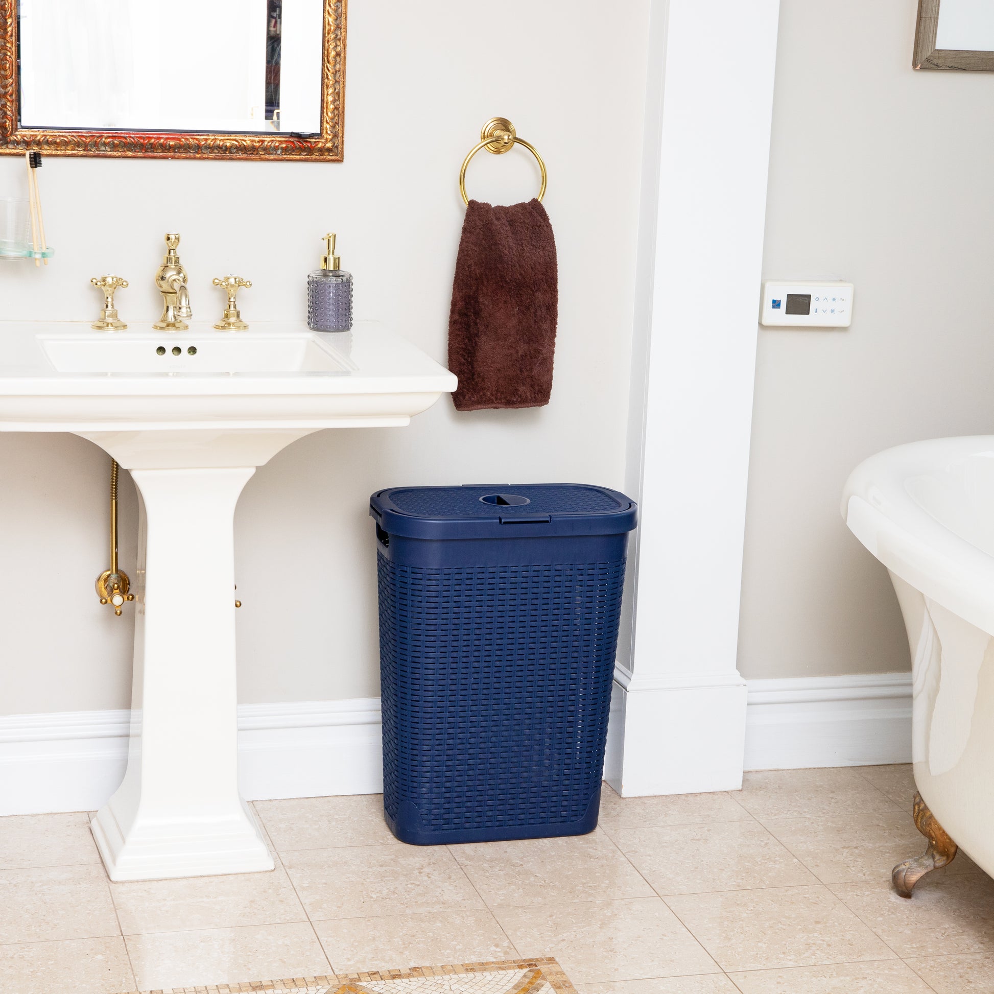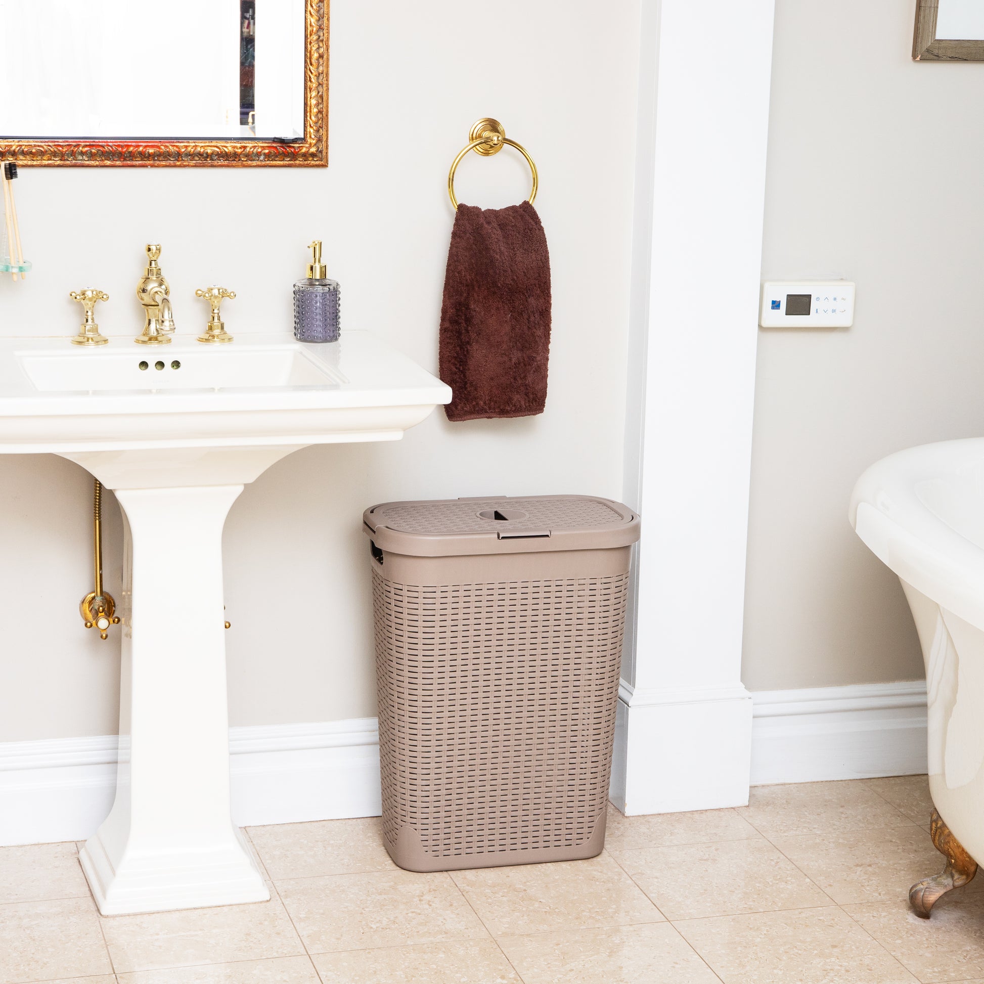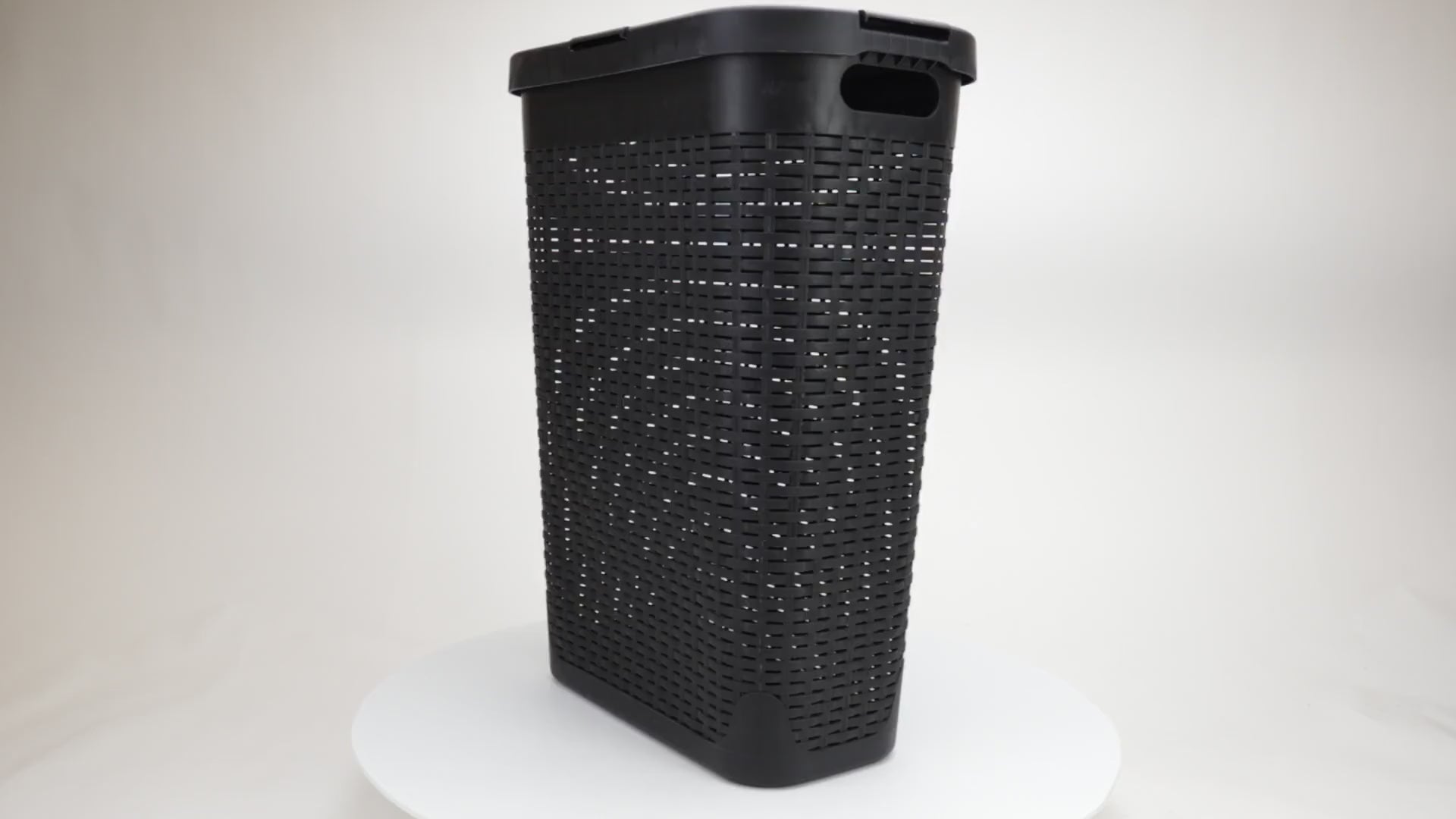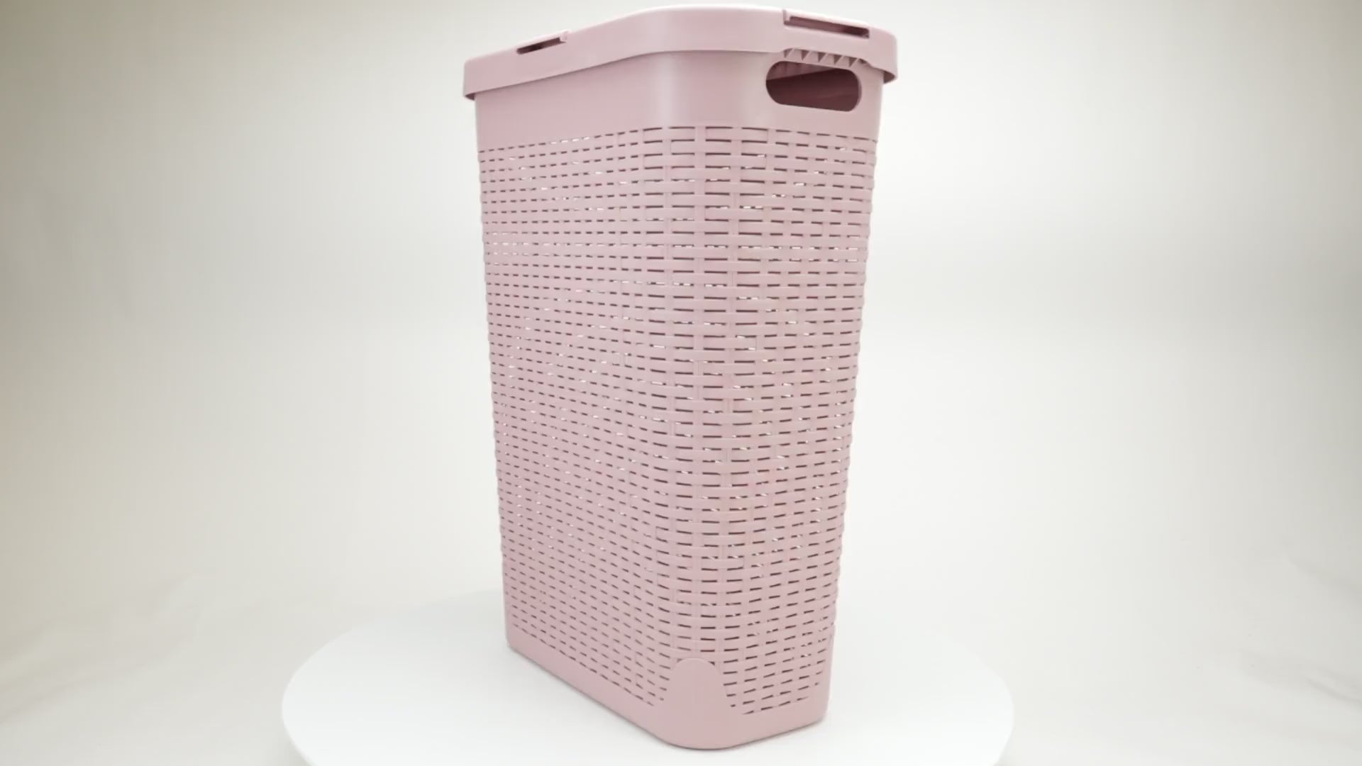 Lightweight yet sturdy, it features integrated cut-out handles for easy lifting and an attached hinged lid to keep contents discreet and contained. Whether you're managing weekly laundry, organizing seasonal clothing, or corralling toys and household items, this hamper delivers the capacity and convenience you need.