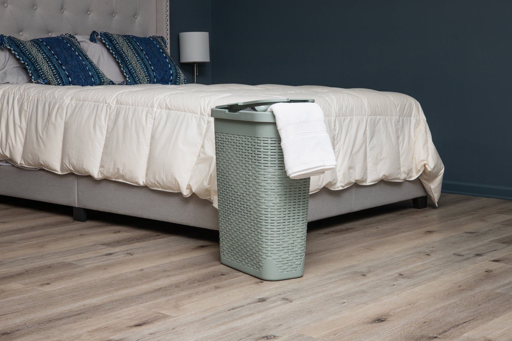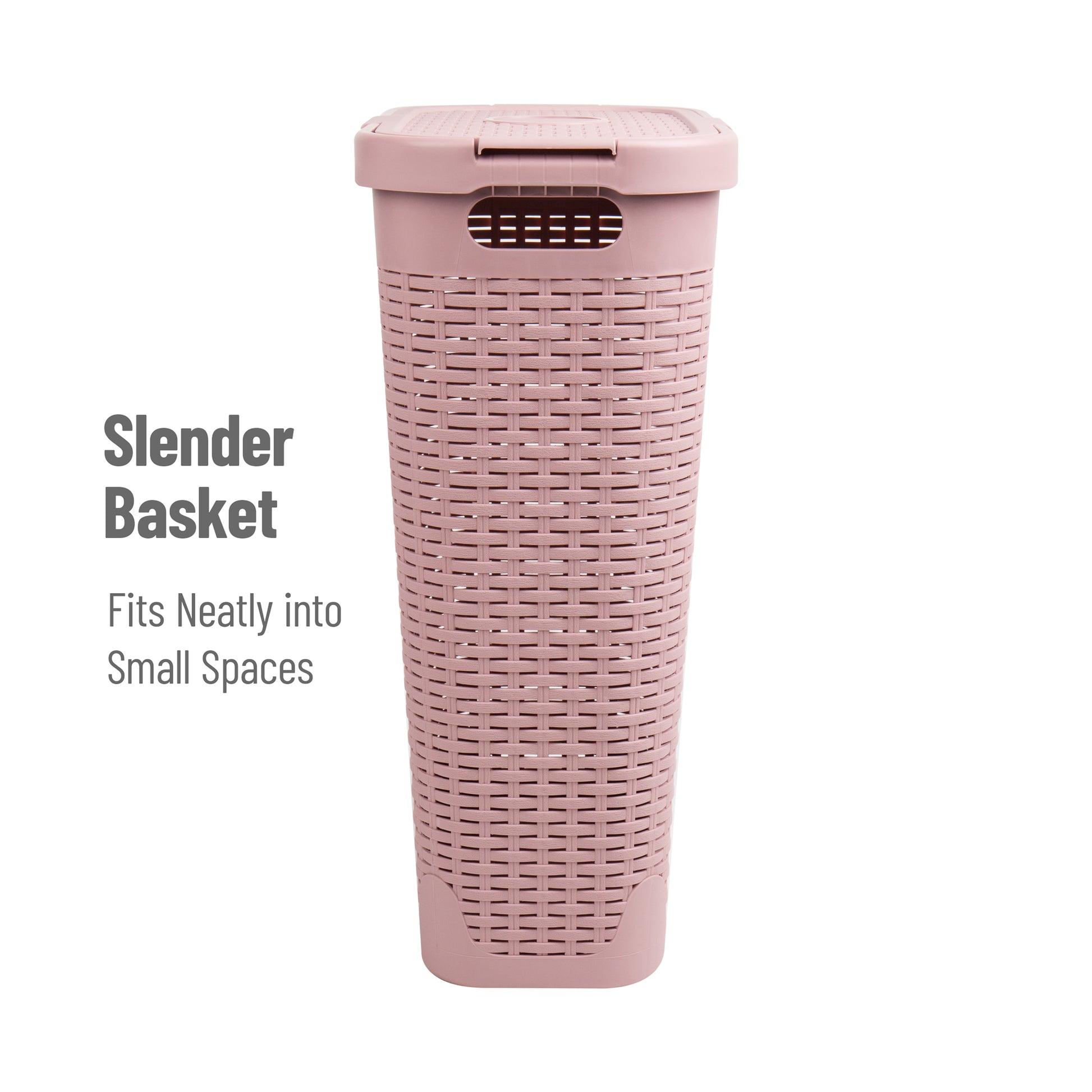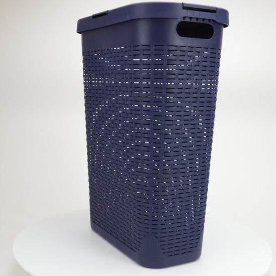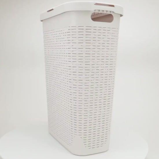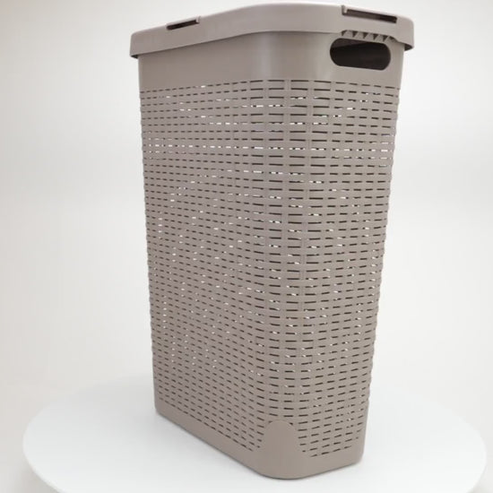 Tackle clothes clutter with this stylish and functional 40-liter laundry hamper. Designed with a premium wicker texture, this hamper promotes airflow while concealing dirty laundry behind a sleek exterior. Its compact, tapered shape makes it ideal for tight spaces like closets, bathrooms, and next to your washer or dryer.