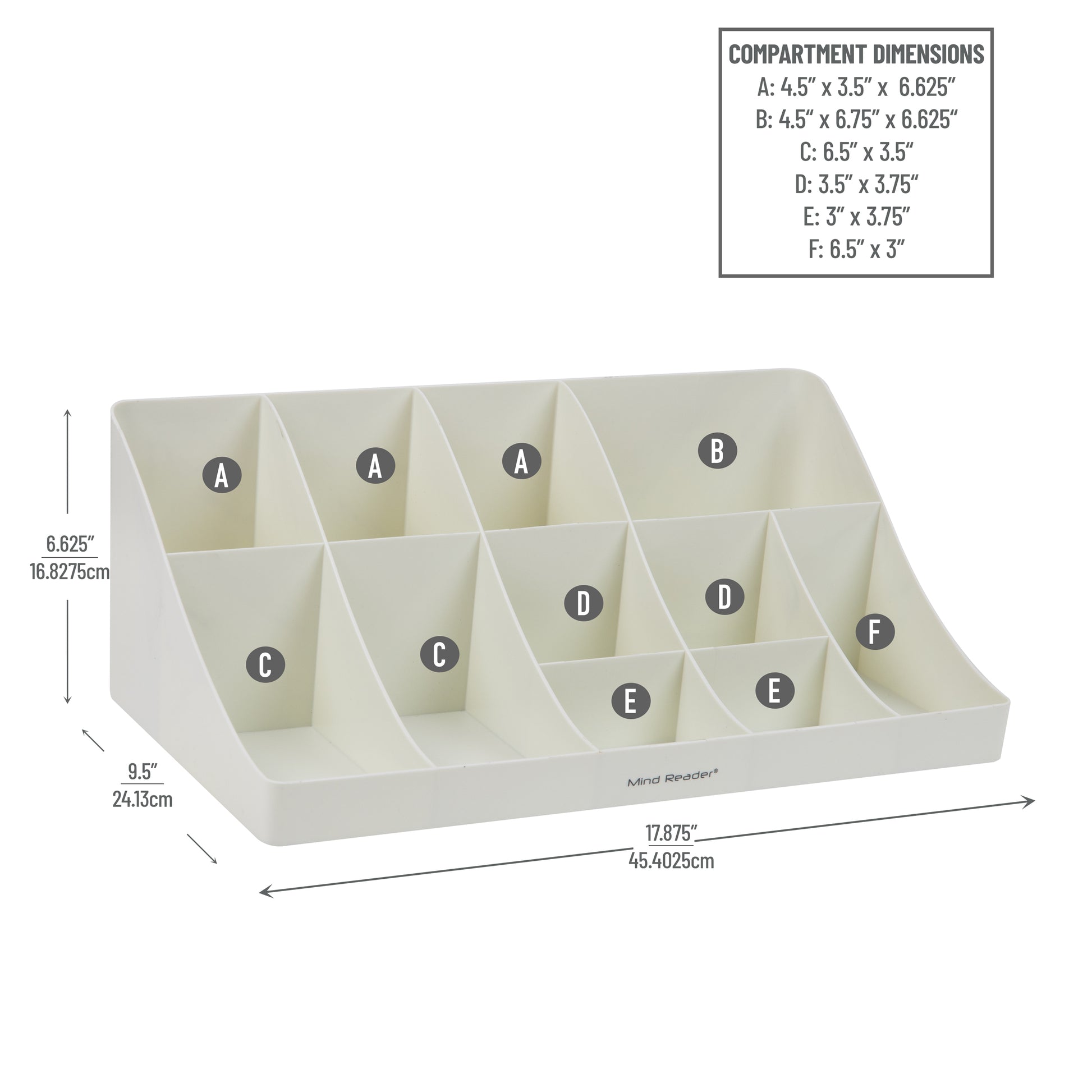 Beyond coffee cups and condiments, this versatile organizer can be used creatively on countertops or inside cabinets to store office supplies, art materials, and more. The varying compartment sizes make it a helpful tool for organizing pens, rubber bands, paintbrushes, and other items.
