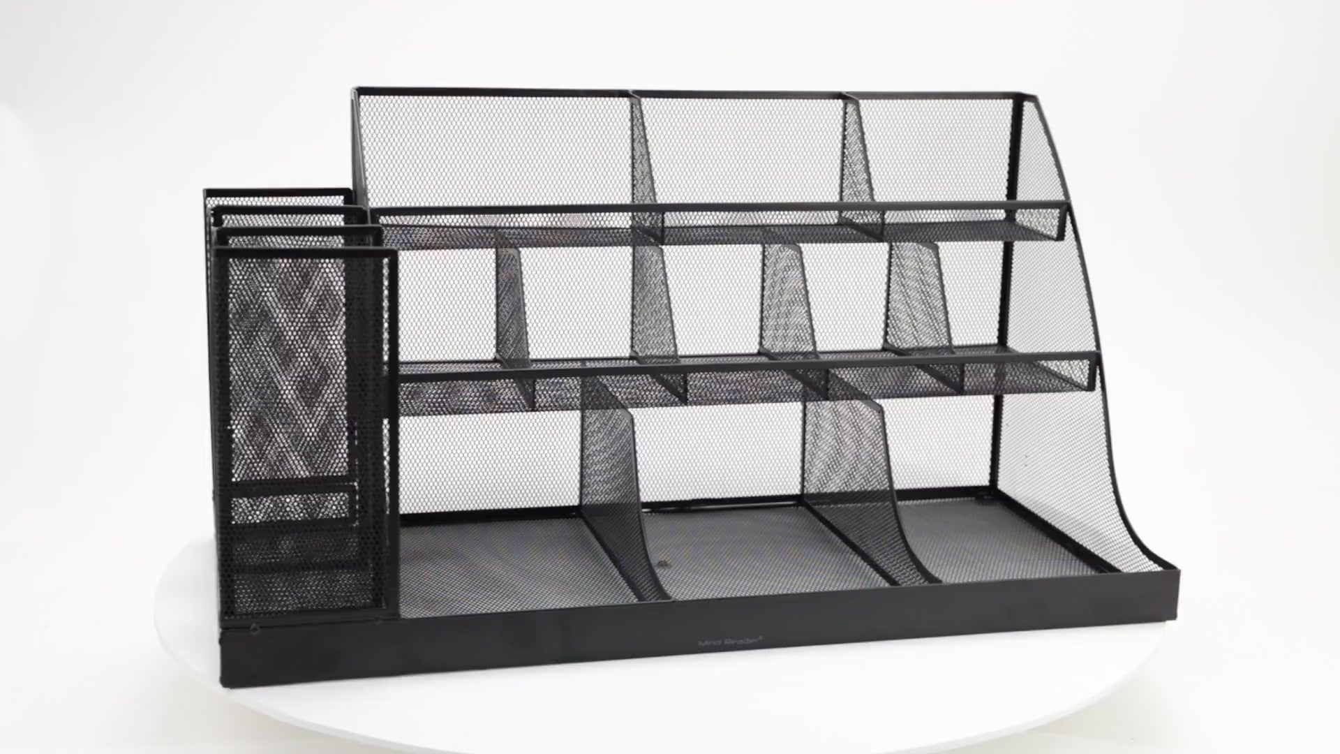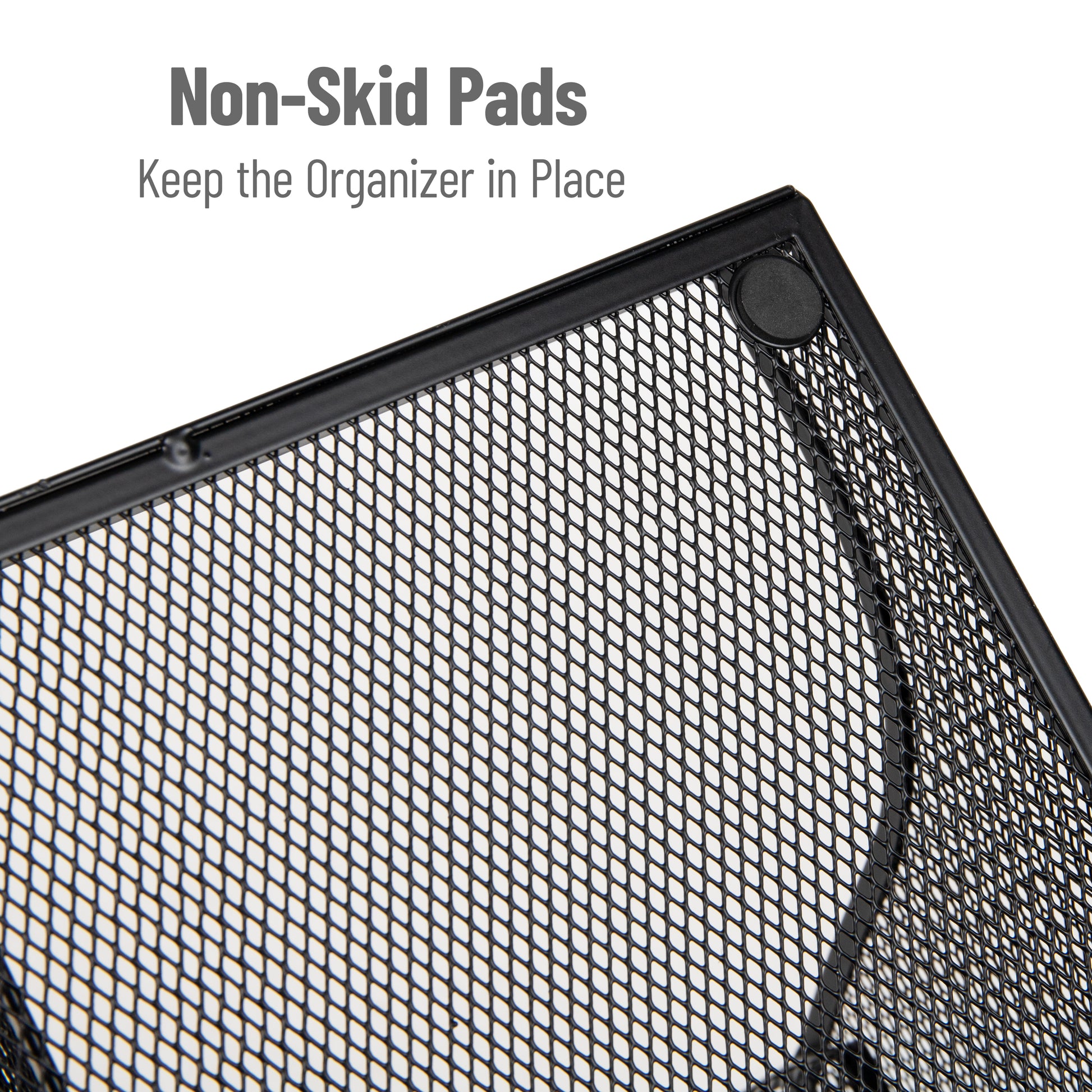Designed for high-traffic office areas, the sleek metal mesh construction blends into professional environments while offering durable, long-lasting storage. Rubber grips at the base prevent sliding on smooth surfaces, and the open design makes contents easily visible and accessible.