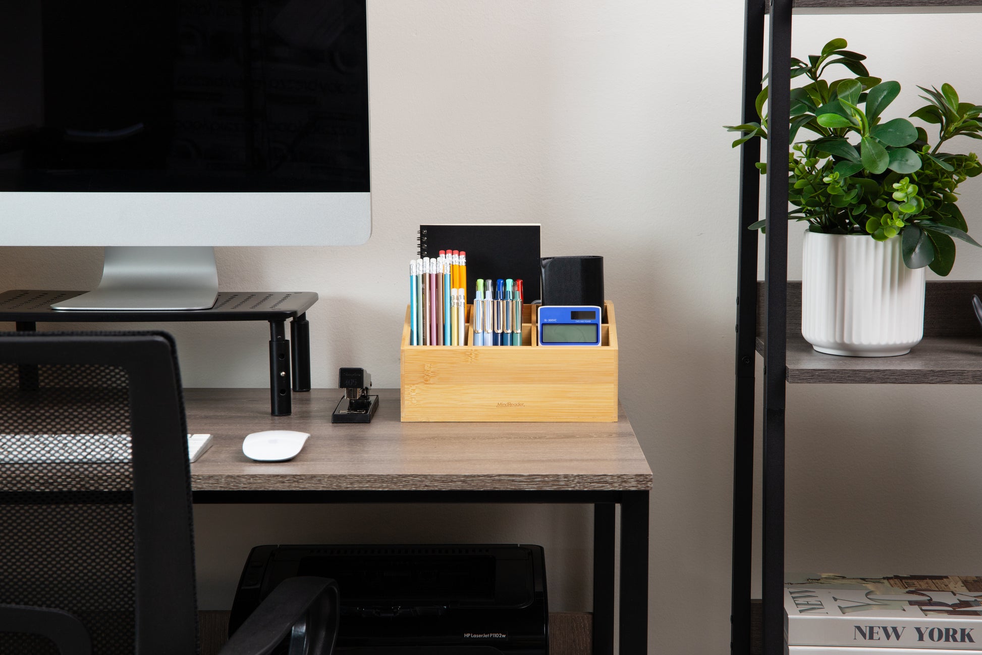 Mind Reader Desktop Organizer, 7-compartment, Office Essentials, Modern, Office, Bamboo, 9.25"L x 7.25"W x 4.5"H, Brown