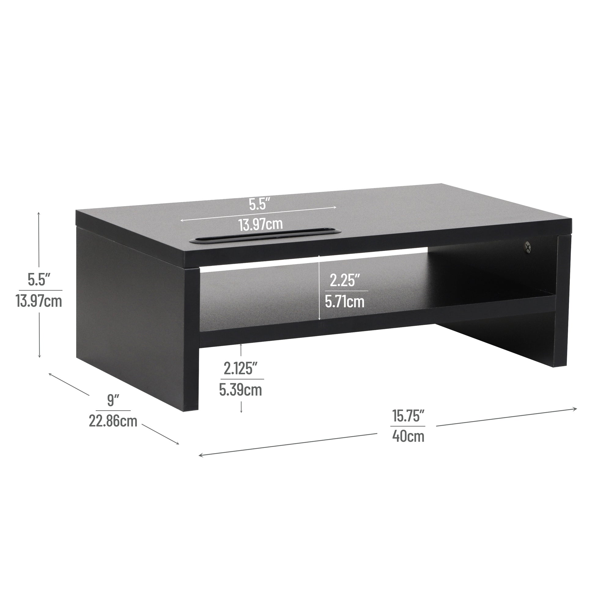 Mind Reader Monitor Stand with Phone Slot and Storage Shelf, Desktop Riser, 88 lb Capacity, MDF Wood, Black