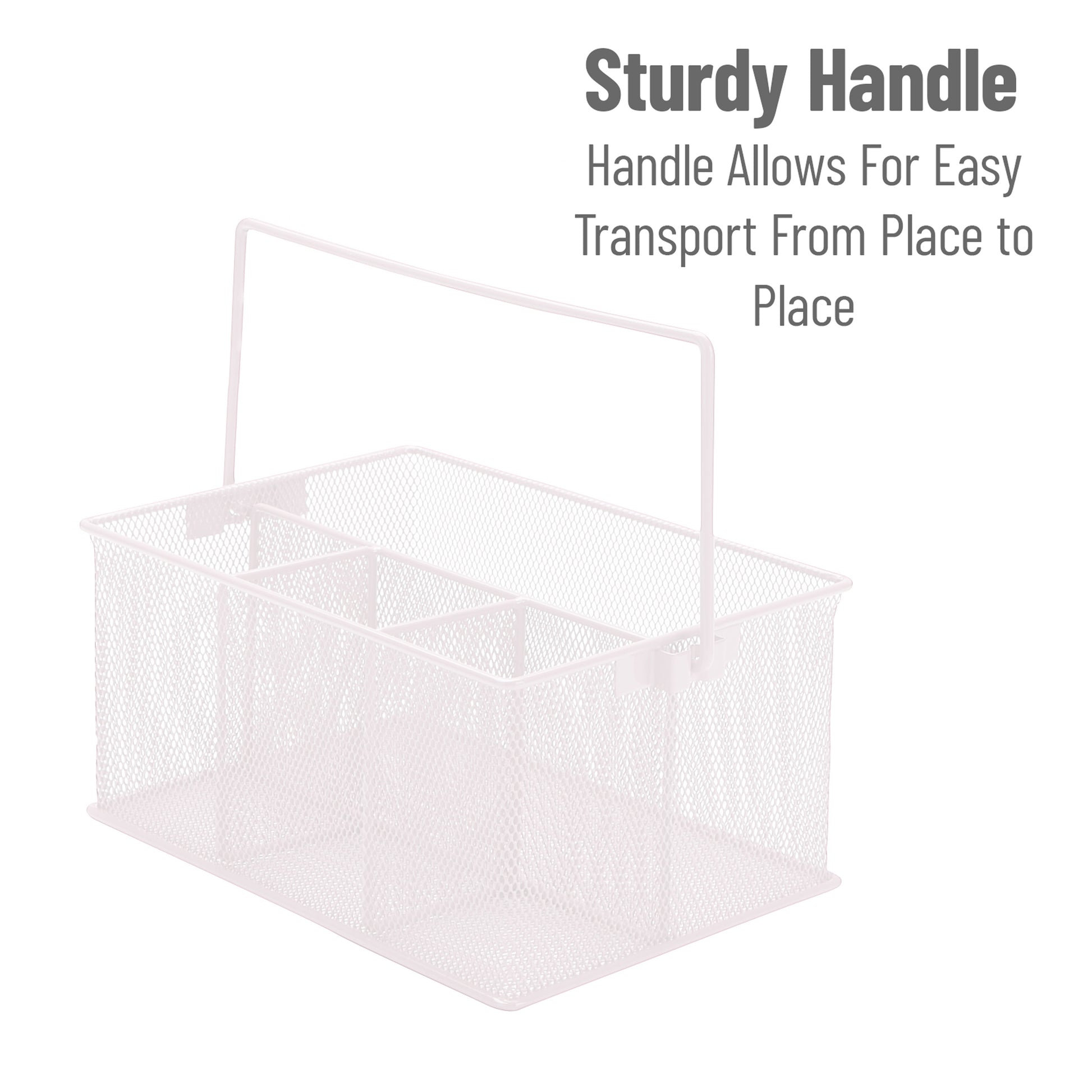 - Portable and organized: With four compartments to keep everything neatly organized, this caddy is equipped with a handle for easy transport from room to room or desk to desk