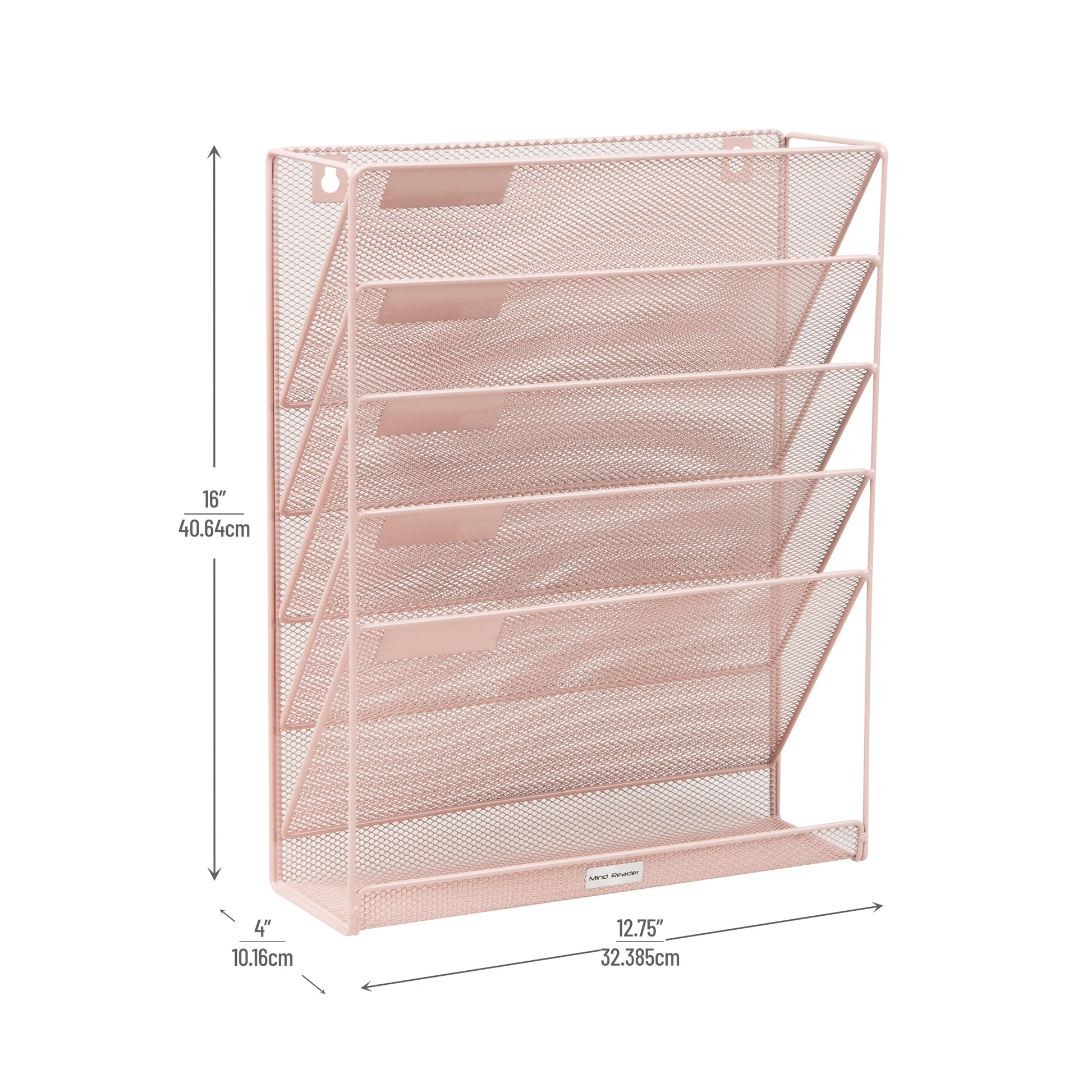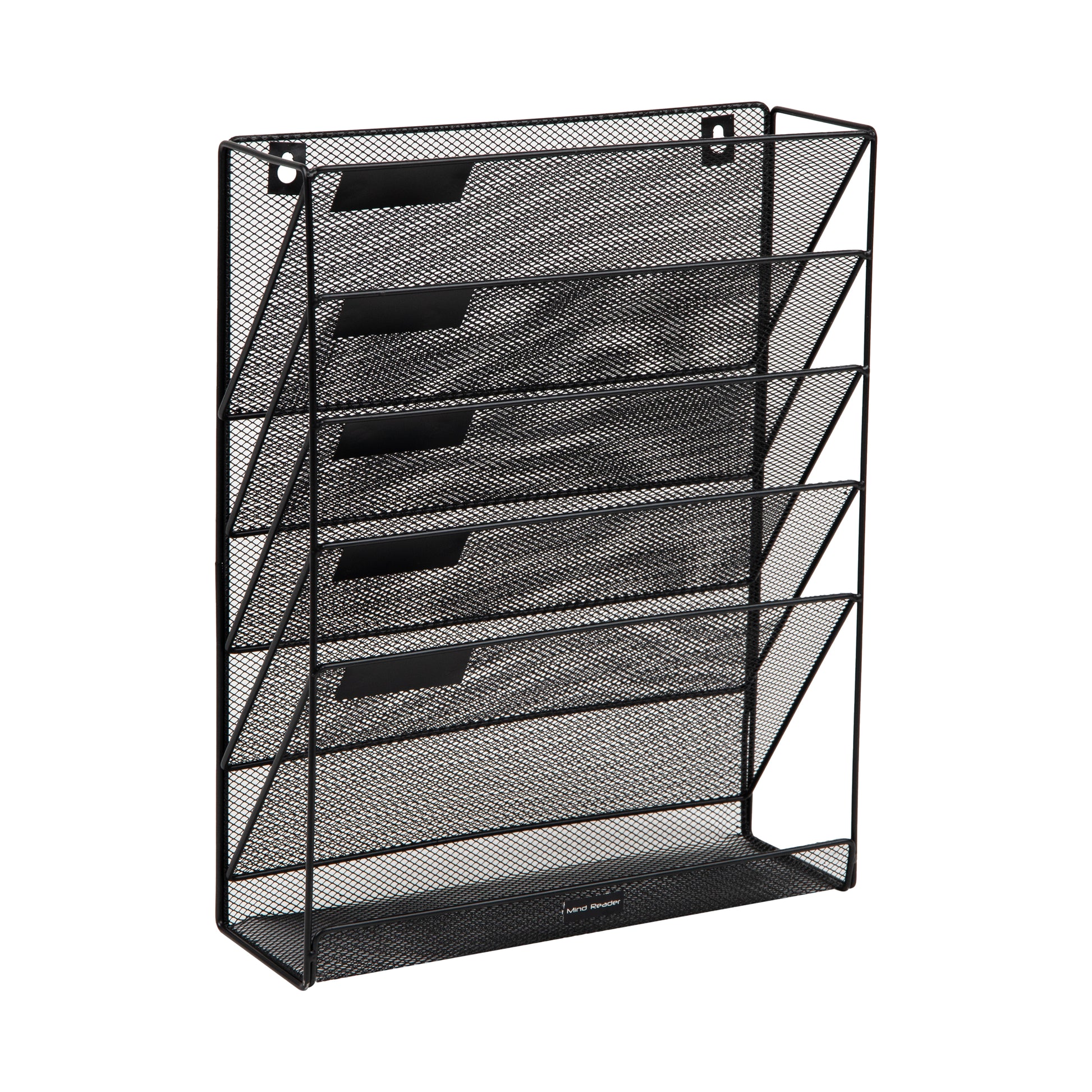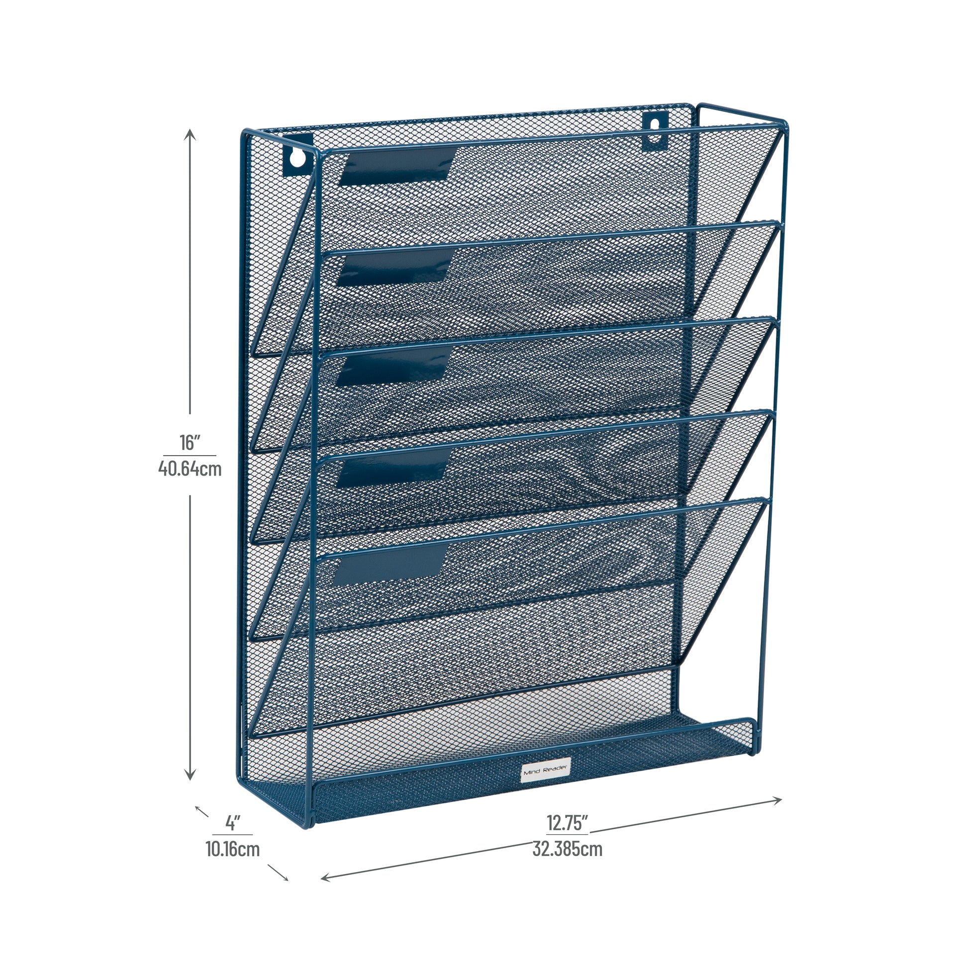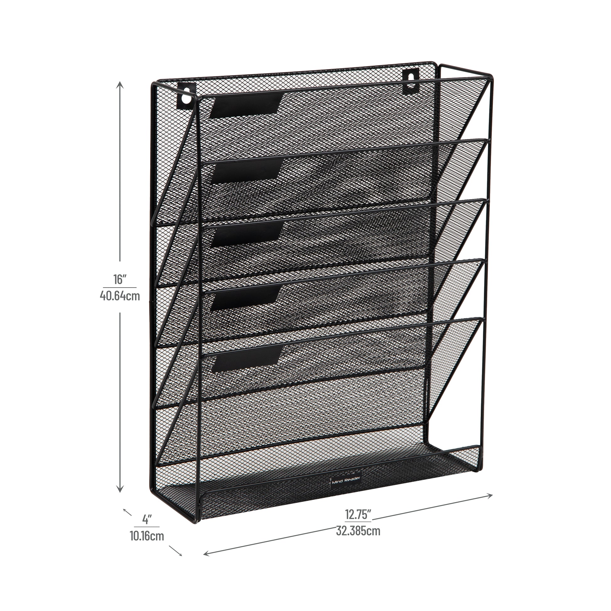 Mind Reader 5-Tier Vertical File Storage, Desktop Organizer, Wall Mount, Office, Metal Mesh, 12.75"L x 4"W x 16"H