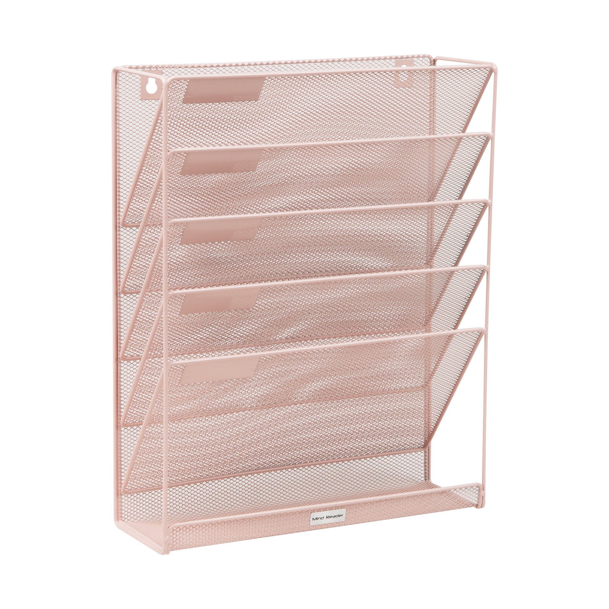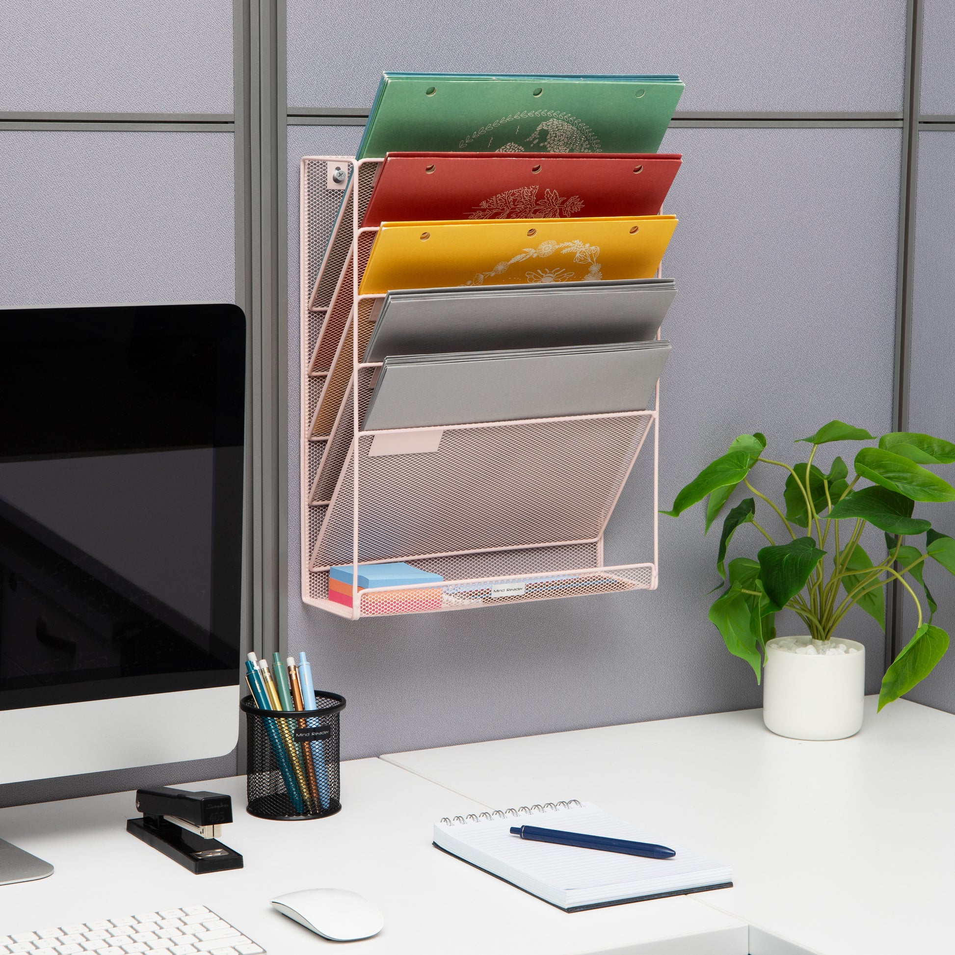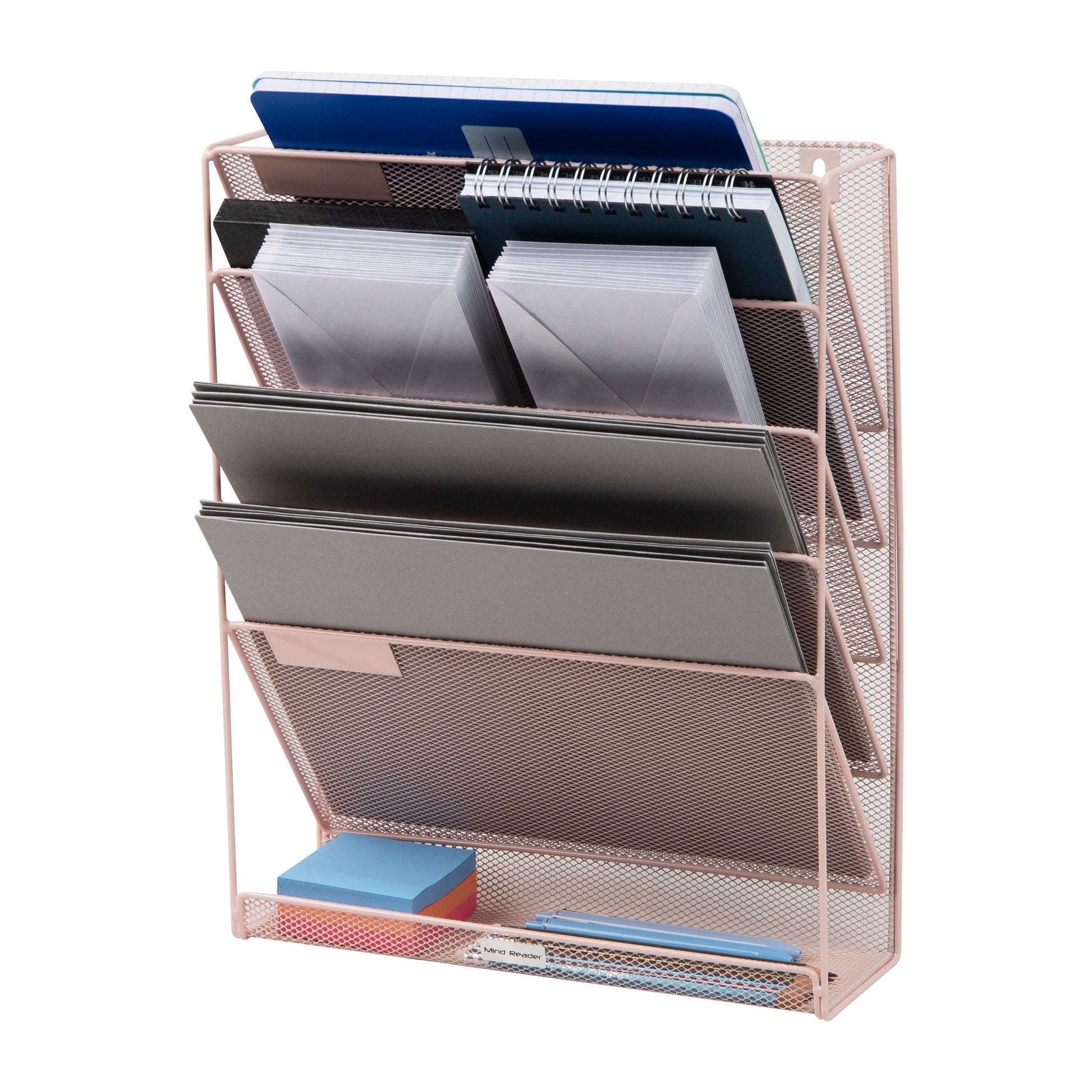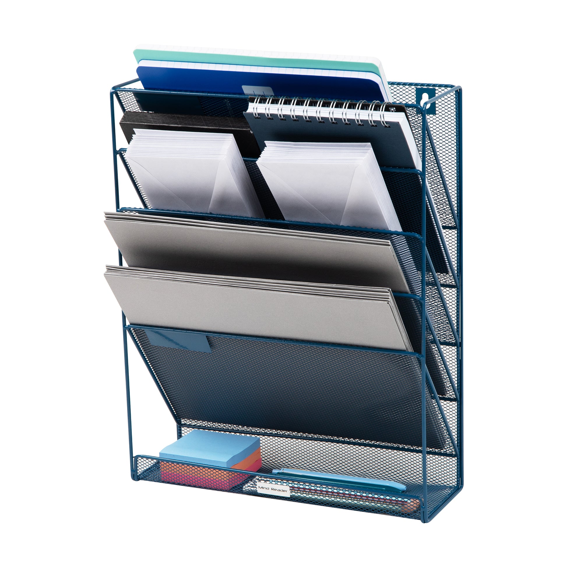 Mind Reader 5-Tier Vertical File Storage, Desktop Organizer, Wall Mount, Office, Metal Mesh, 12.75"L x 4"W x 16"H