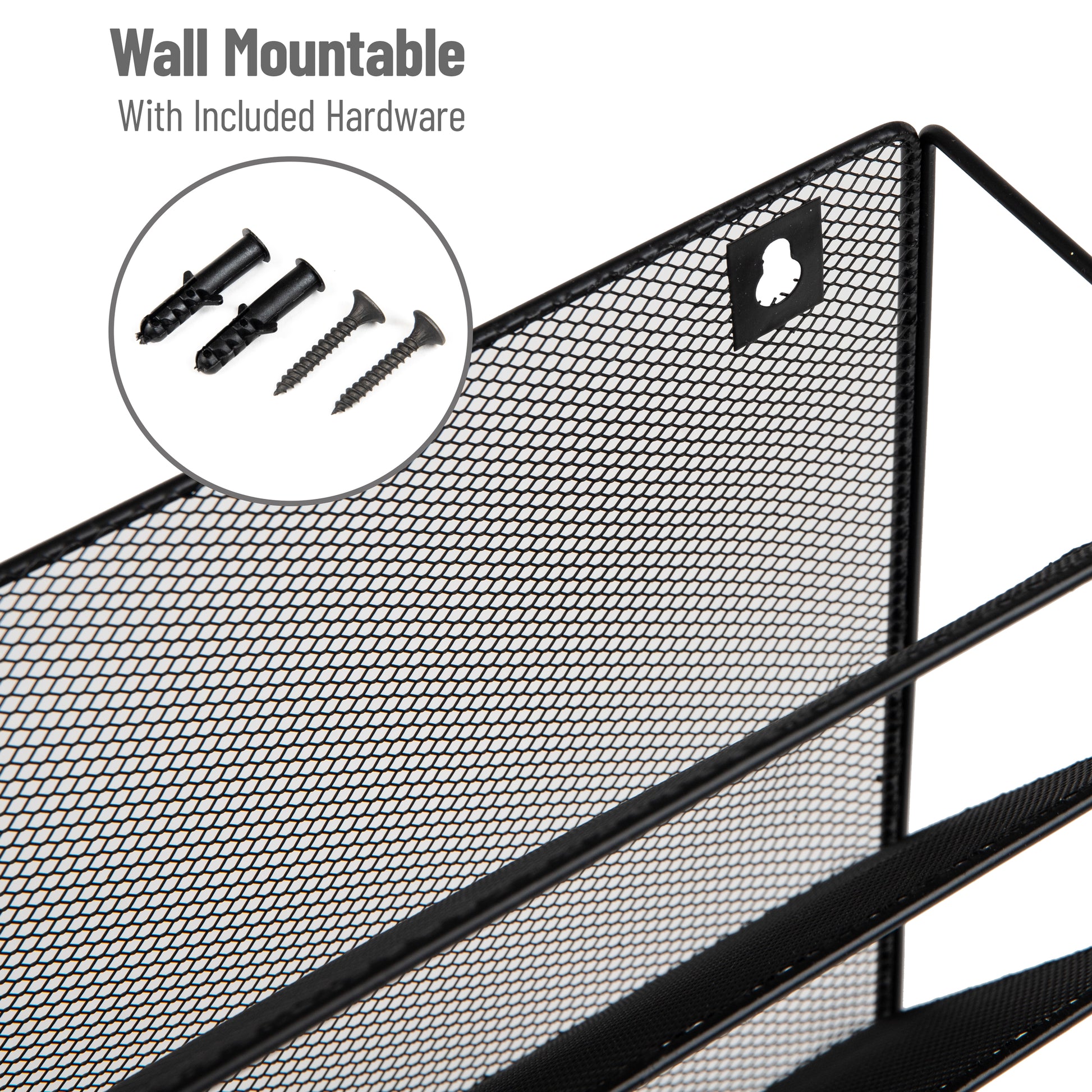 - Space-Saving Wall Mount: The vertical design of this file organizer allows it to be conveniently mounted on a wall with two screws. This not only saves valuable desk or counter space but also keeps your documents within reach. With easy installation, you can have it ready to use in just minutesIdeal