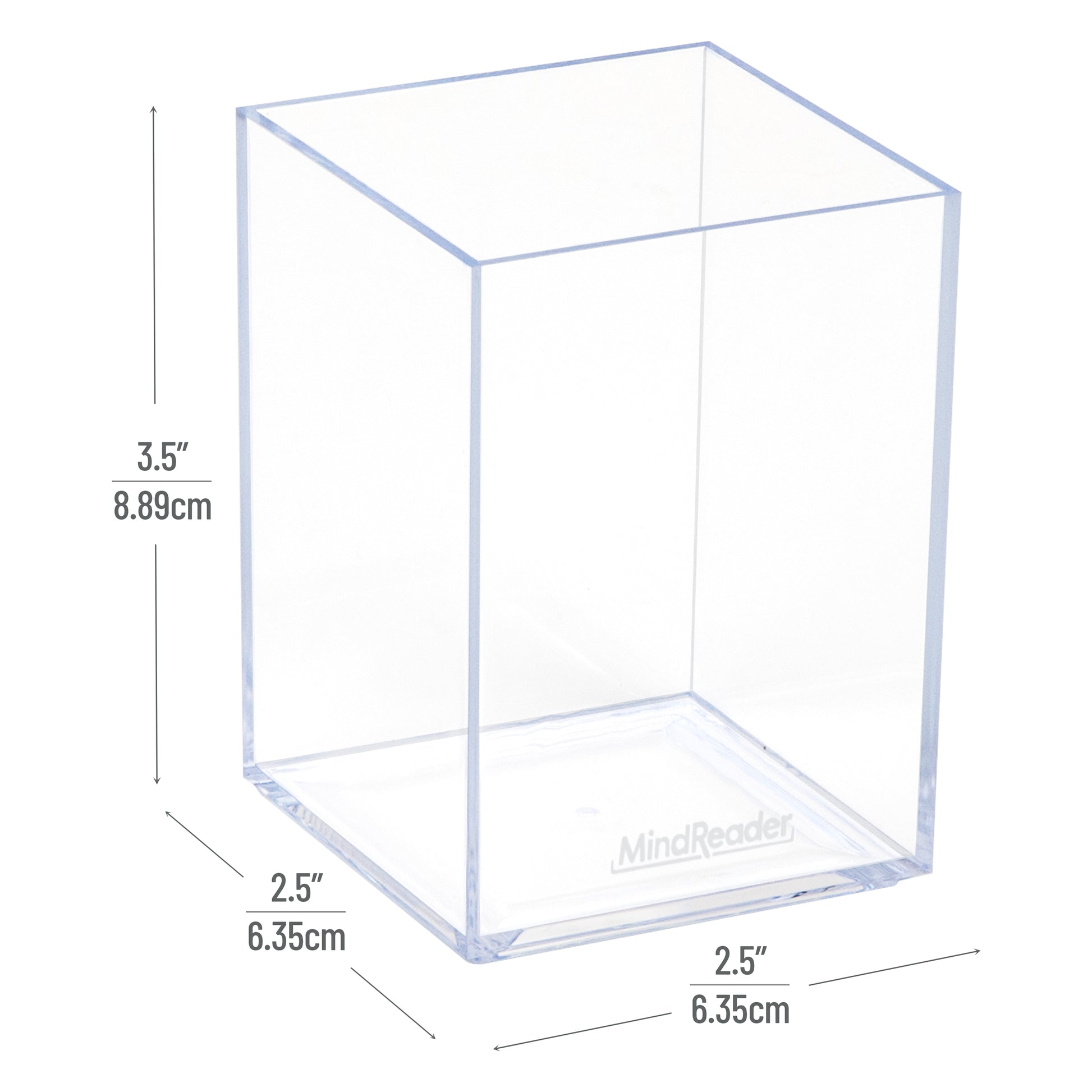 Mind Reader Pen Cup, Accessory Holder, Desktop Organization, Office, Acrylic, 2.5"L x 2.5"W x 4"H, Clear